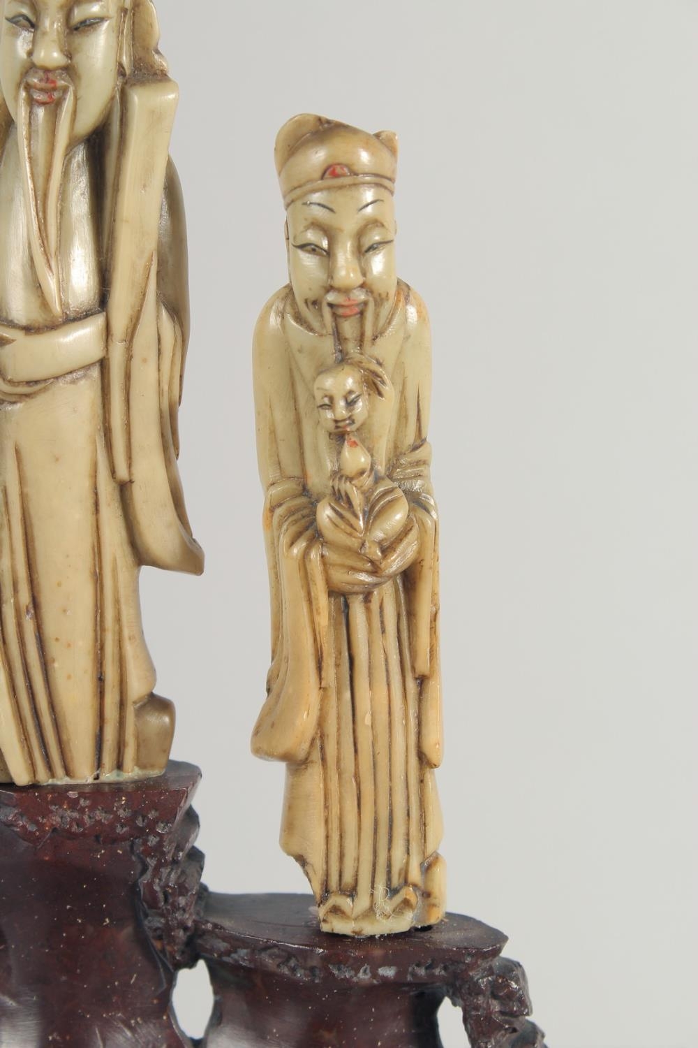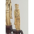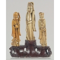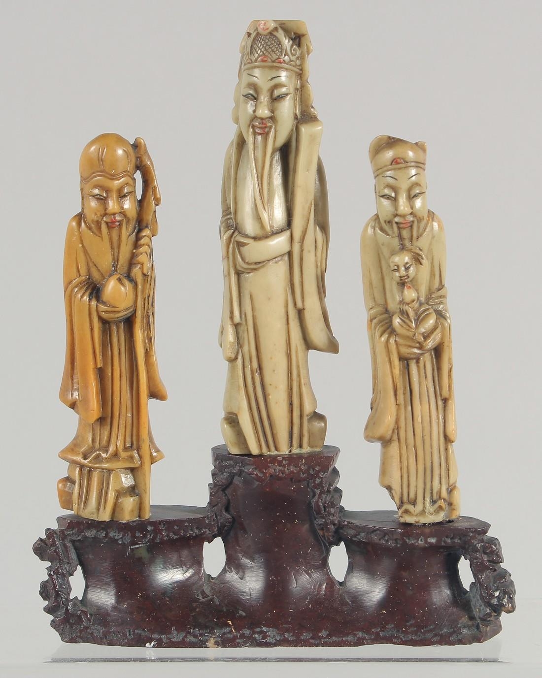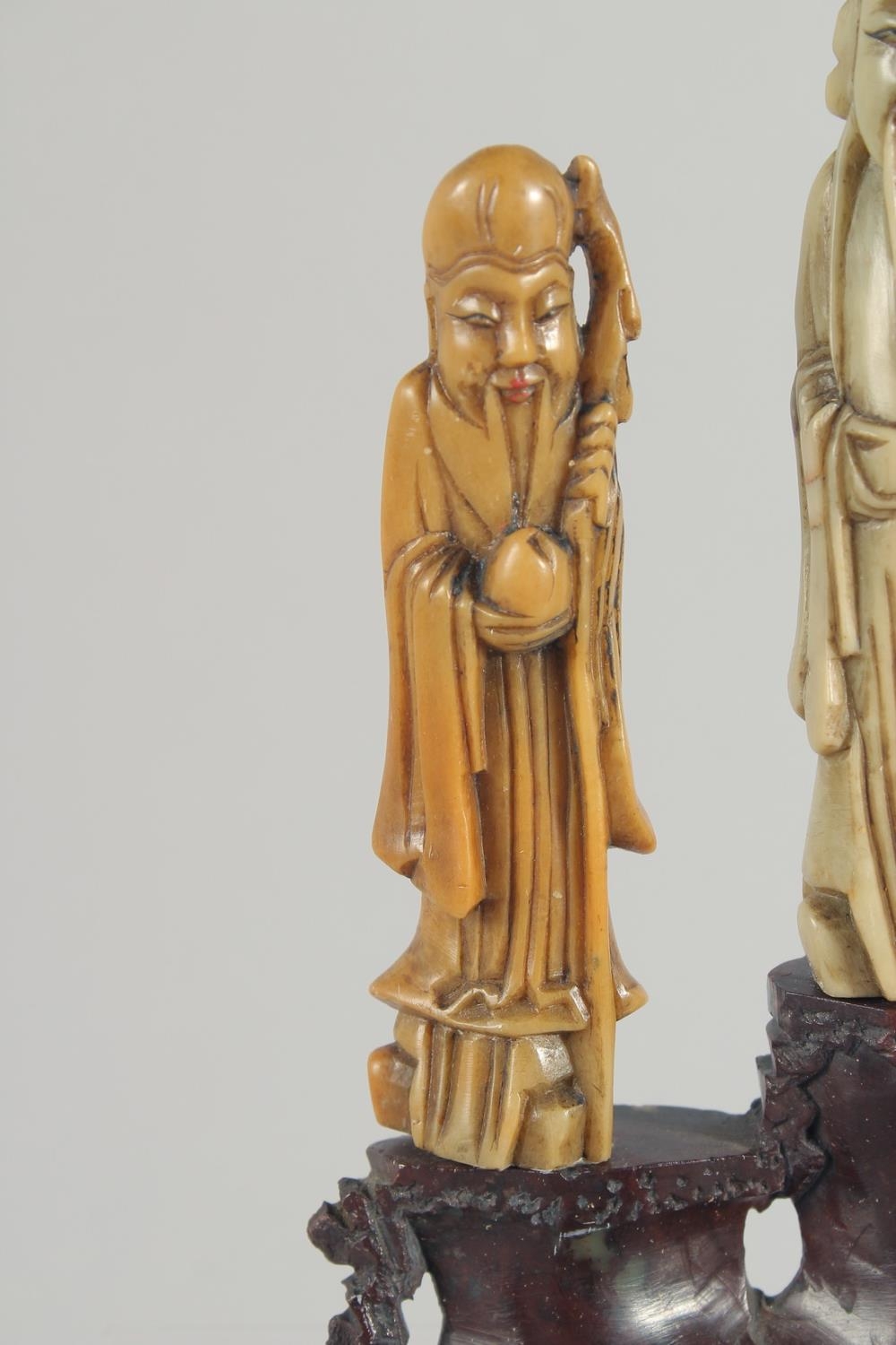 TWO CHINESE SOAPSTONE CARVINGS, one carved with foo dogs, the other of immortals on a soapstone base, (2).