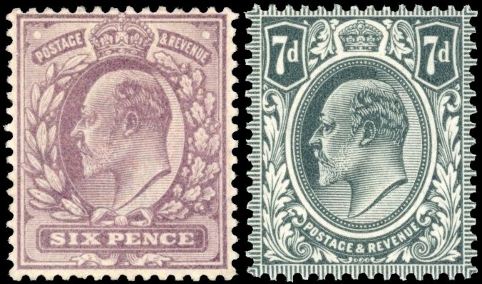 GB: 1902-10 6d pale dull purple, ordinary paper, 7d deep grey black; both mint unmounted og