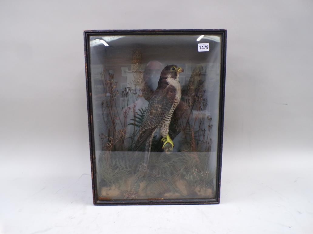 TAXIDERMY FIGURE OF A BIRD OF PREY IN GLAZED BOX - BOX 40cms W