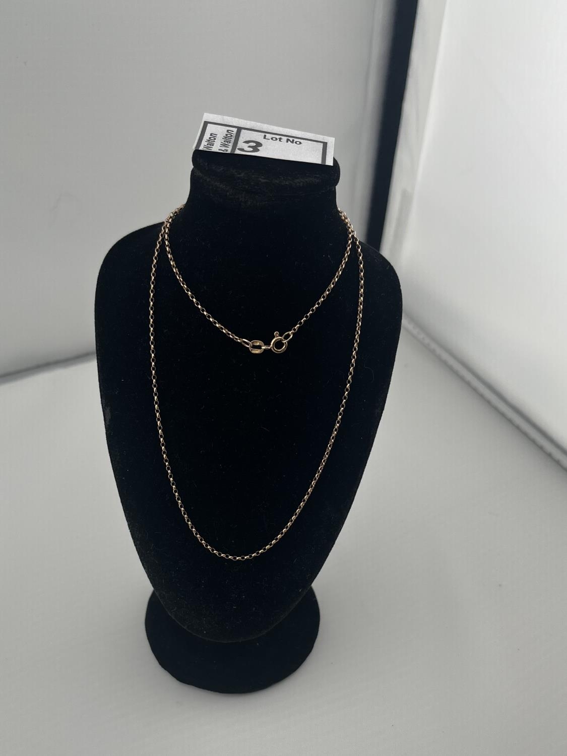 18" 9ct Gold thin belcher style necklace, 2.2g - Only 10% buyer's premium