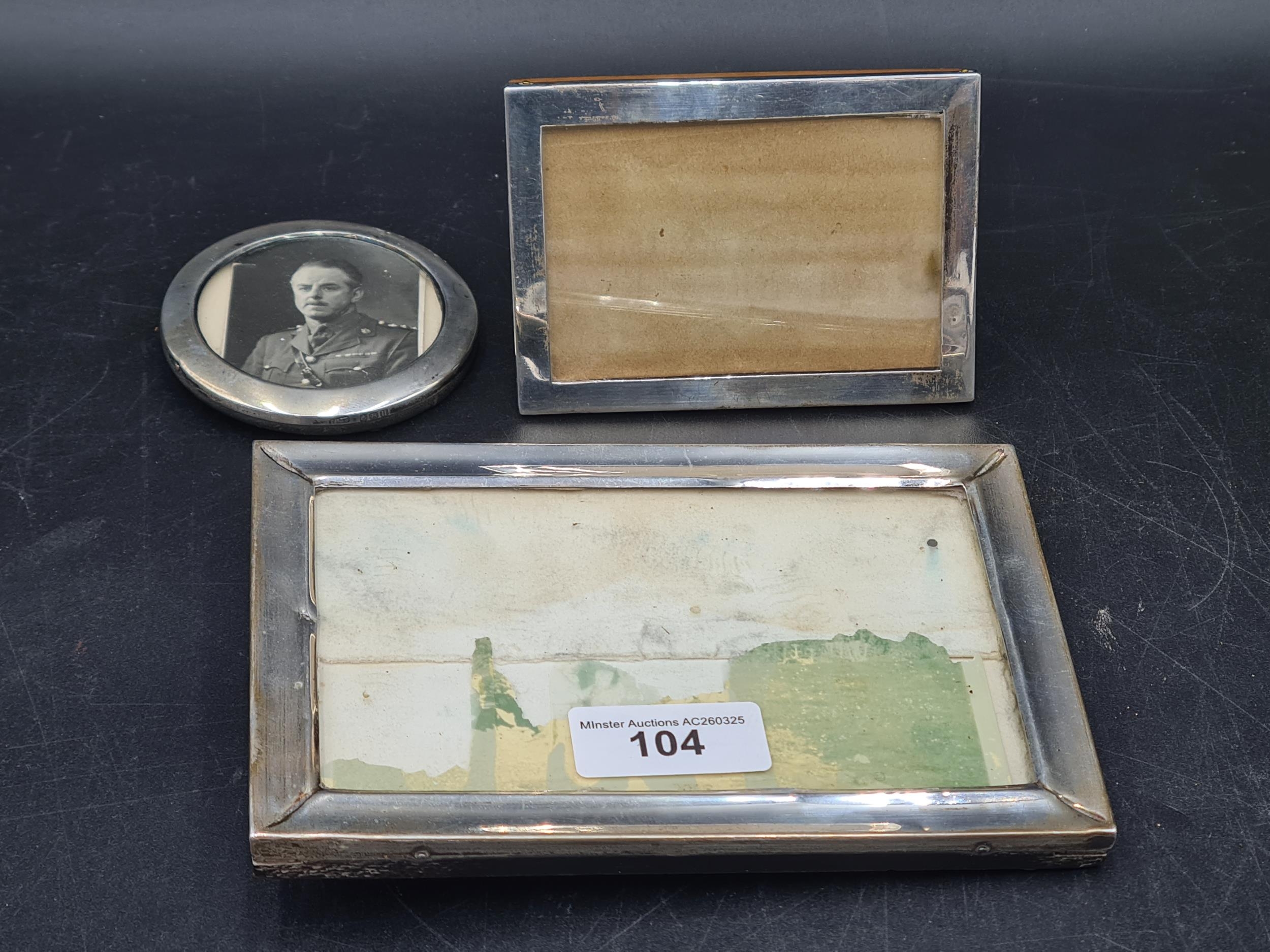Three various silver Photograph Frames, two oblong and one circular