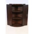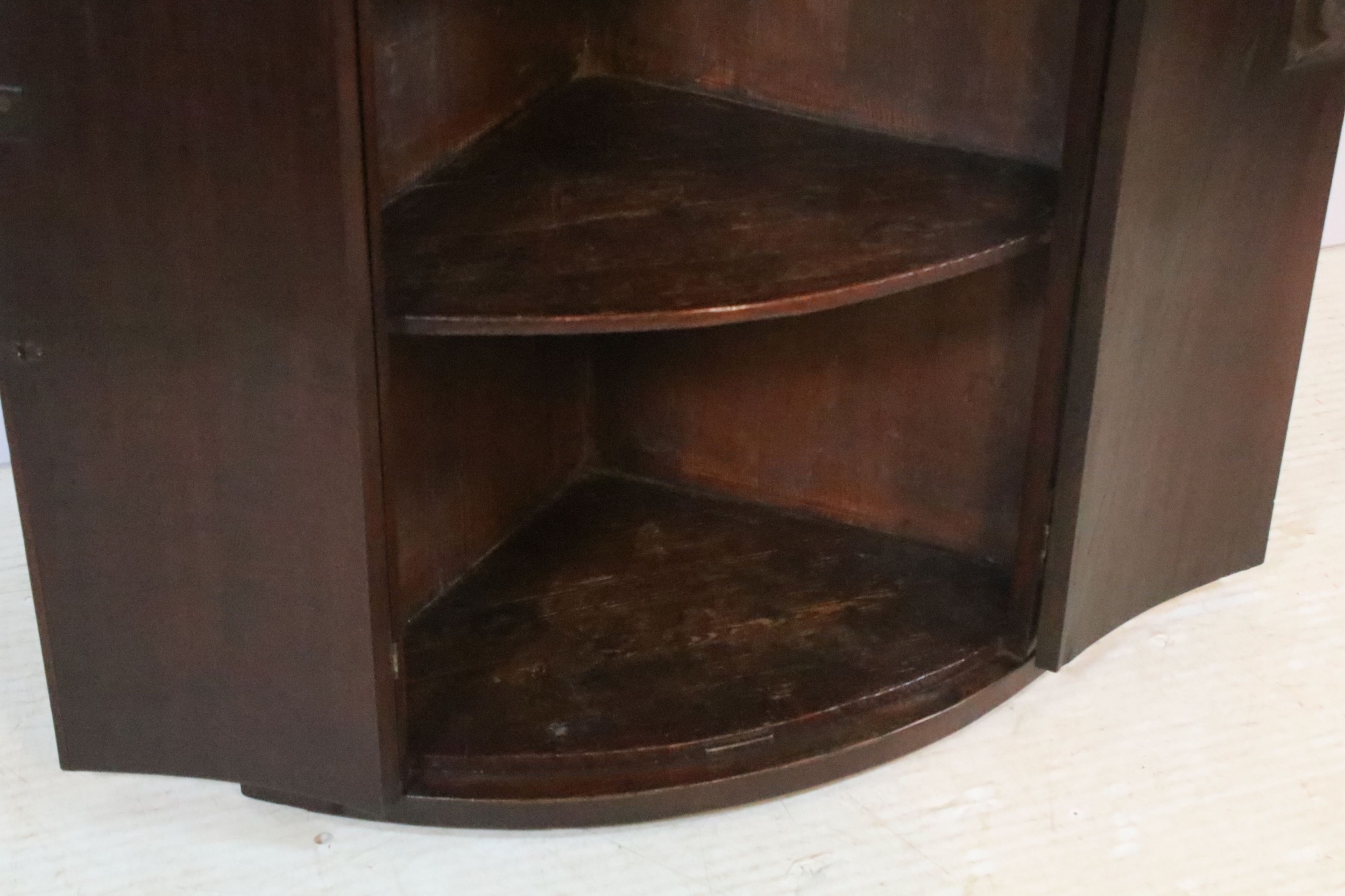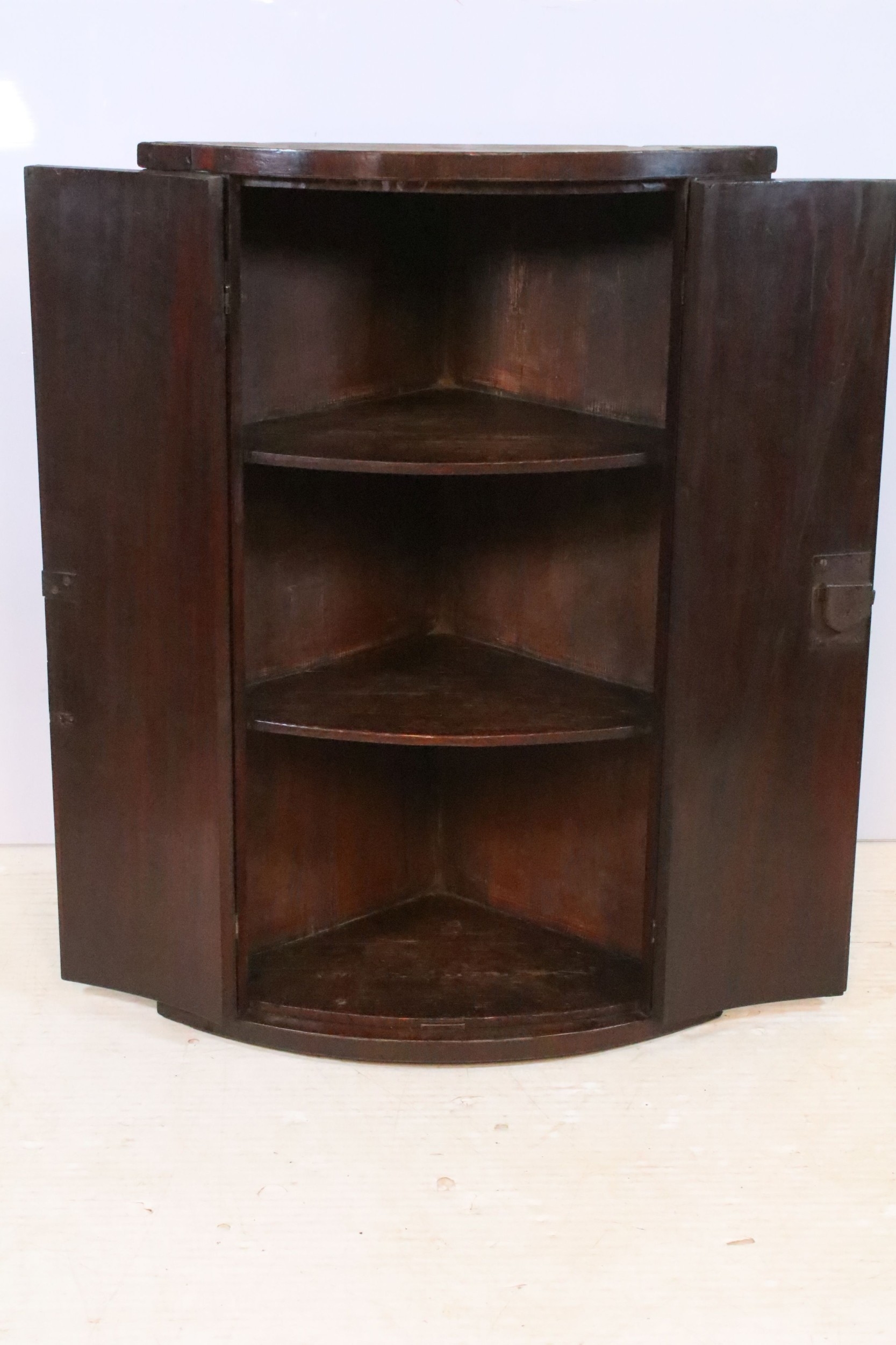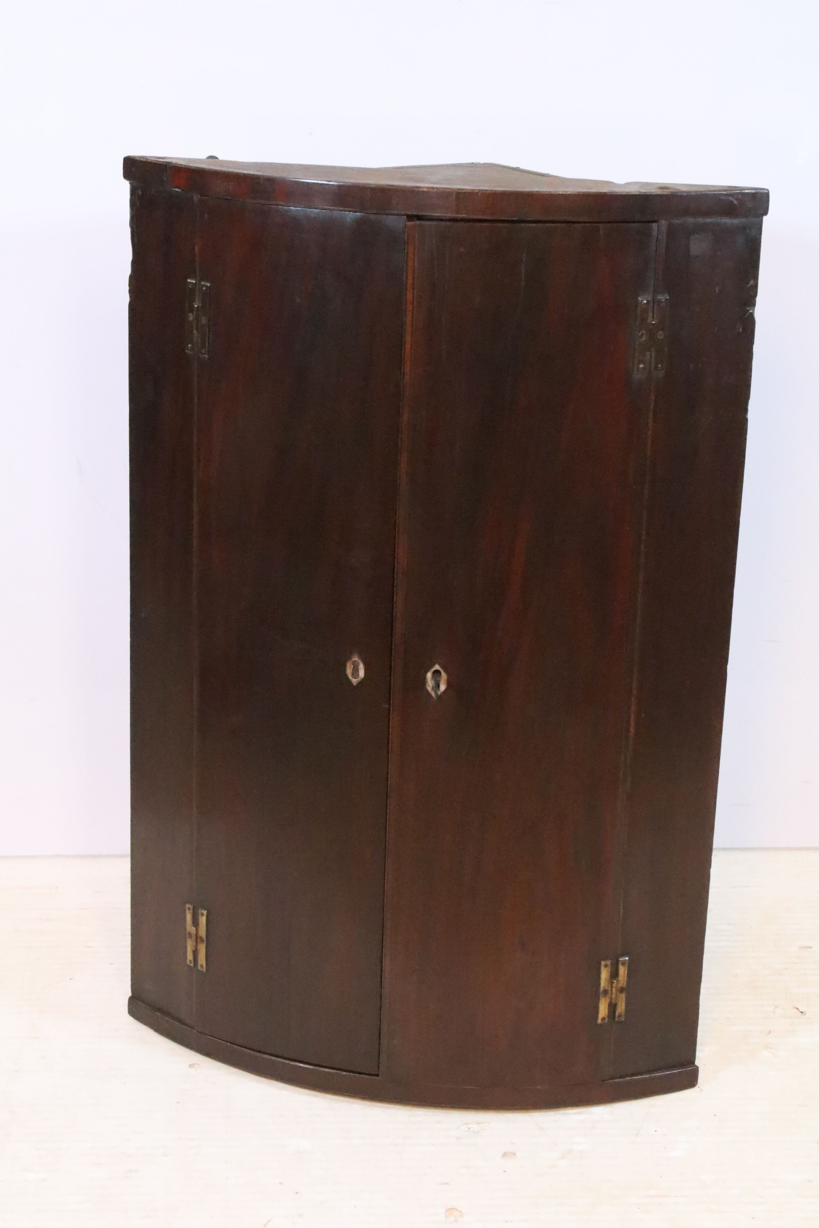 19th century mahogany bow fronted corner cupboard, having inlaid doors, W 55cm x H 92cm