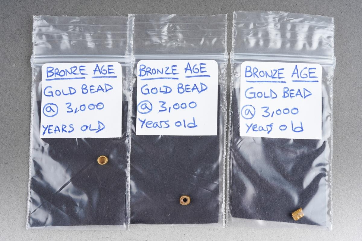 3 Bronze Age gold beads, approx 3000 years old, originally purchased from timeline auction