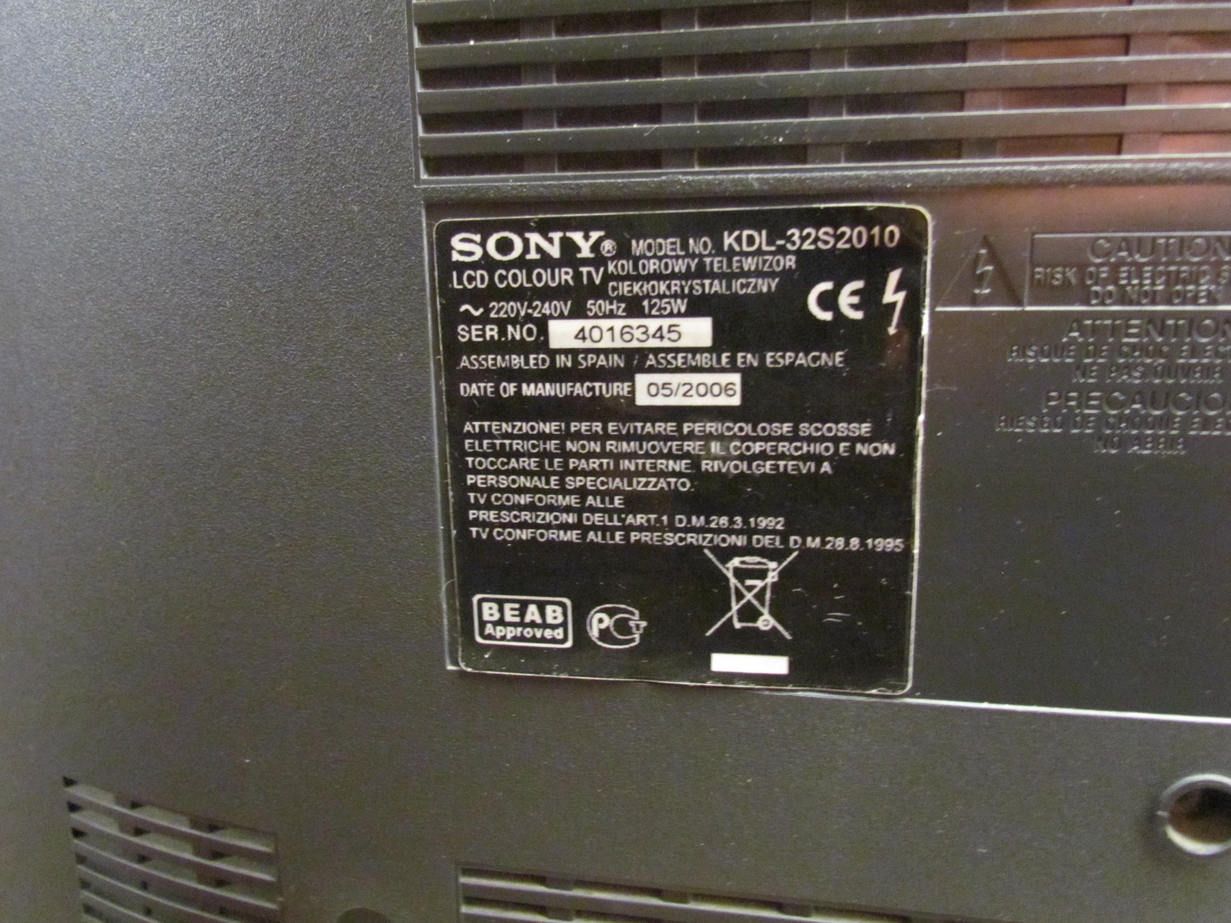 A Sony KDL-32S2010 32" LCD TV with remote (E) £10-20