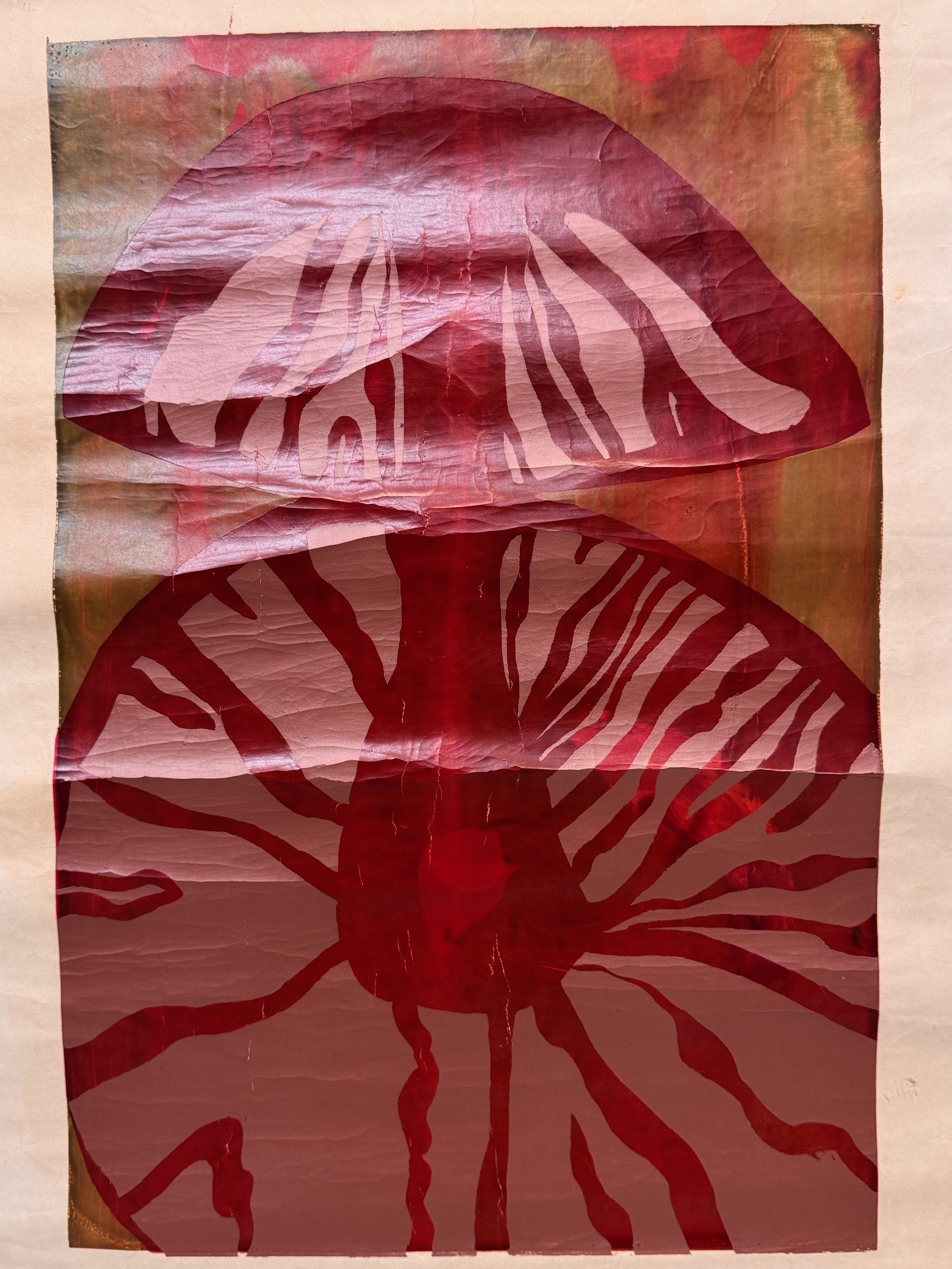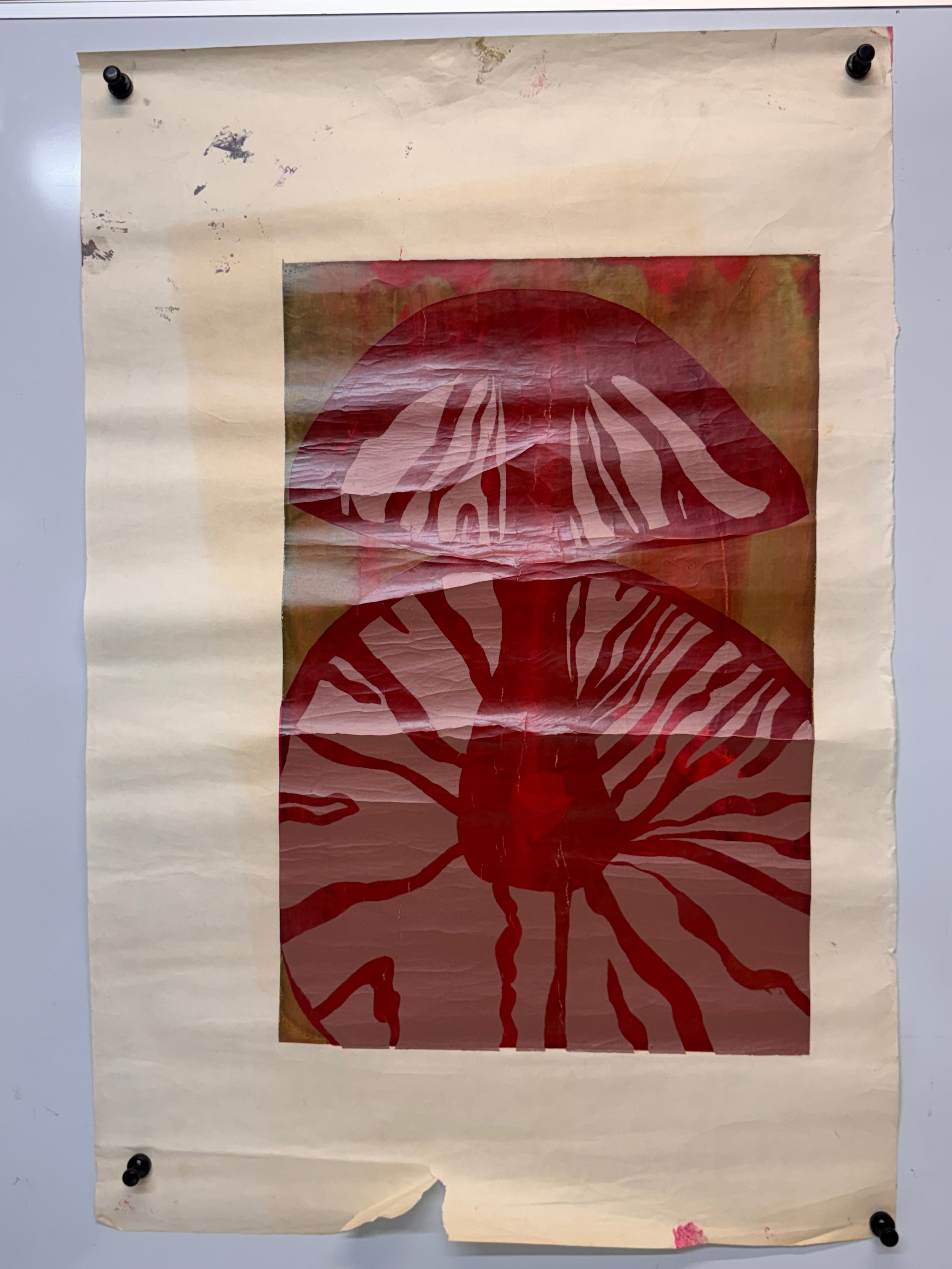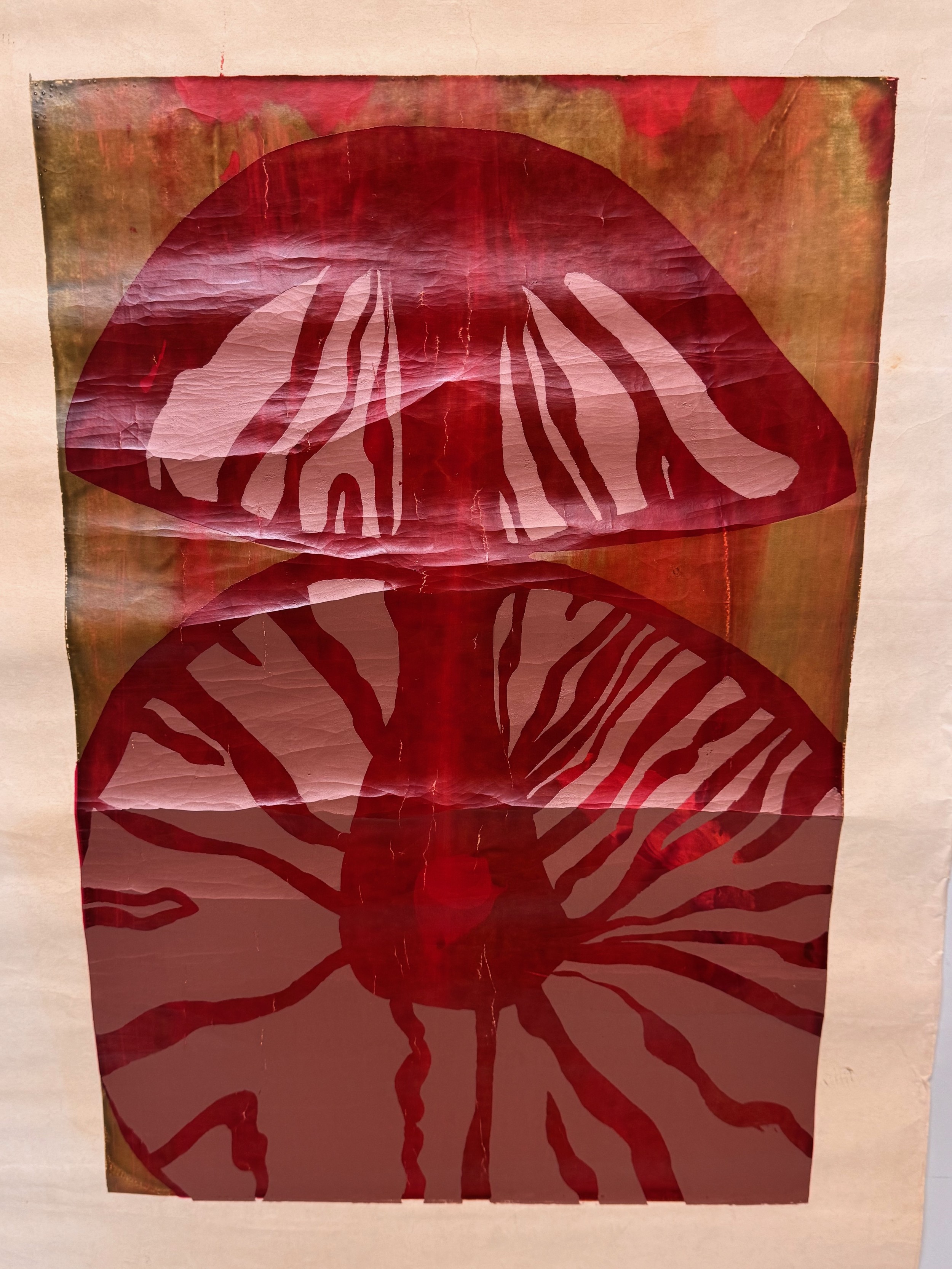 Art, screen print C20th unsigned absrtach of a mushroom,This lot is available for in-house shipping.
