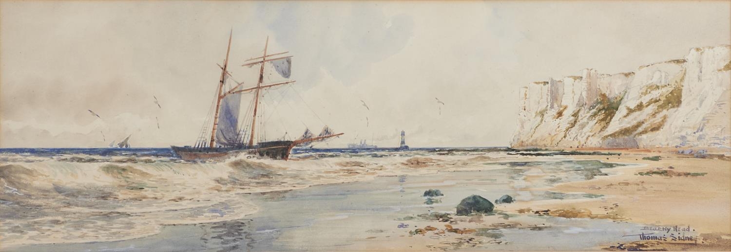Thomas Sidney (fl early- Beachy Head, pencil, watercolour heightened with bodycolour, signed and inscribed with title lower right, 23 x 67cm