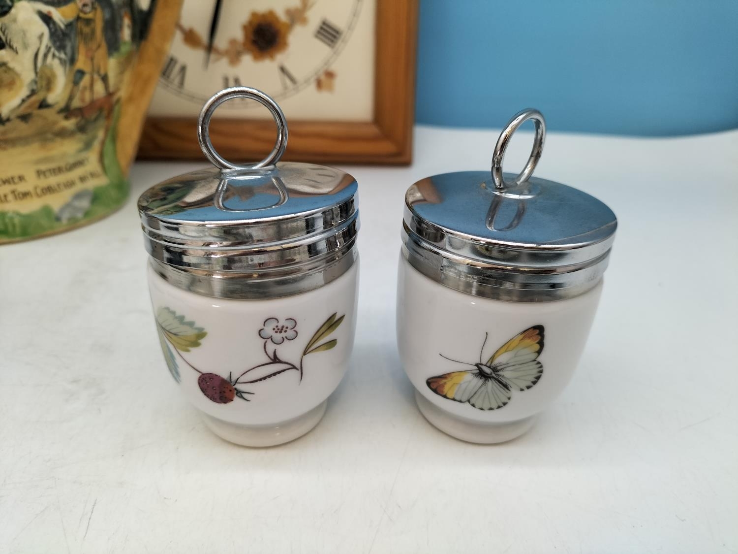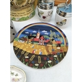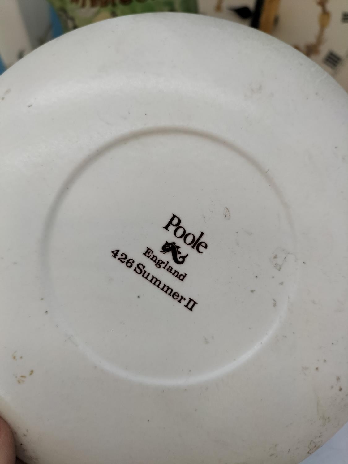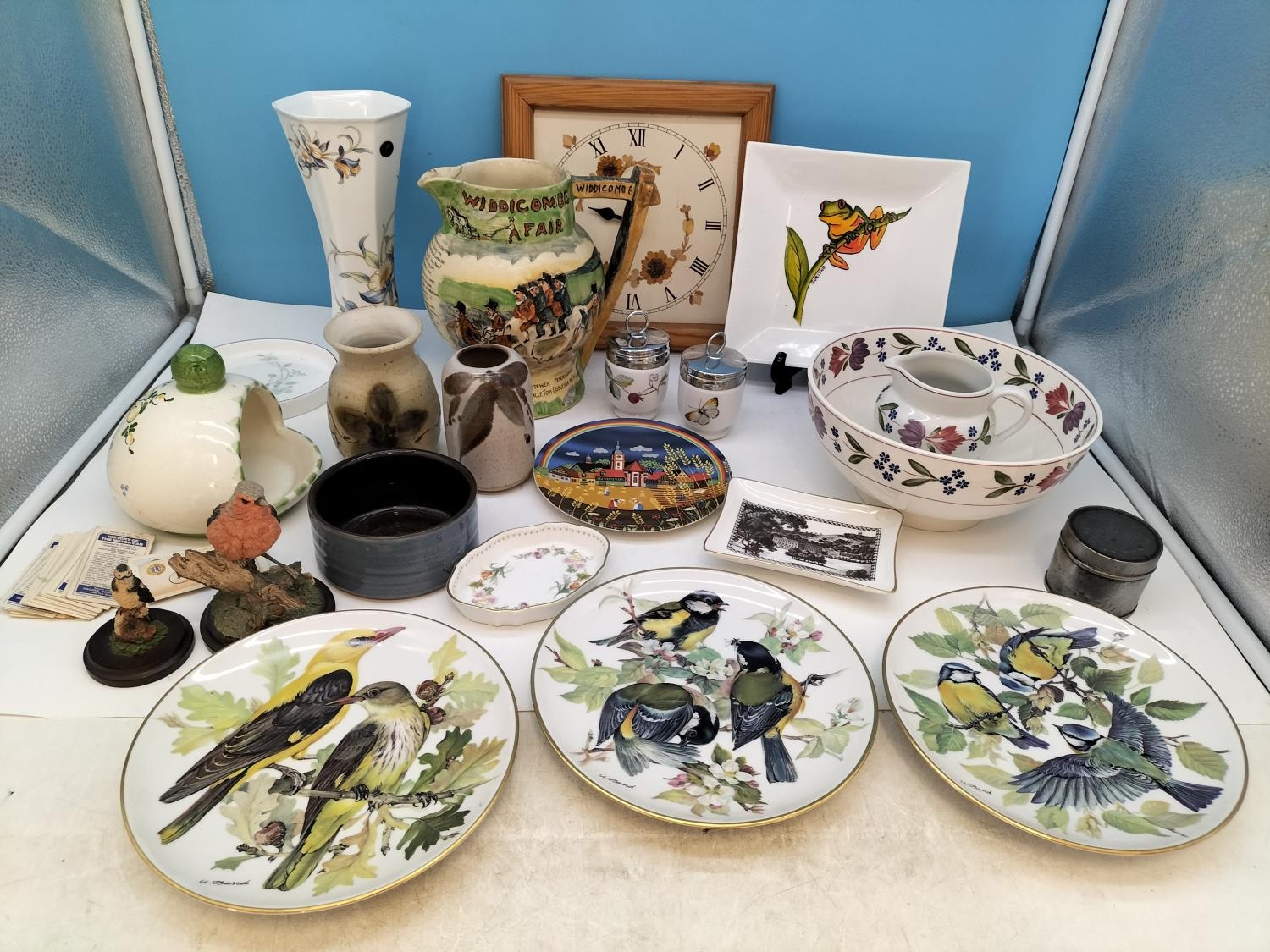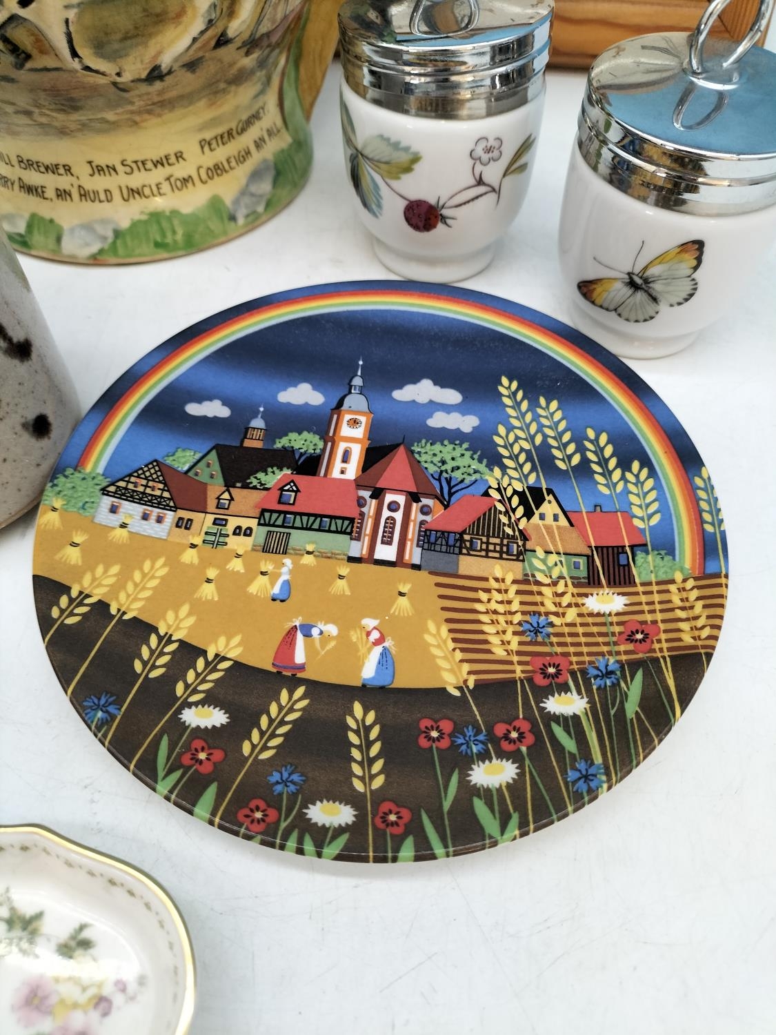Good Box of Mixed Ceramics to include Crown Devon Fieldings 'Widdecome Fair' Musical 19cm Jug (Music W/O but A/F to Jug), Poole Pottery 'Summer' Plate, Royal Worcester Egg Coddlers (2), Simon Rich Studio Pottery, etc.