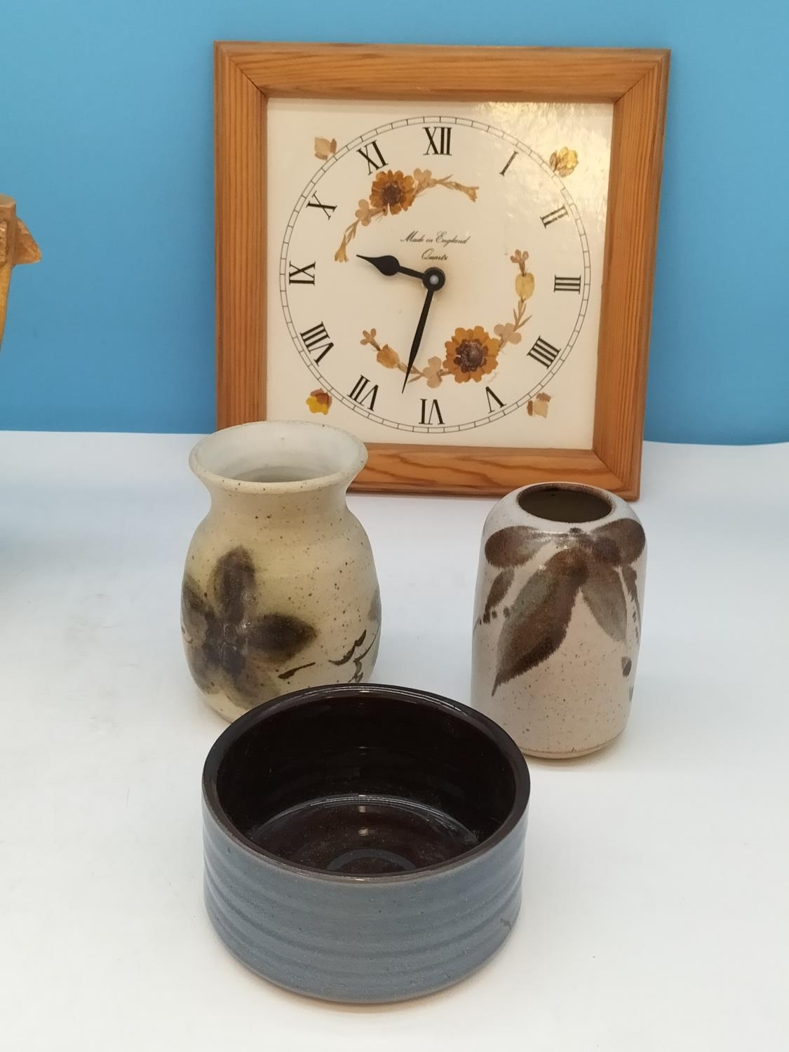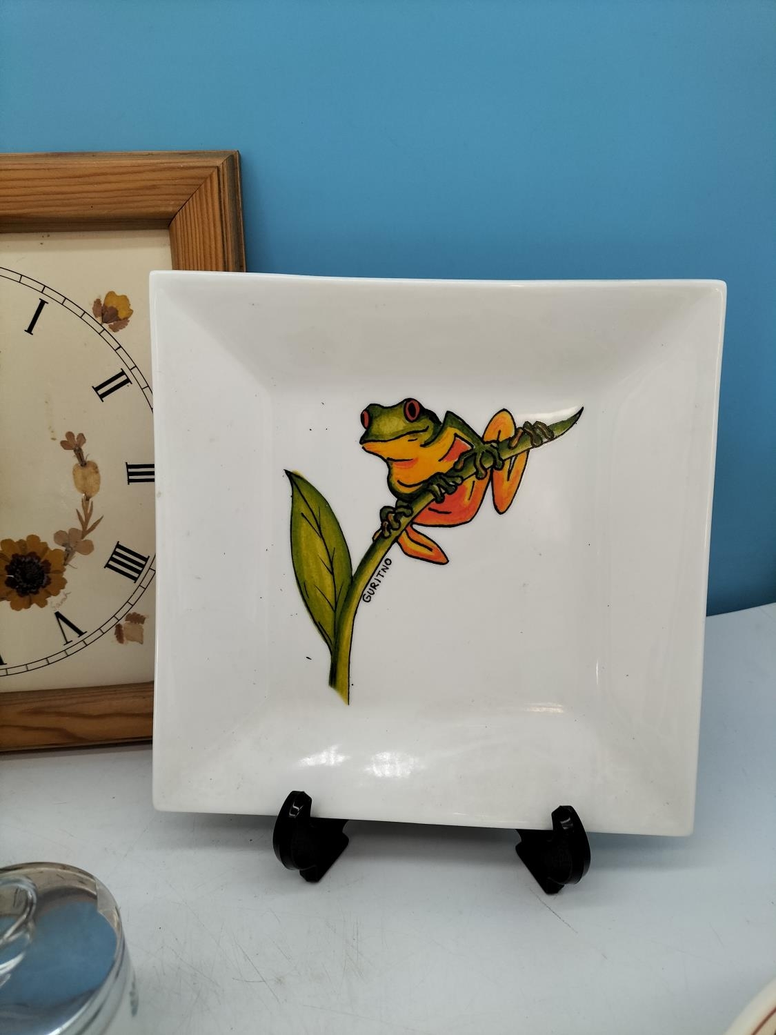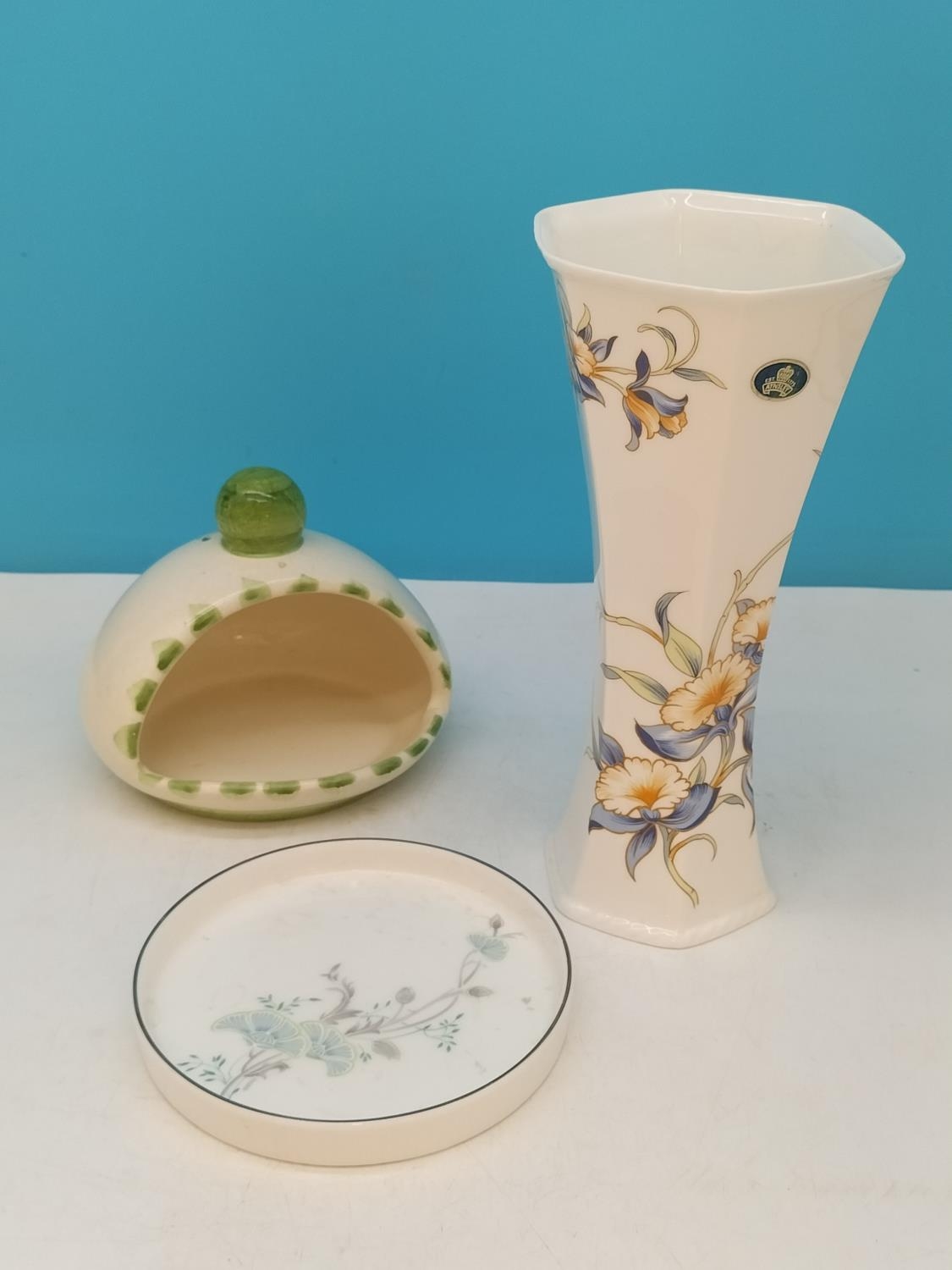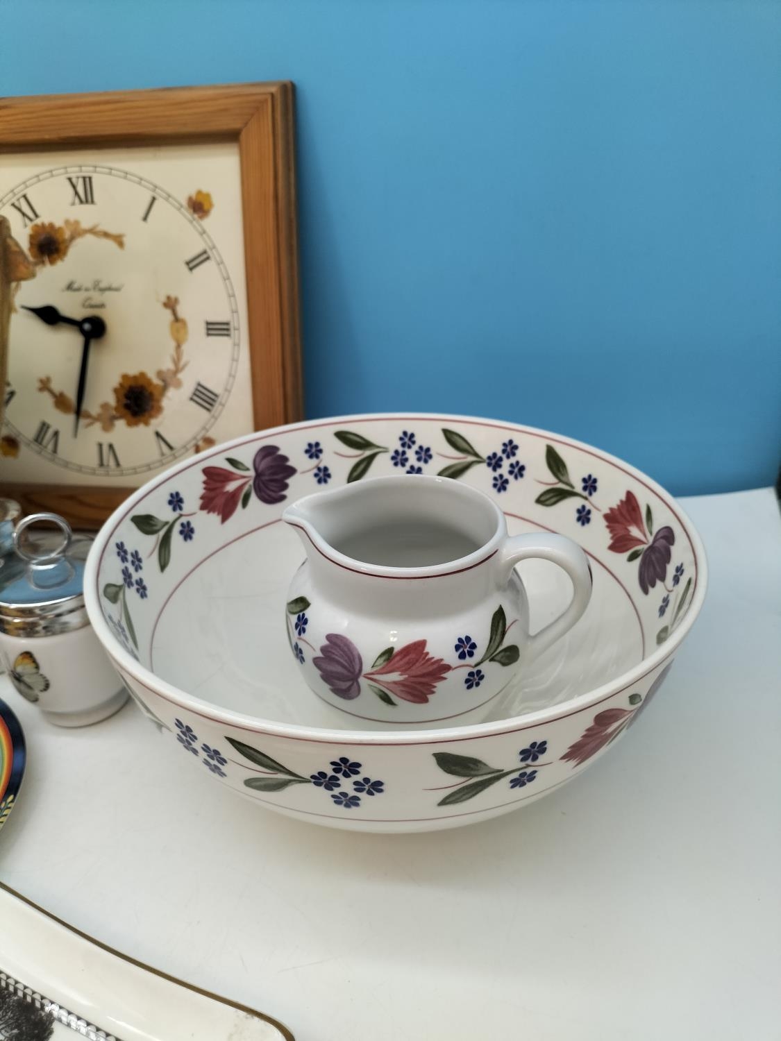 Good Box of Mixed Ceramics to include Crown Devon Fieldings 'Widdecome Fair' Musical 19cm Jug (Music W/O but A/F to Jug), Poole Pottery 'Summer' Plate, Royal Worcester Egg Coddlers (2), Simon Rich Studio Pottery, etc.