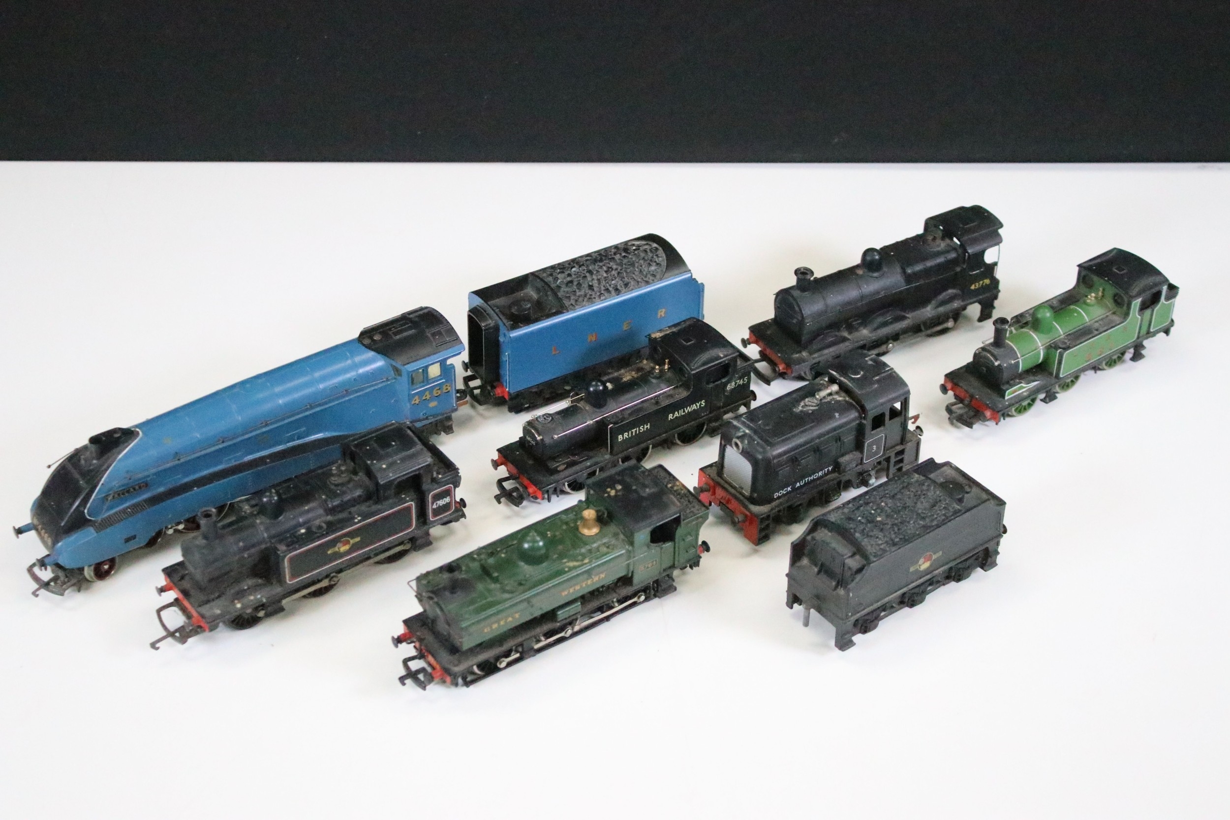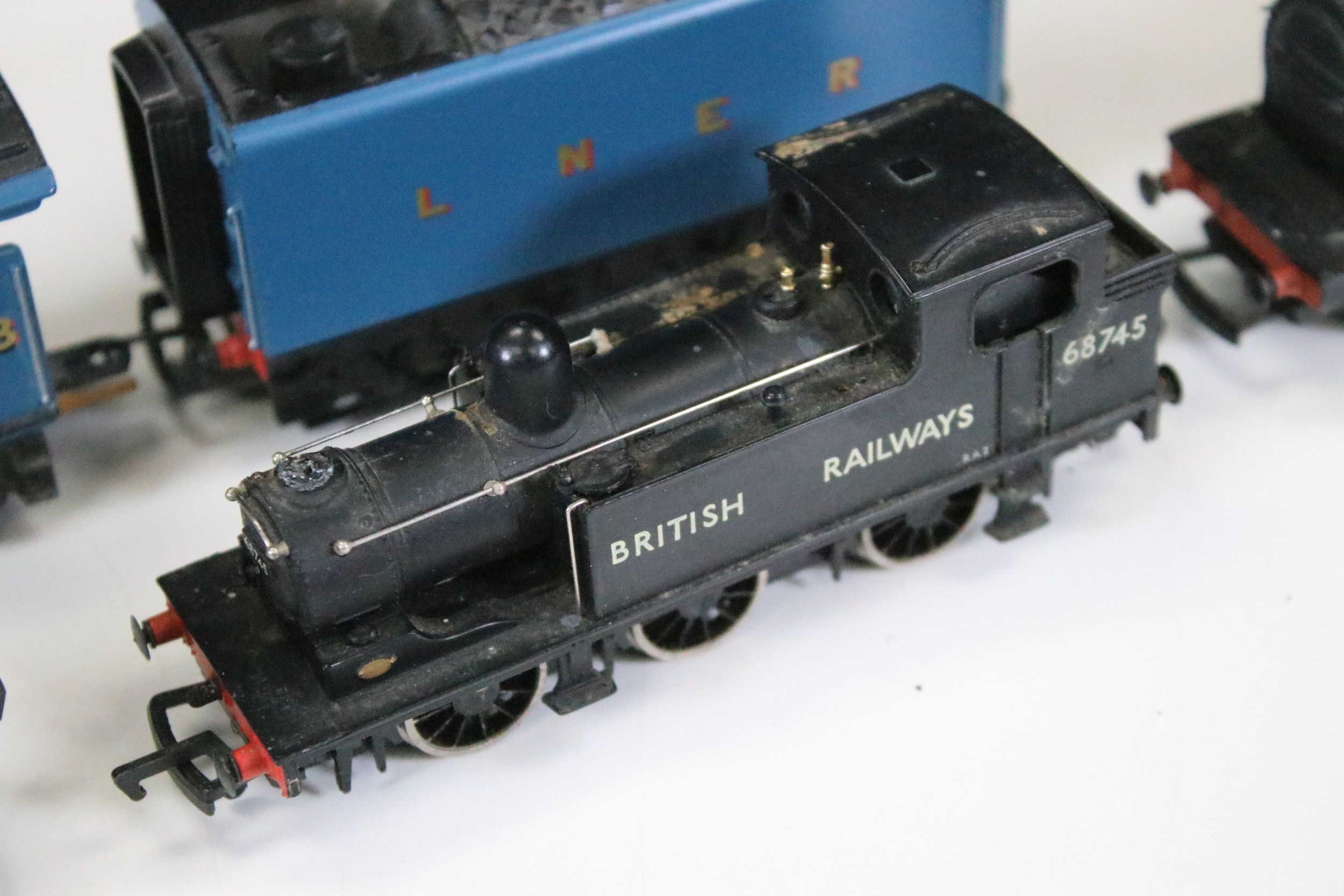 Seven OO gauge locomotives to include Hornby Mallard, Mainline LNER 581, Mainline 0-6-0 68745, Mainline 0-6-0 5784 GWR etc
