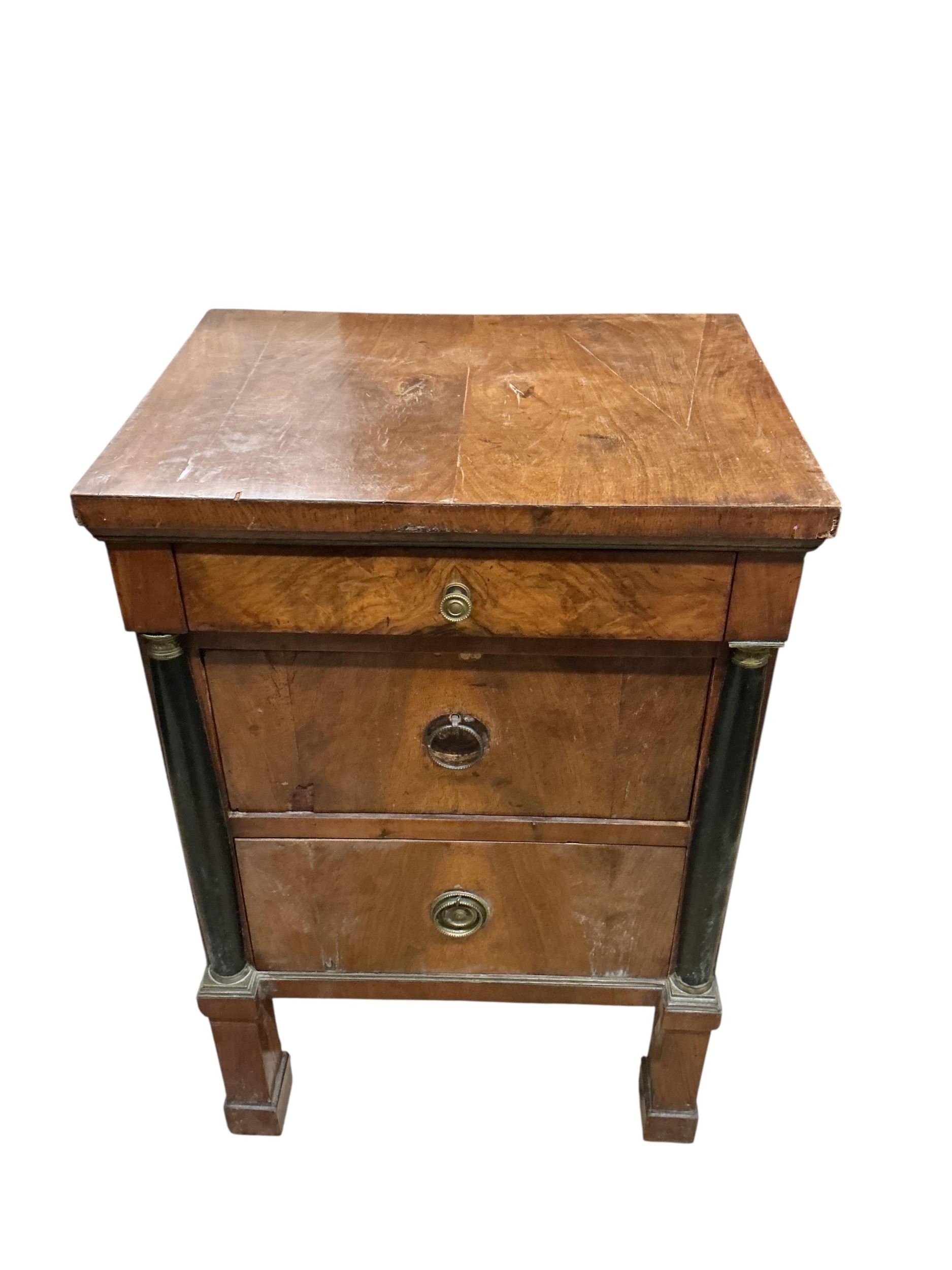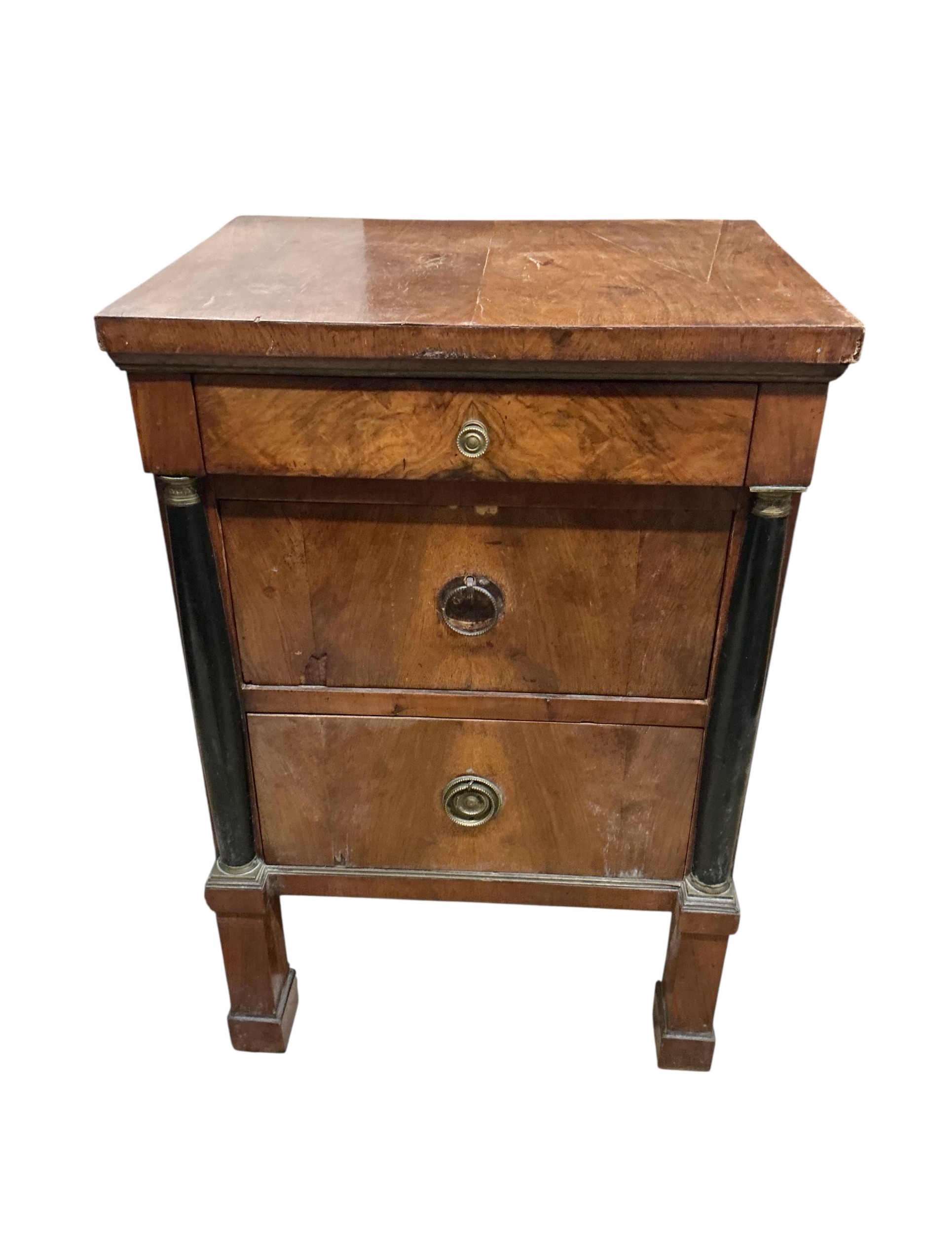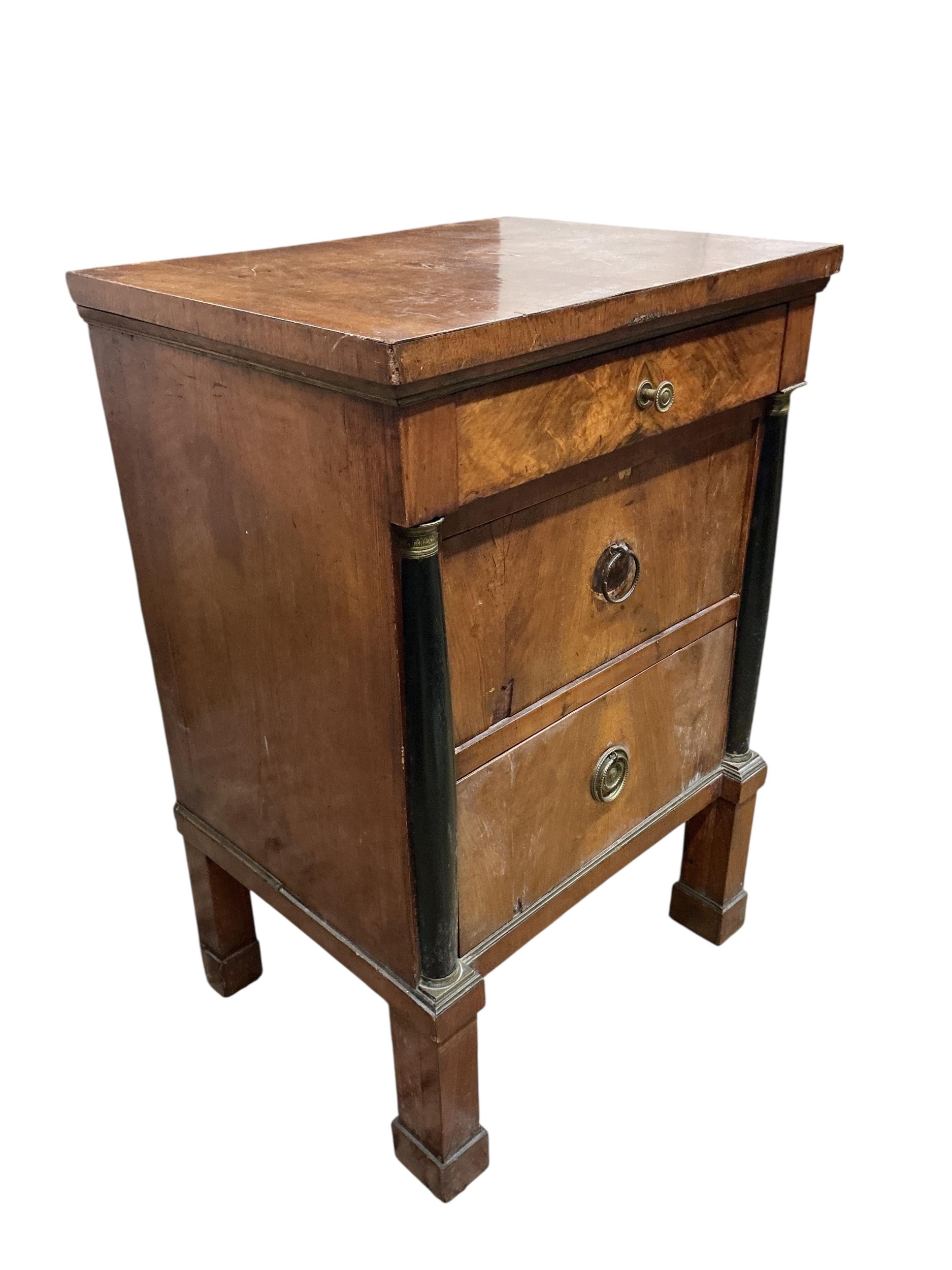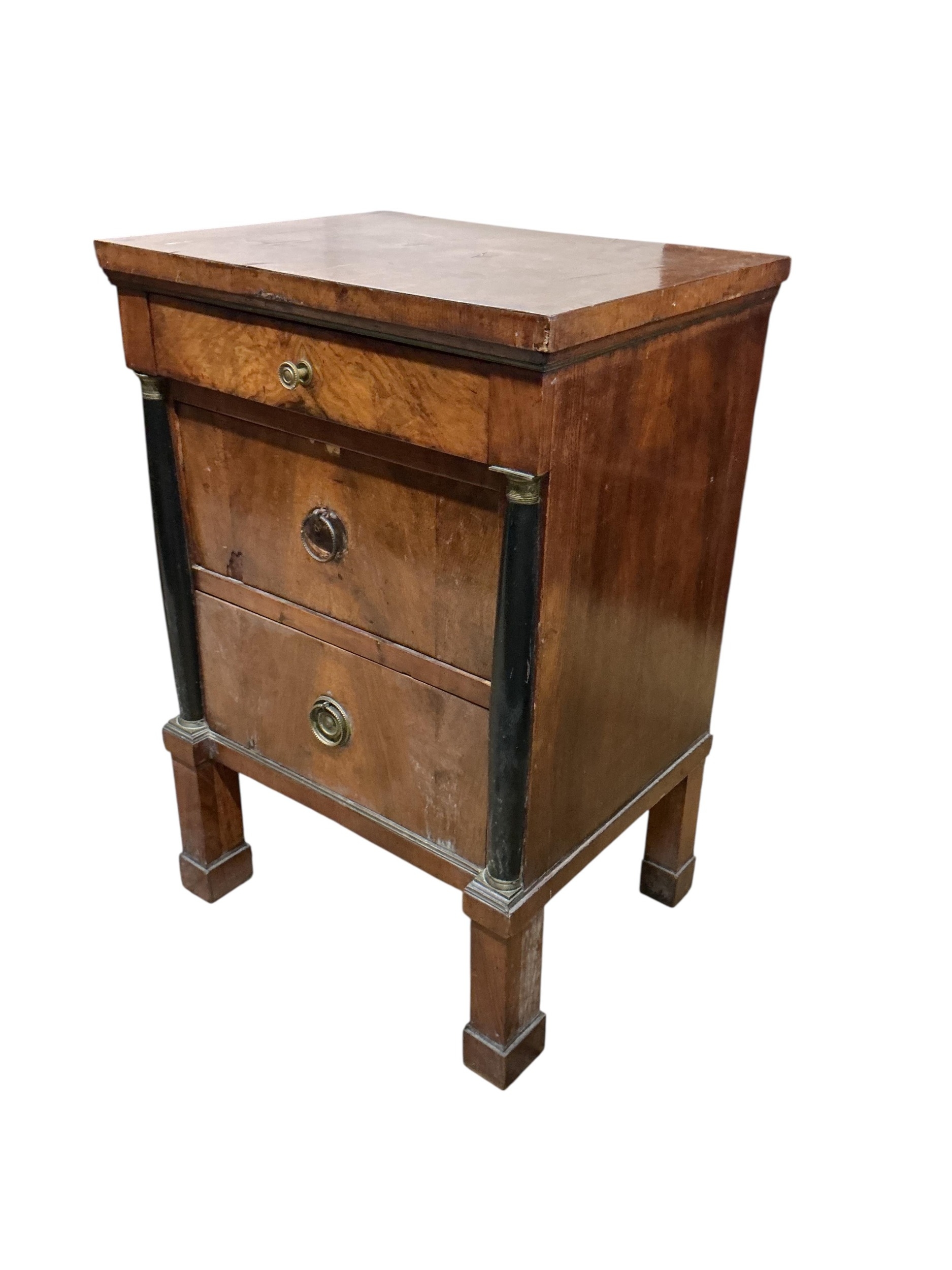 A 19th century Biedermeir style part ebonised walnut narrow commode, width 47cm, depth 44cm, height 84cm
