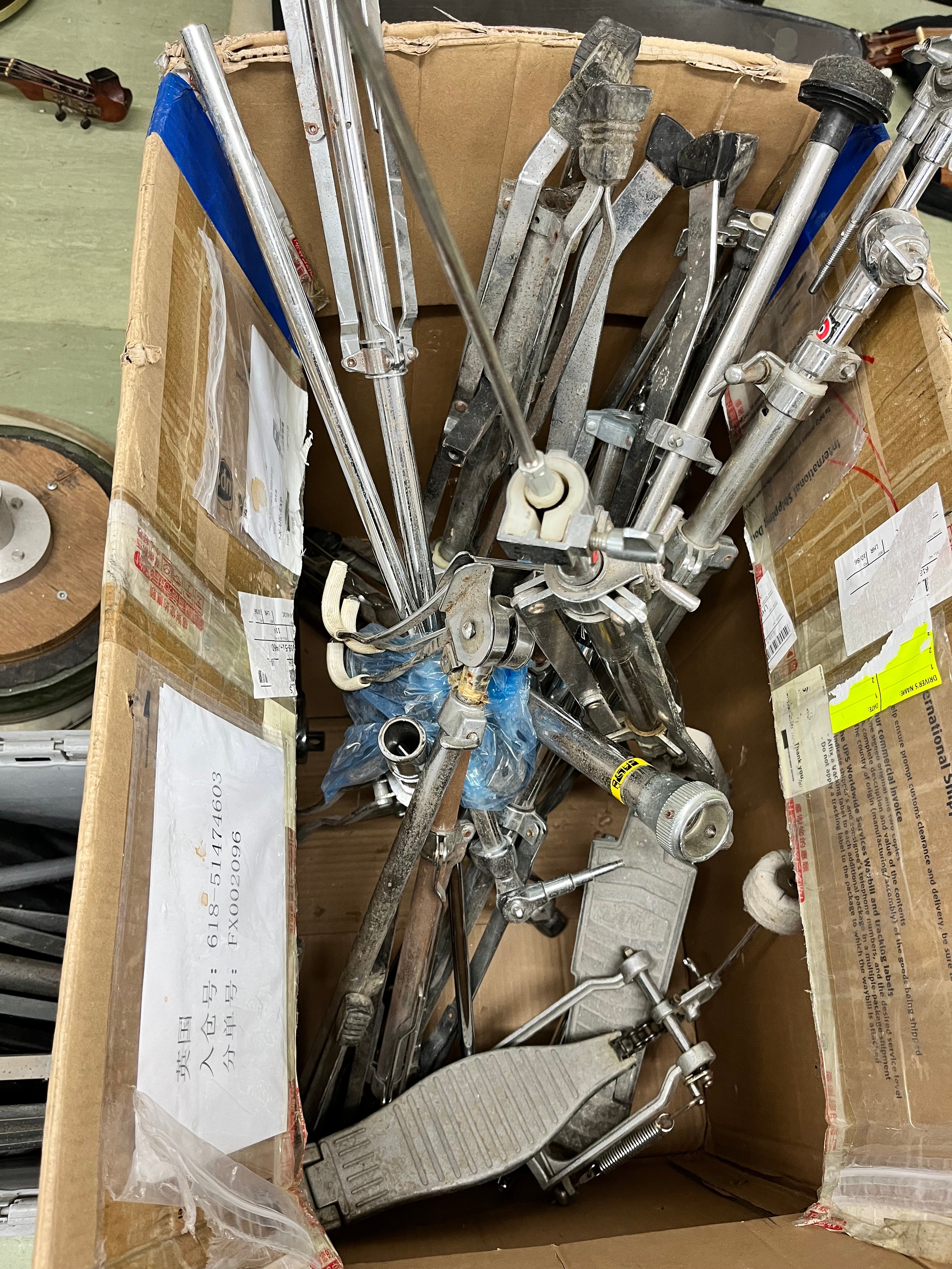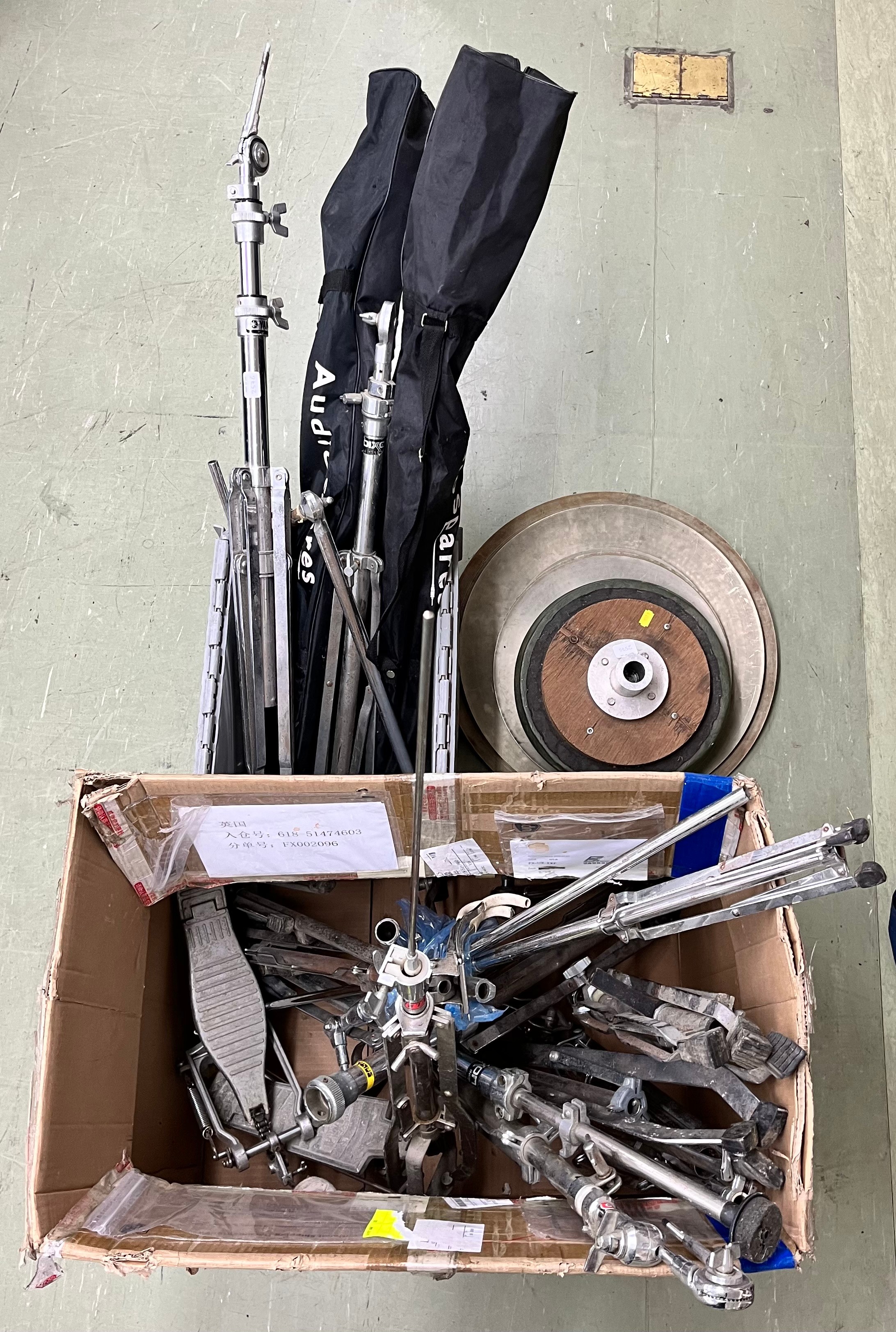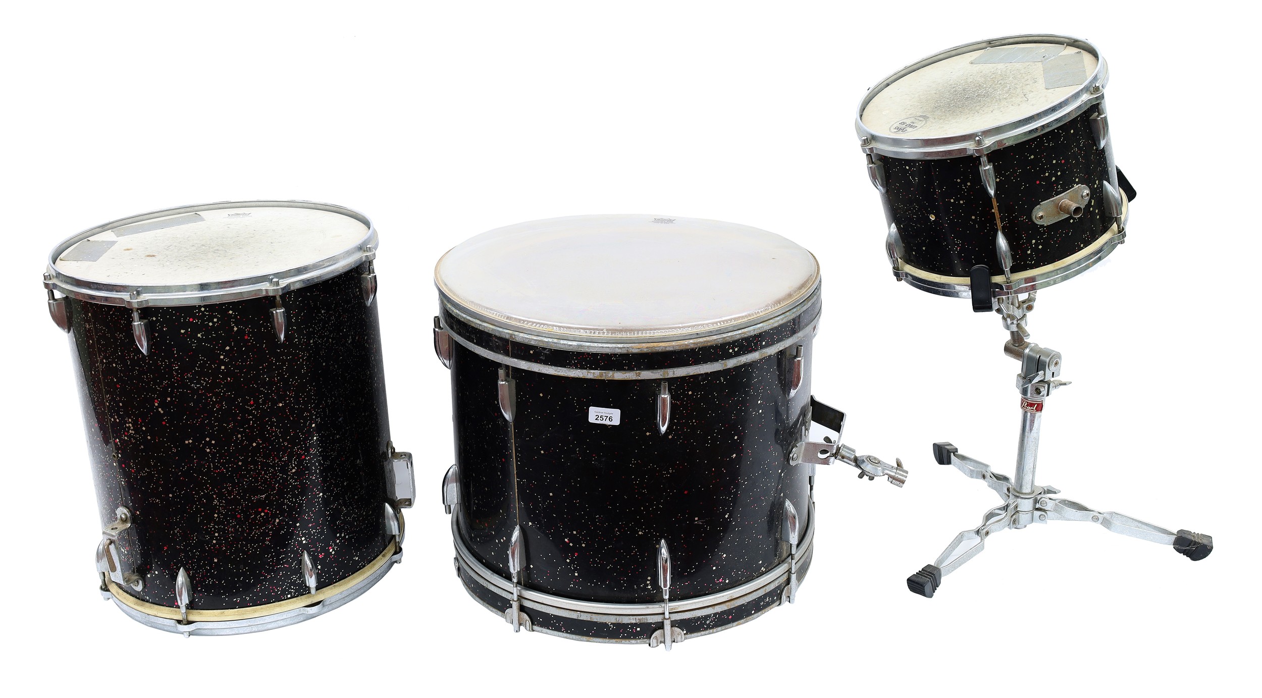 B & H Ajax three piece drum kit, with black colour spot finish; also a quantity of various size cymbals and a large quantity of hardware
