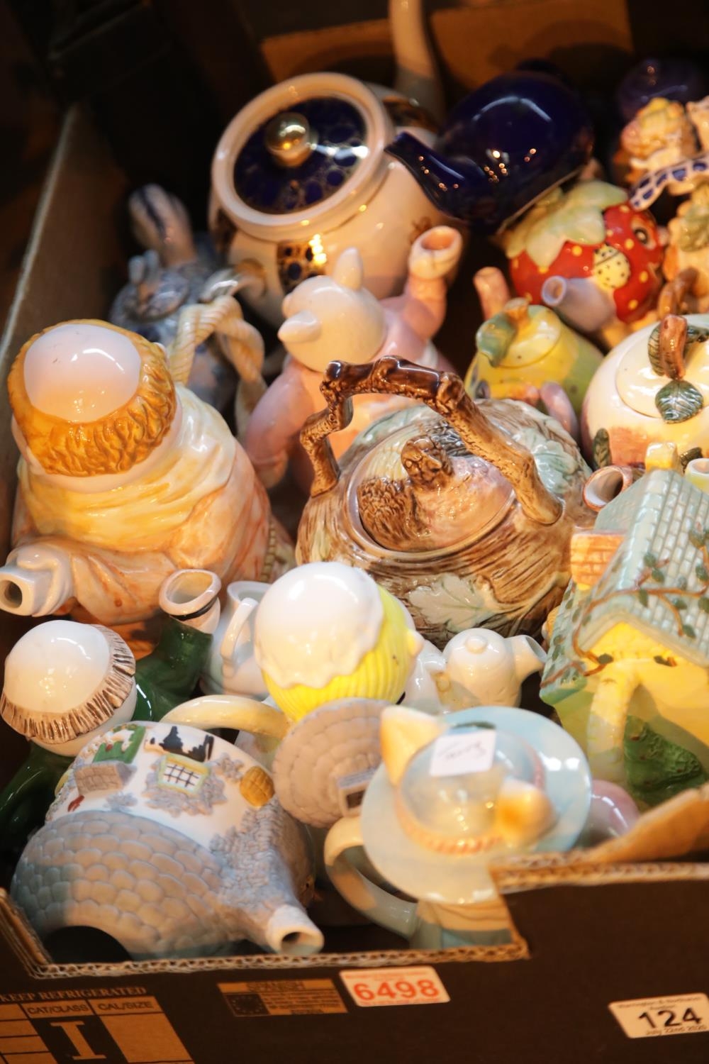 Box of mixed ceramics including novelty teapots and Christopher Wrenn. This lot is not available for in-house P&P.