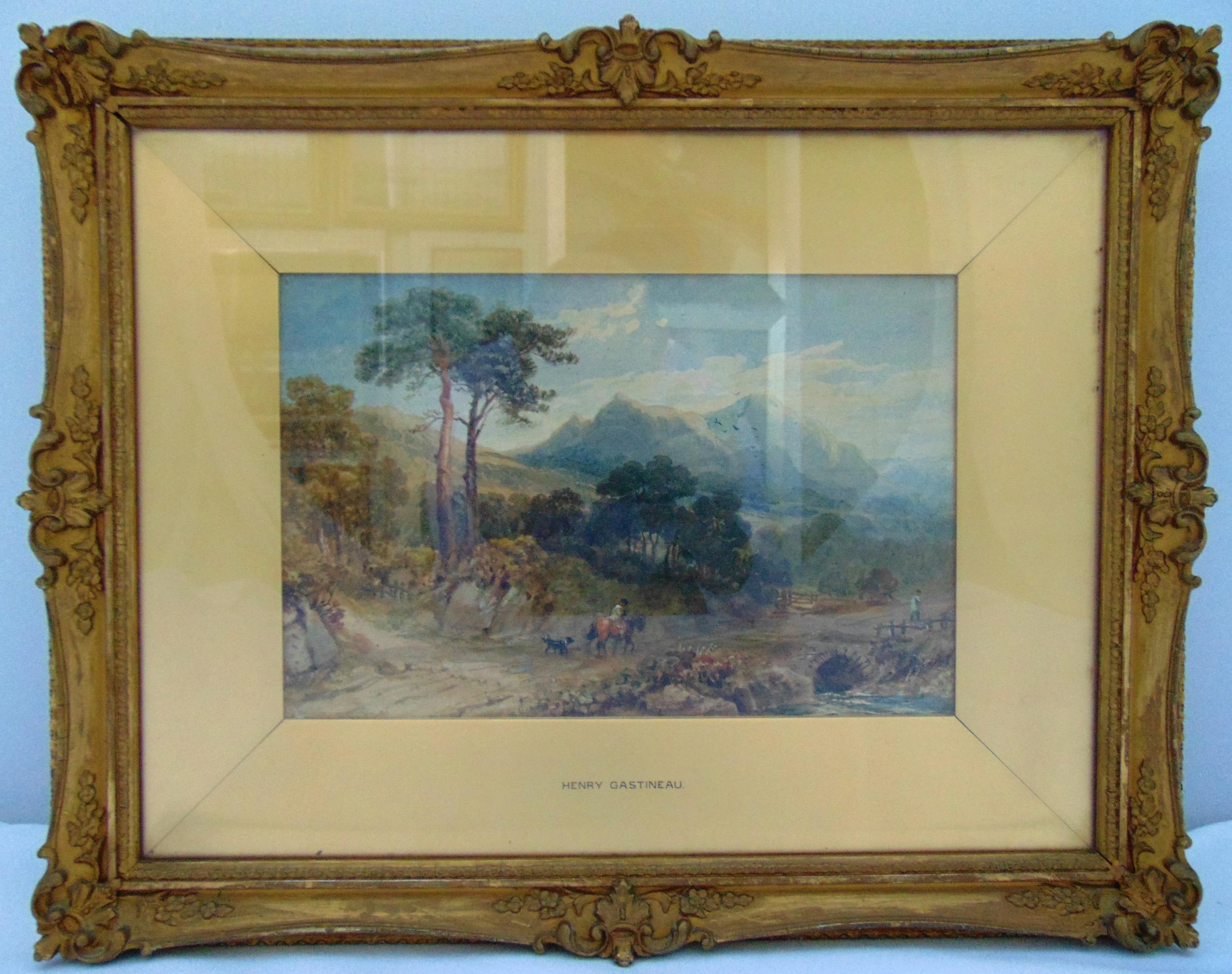 Henry Gastineau framed and glazed watercolour titled In A Welsh Valley, label to verso, 19.5 x 29.5cm