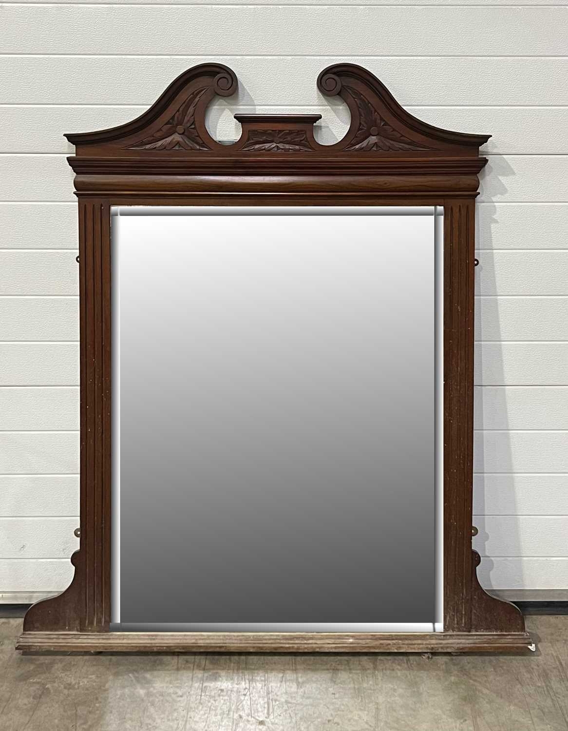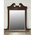 An overmantel mirror, with a broken pediment and a bevelled edge. W: 130 cm H: 149 cm