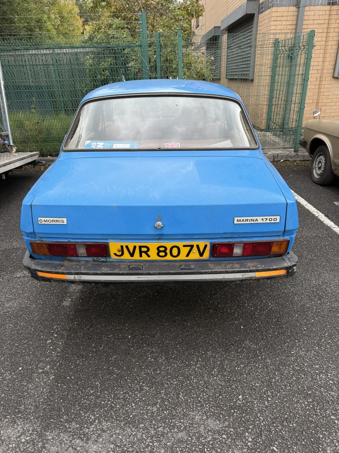 A MORRIS MARINA 1700 MOTOR CAR, blue coachwork, 1700 petrol engine, first registered 1/7/1980, last MOT expired 12/1/2012 at 48830 miles, current mileage shows 48850 miles, registration number JVR 807V