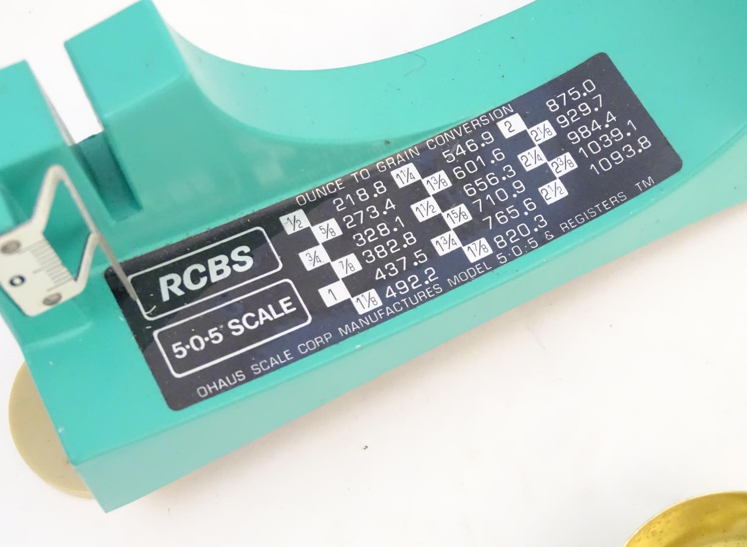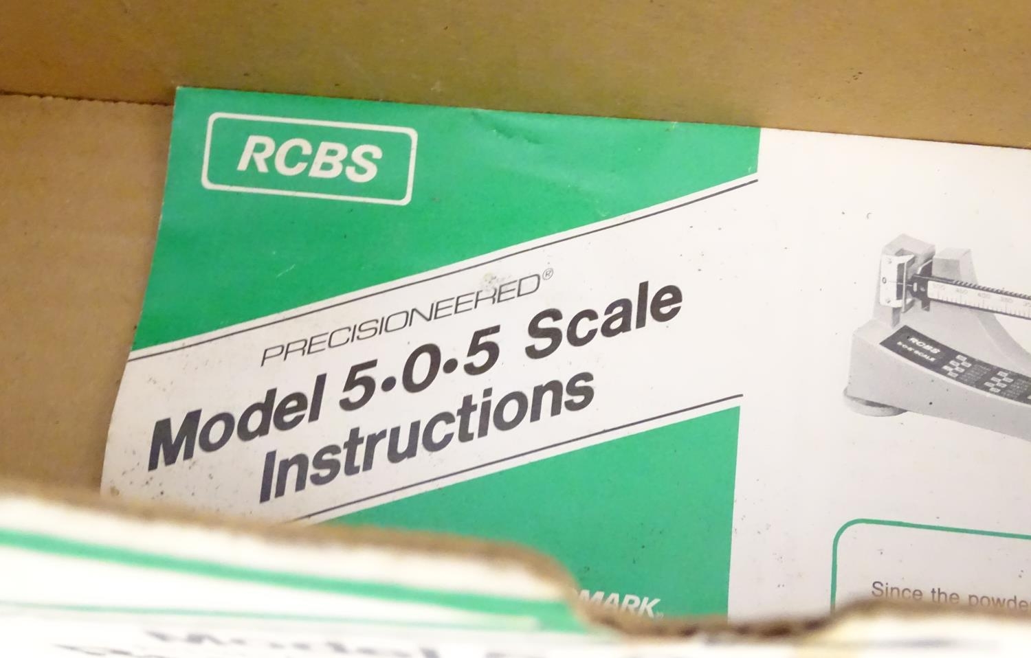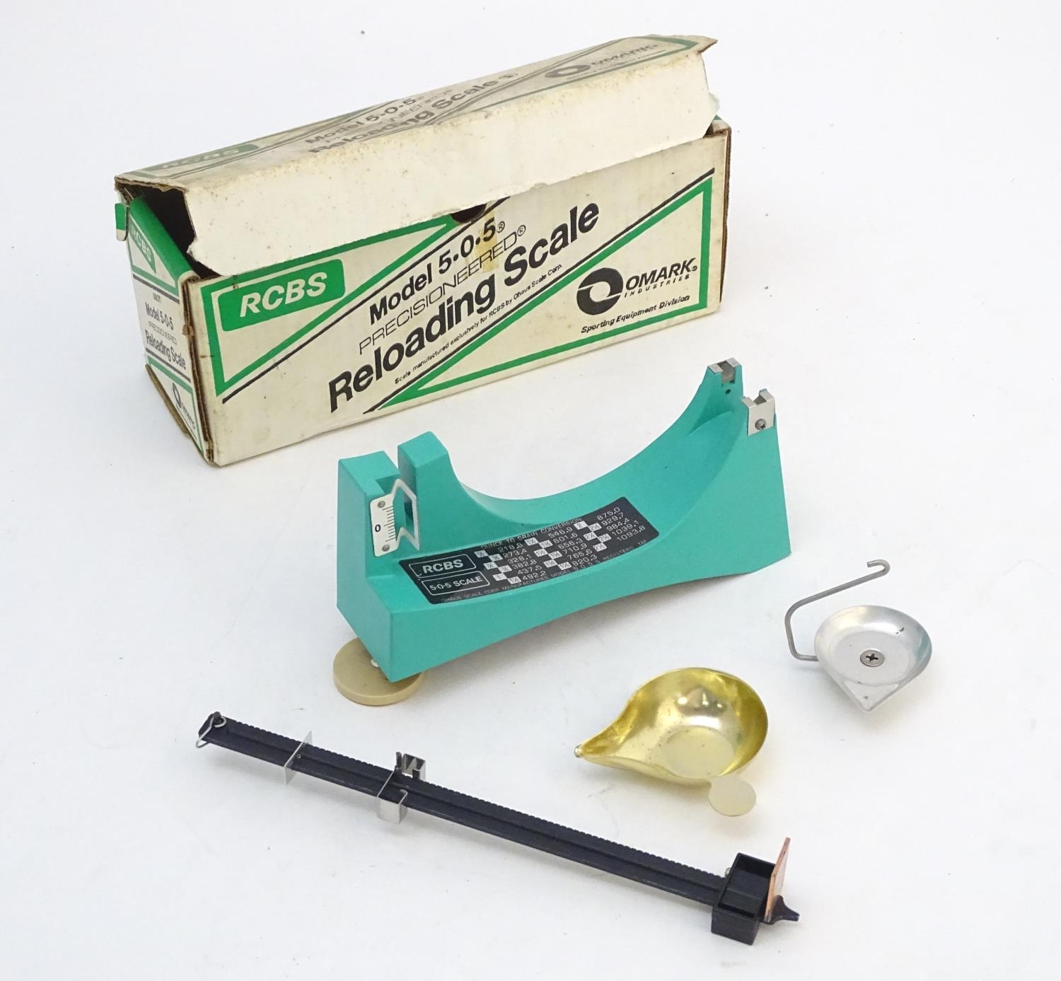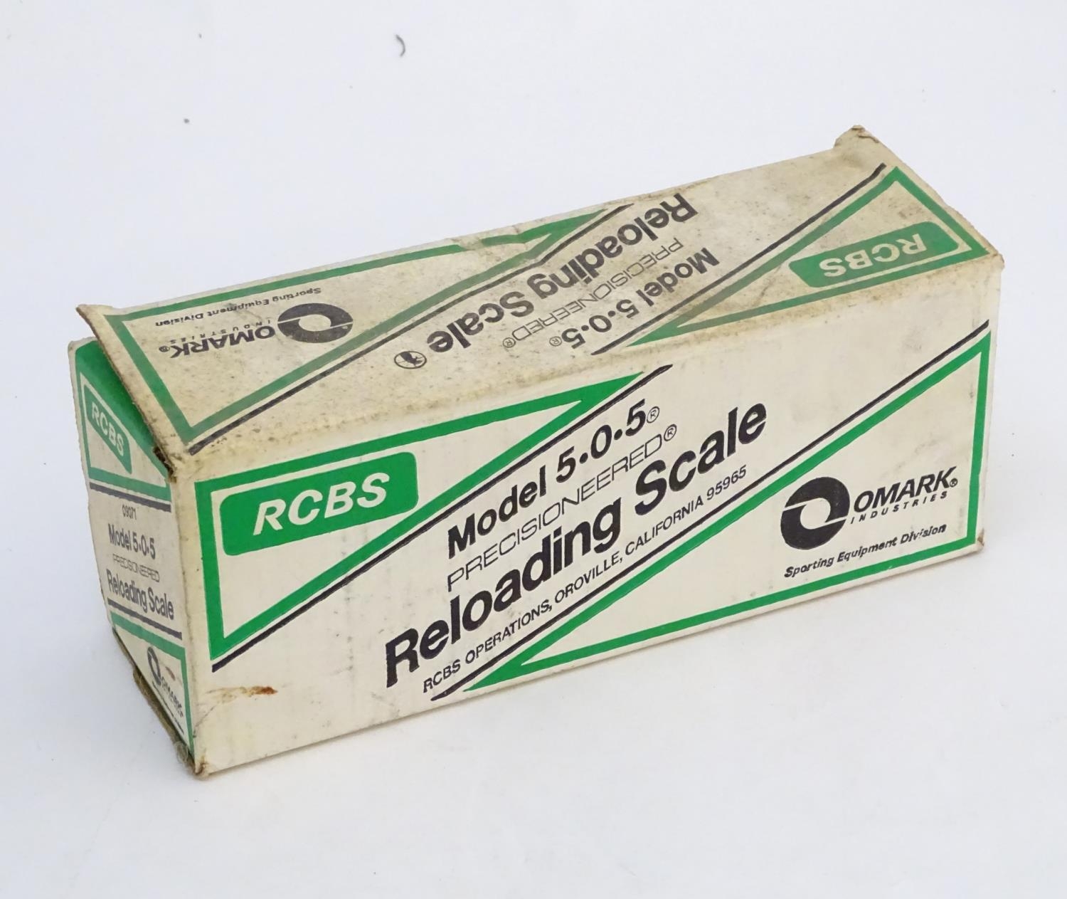An RCBS 'Model 5.0.5' reloading scale, boxed with instructions