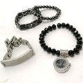 Ben Sherman stainless steel identity bracelet, Identity London novelty quartz watch bracelet T/W 2 haematite stretch bracelets