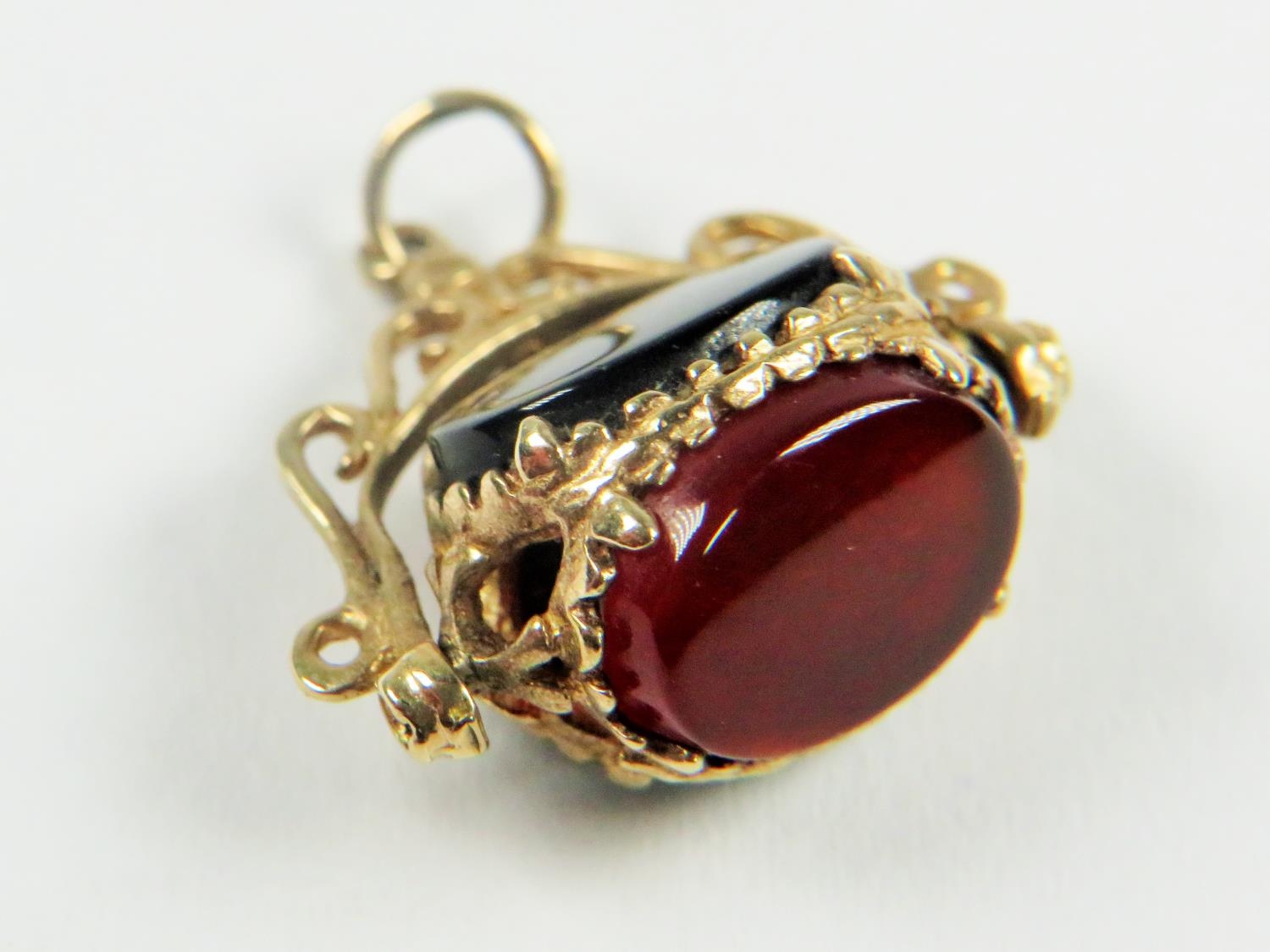 9ct gold bloodstone/carnelian/onyx ornate spinner charm pendant (2.5g) 2041039