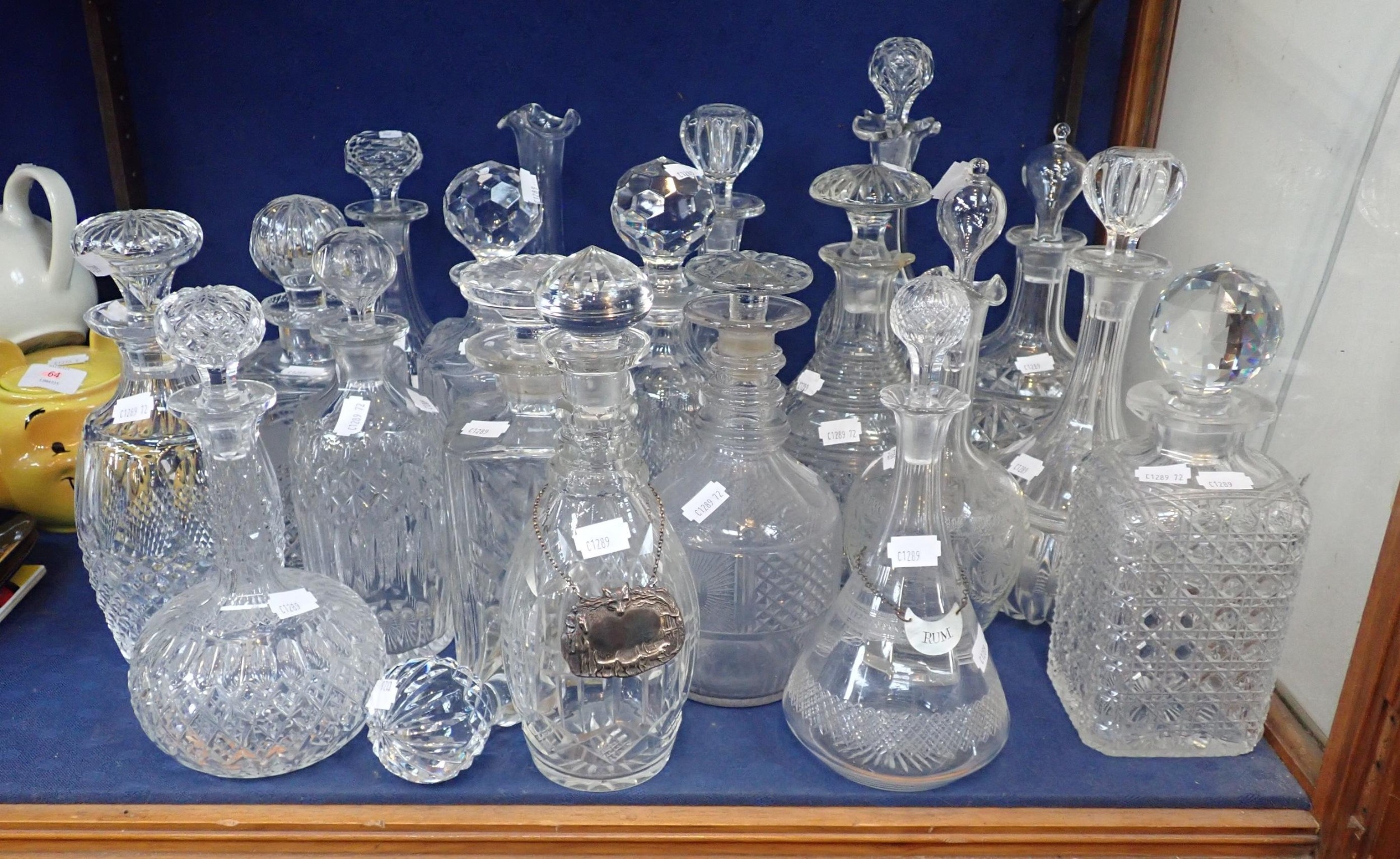 A COLLECTION OF DECANTERSvarious styles and ages, some well cut, with some spare stoppers