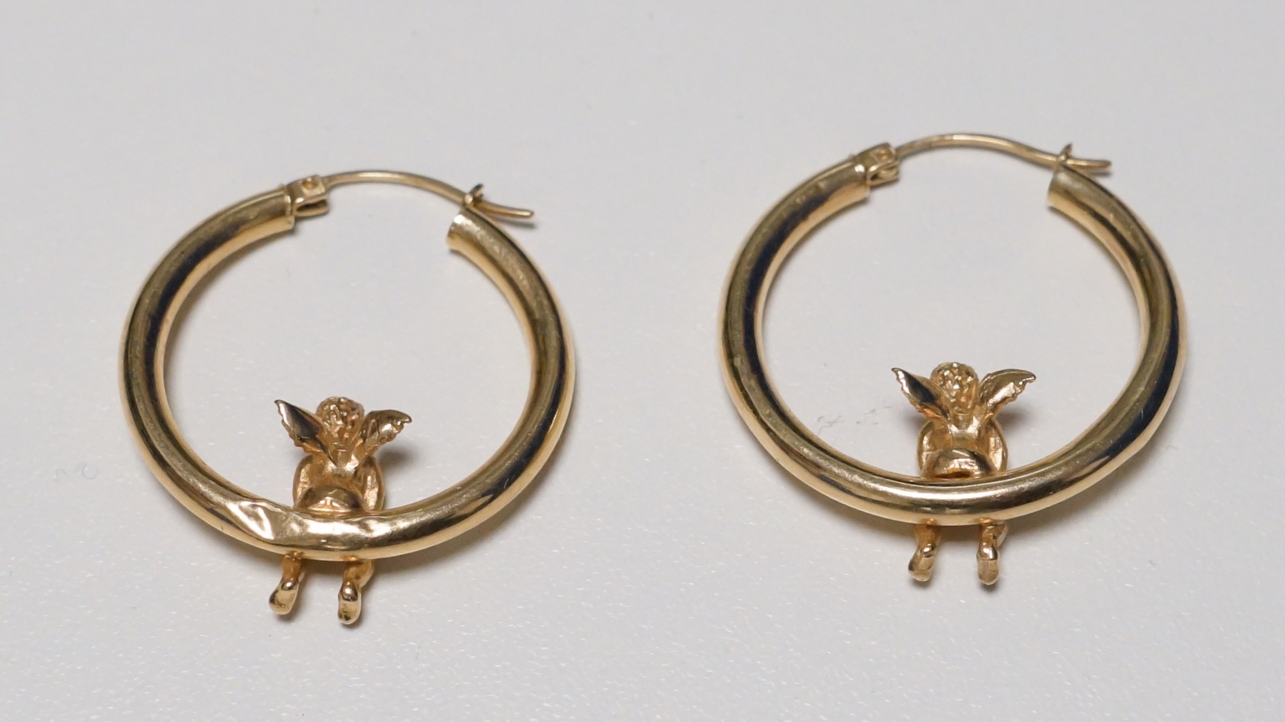14ct Gold Hoop Cherub Earings - 5.32g - Used