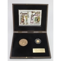France gold 50 Euros 2016 (8.45g .920 gold = 1/4 troy oz AGW) 'Reine Matilde' (Queen Matilda) wife of William the Conqueror, along with a 61mm bronze medal and an embroidered replica scene from the Bayeux Tapesty; all together in a set called 'Battle of Hastings Tapestry Edition' by The London Mint Office.