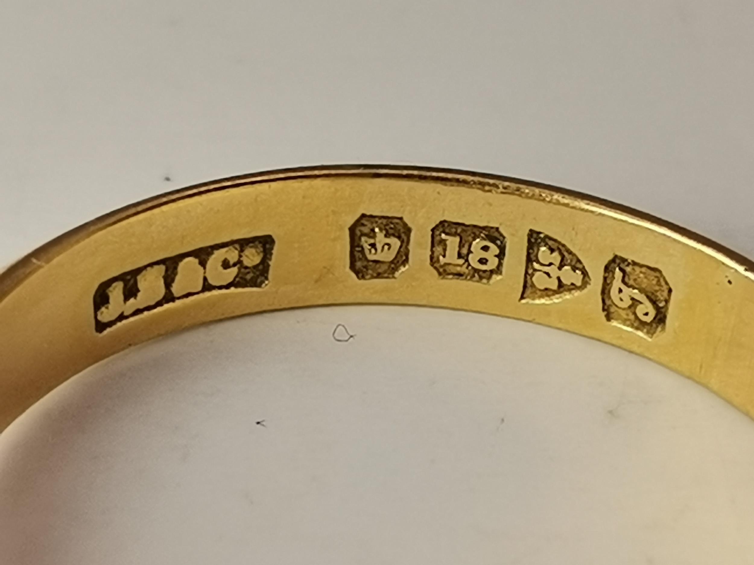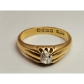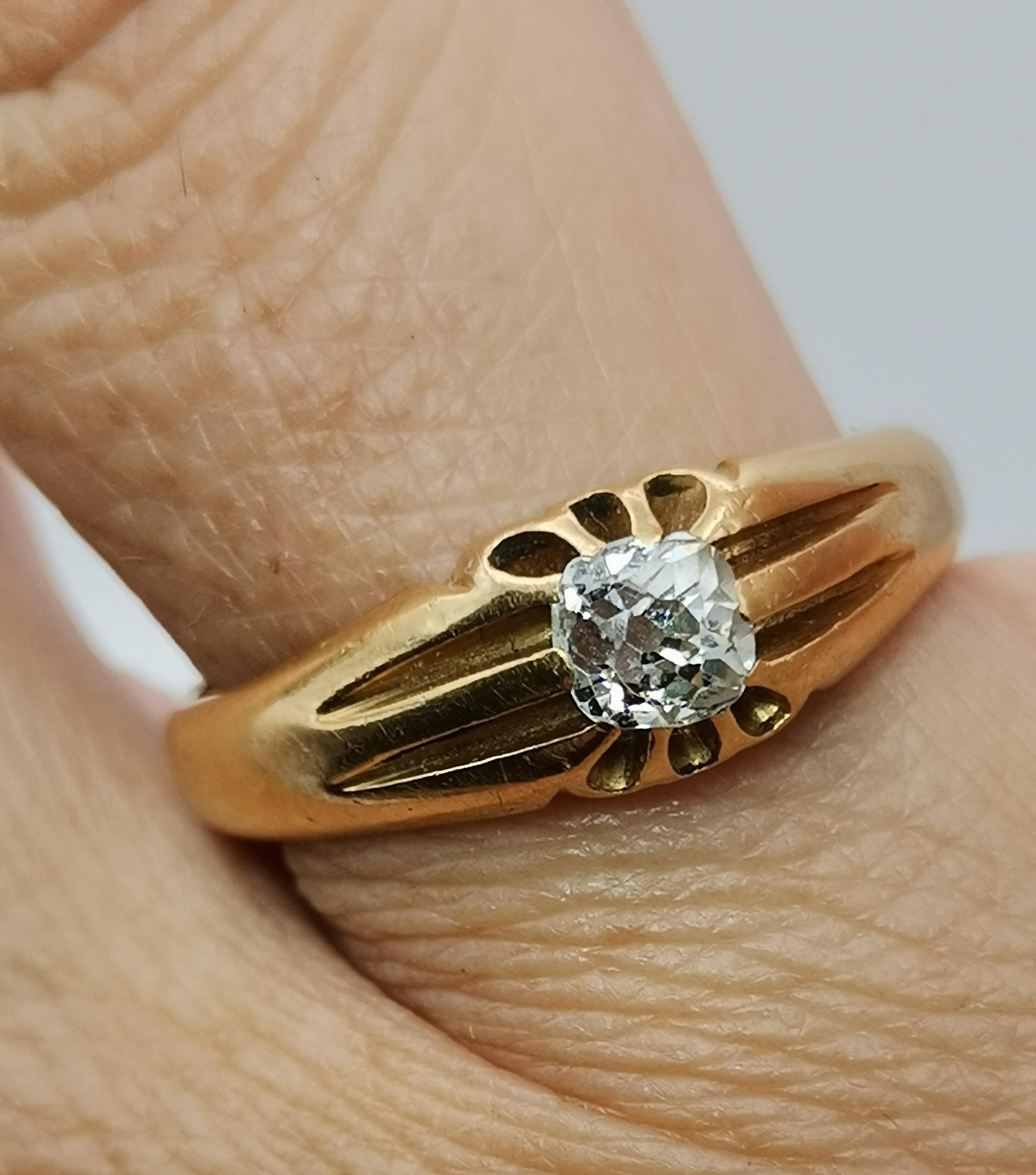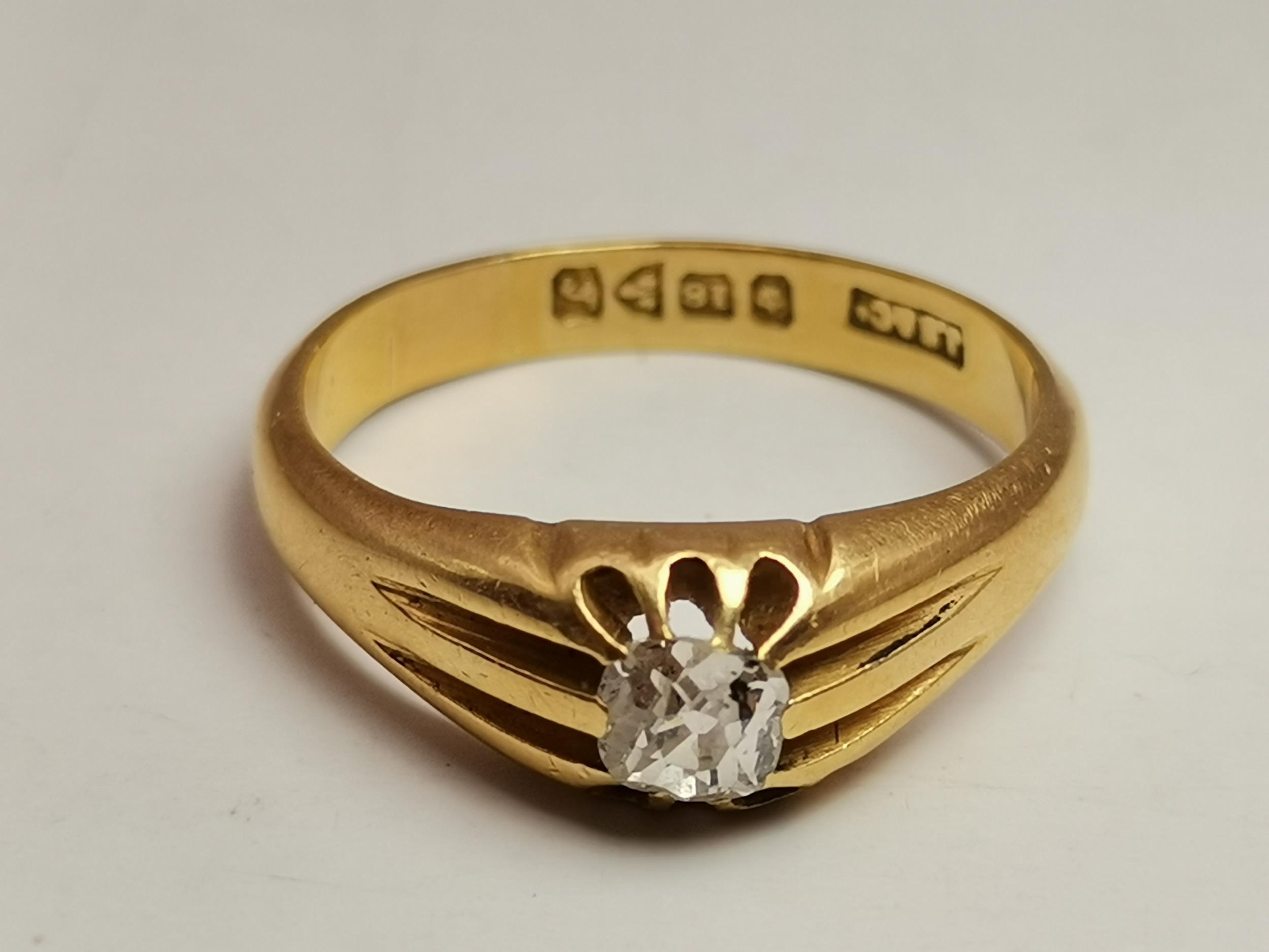 An 18 carat gold solitaire ring, the white stone claw-set to ridged and tapering shoulders, hallmarked 18. Ring size U, 6.8g