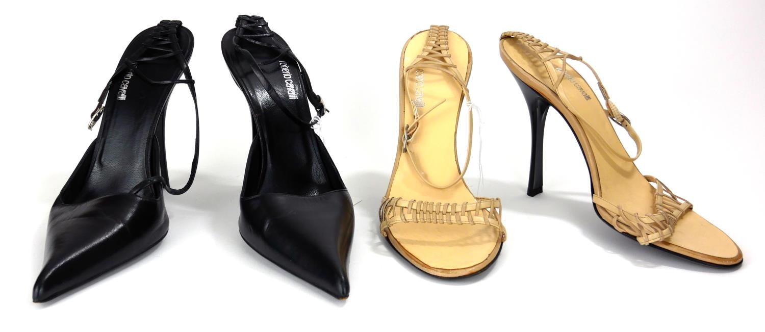 ROBERTO CAVALLI, TWO VINTAGE PAIRS OF LEATHER HIGH HEEL LADIES’ SHOES