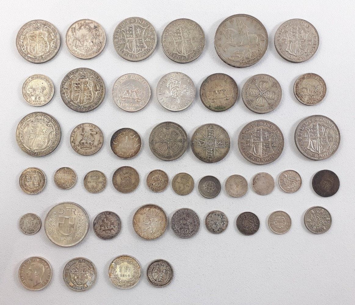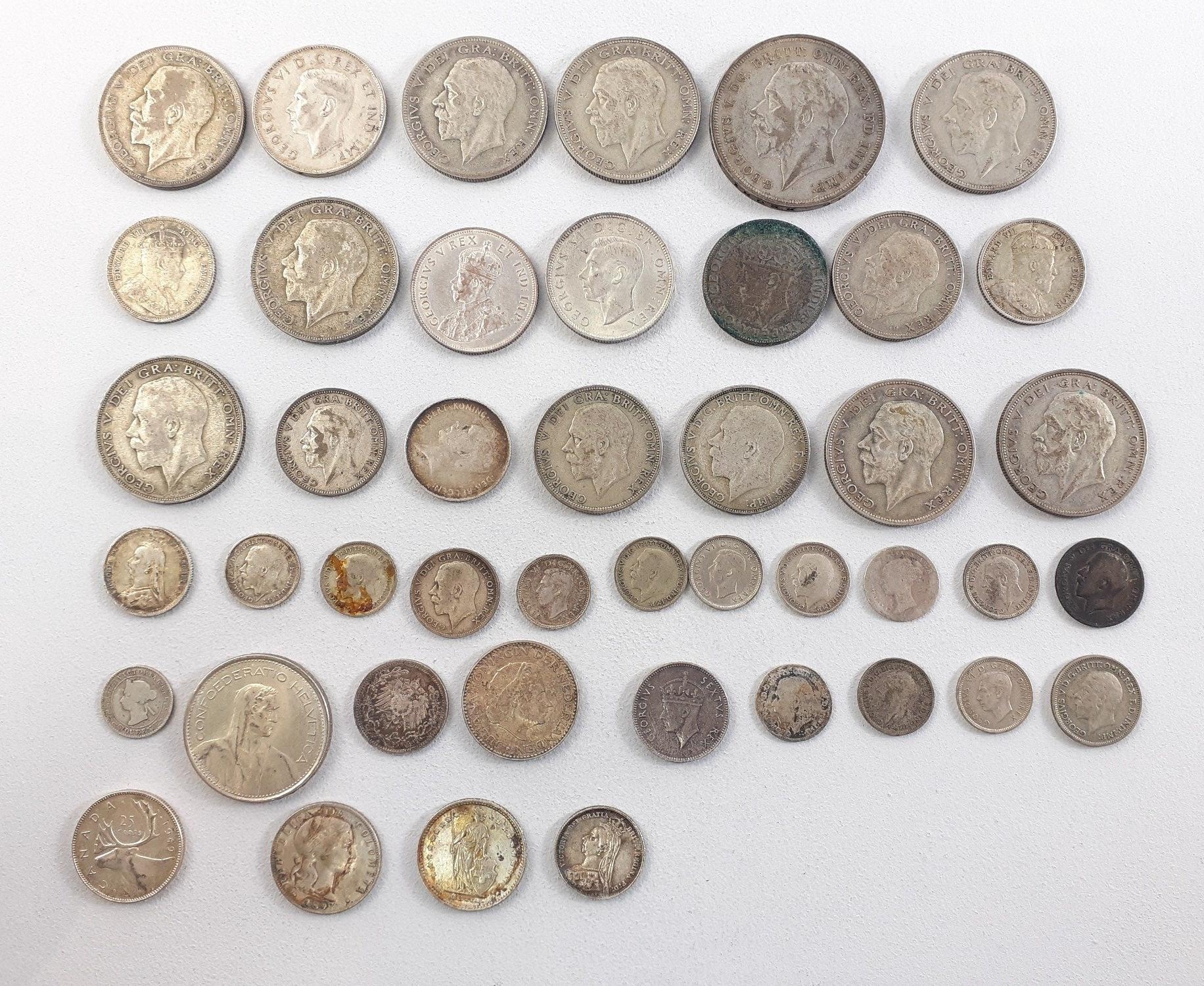 A collection of SILVER COINAGE to include mainly UK 0.500, a 1935 crown, half crowns etc with some European higher grade coins. Weight 305g approx.