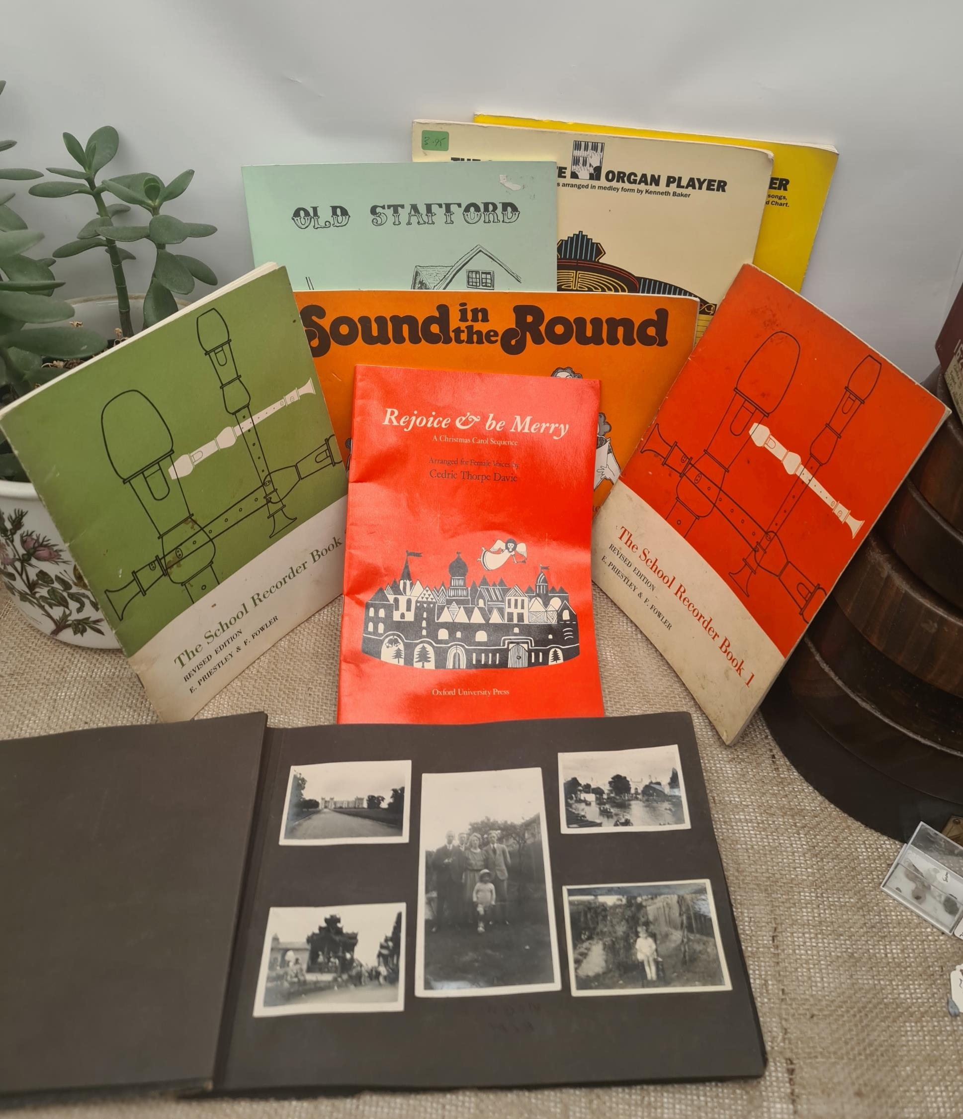 Vintage Parcel of Music Teaching Books For Organ, Recorder and Percussion. Plus Stafford Local History Source Book and 1920's Photograph Album. Shipping is available. Please ask for a quote before bidding. Where possible we combine shipping costs. Remember, if you are the highest bidder above reserve on this Lot you have bought the item and are legally responsible for the item. Viewing is recommended in either person or via video link. Contact us to arrange.