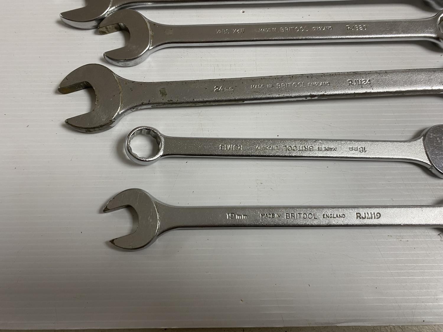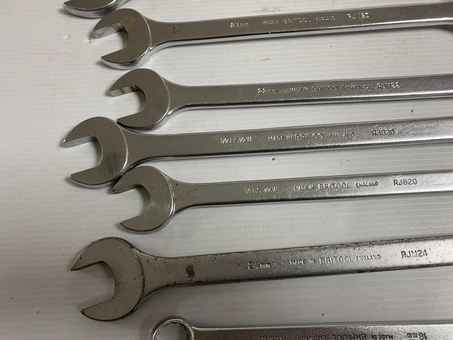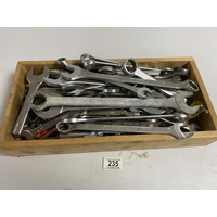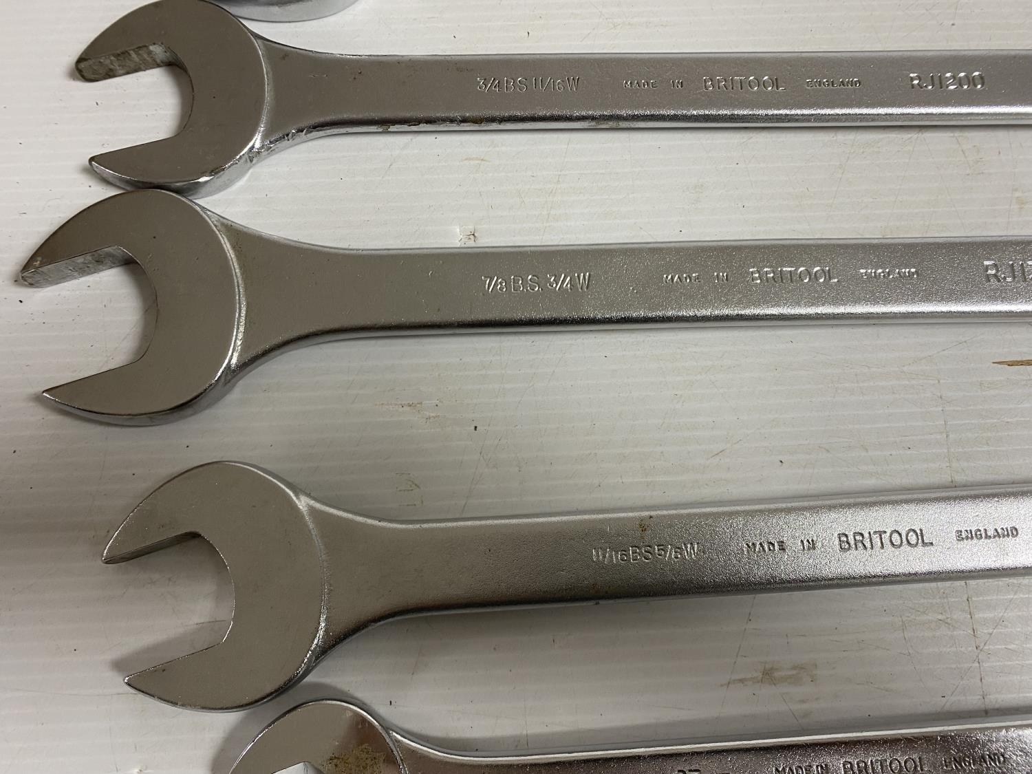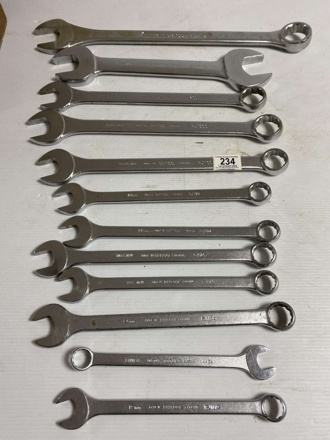 12 BRITOOL IMPERIAL & METRIC SPANNERS IN A WOODEN BOX