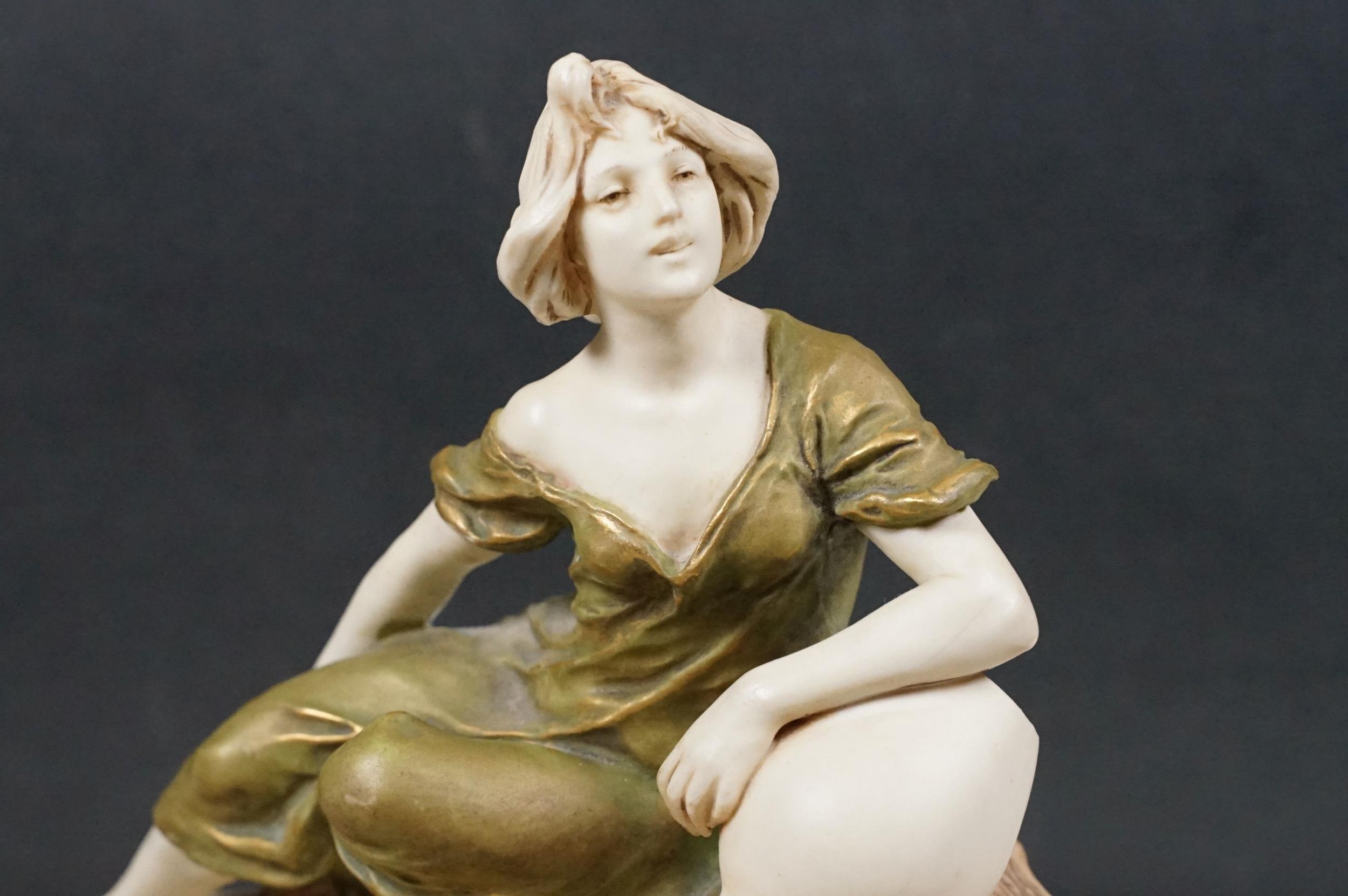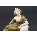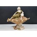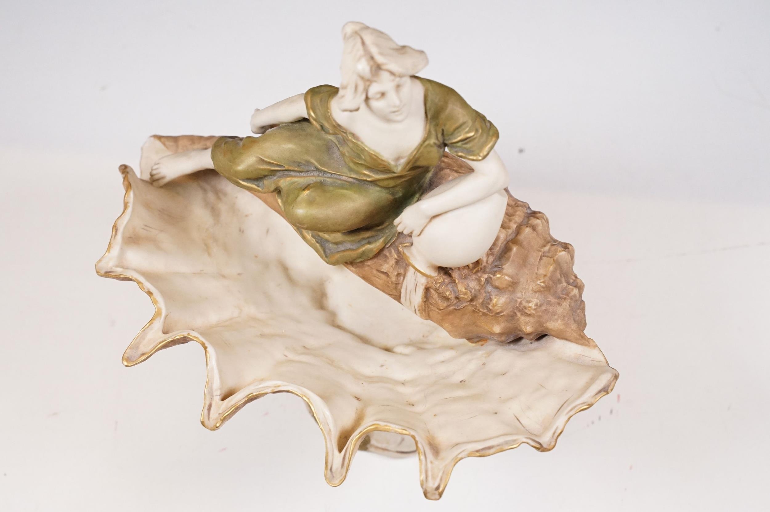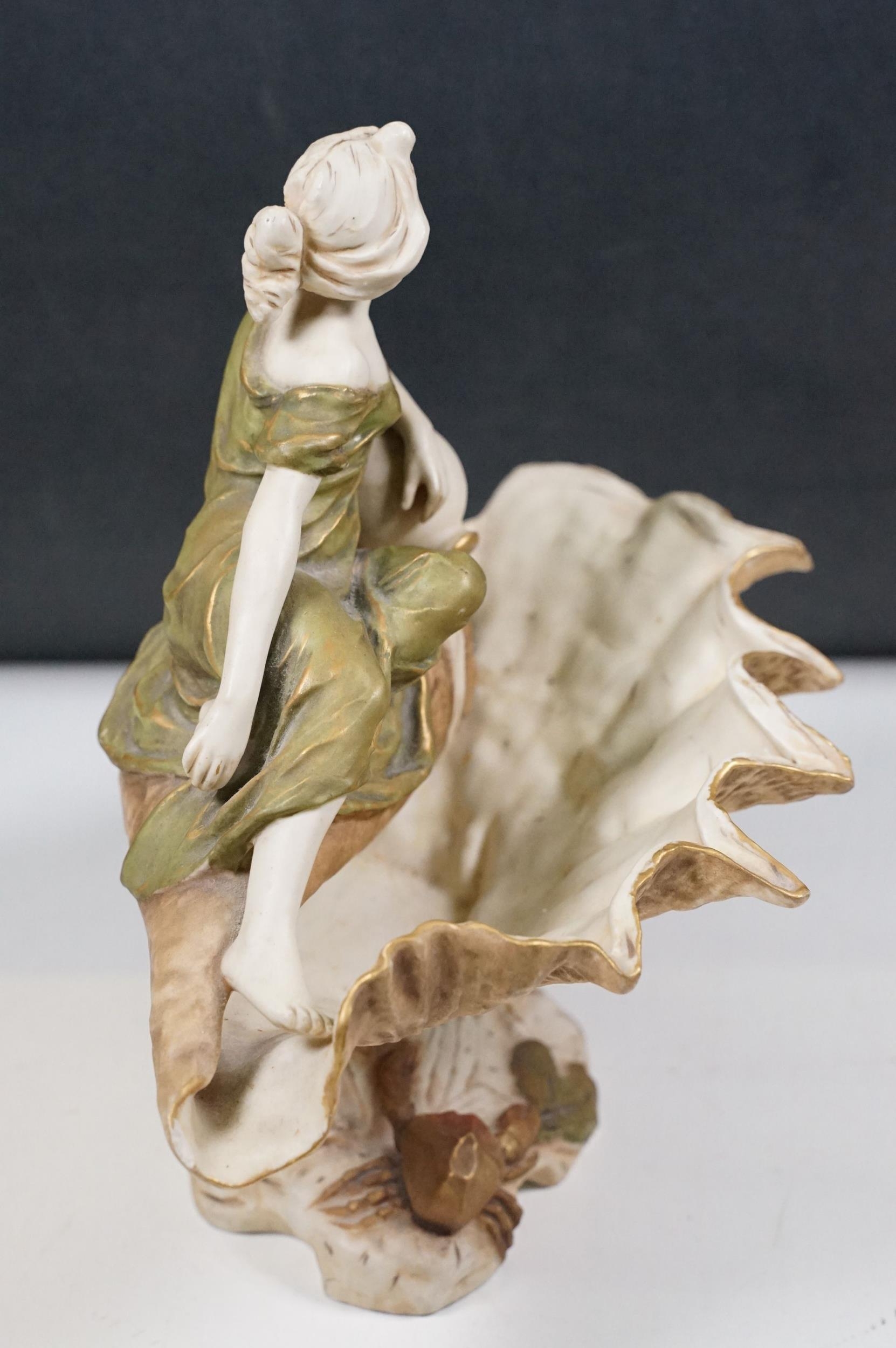Early 20th century Art Nouveau Royal Dux Bohemia porcelain lady in conch shell figurine on raised base, 26cm