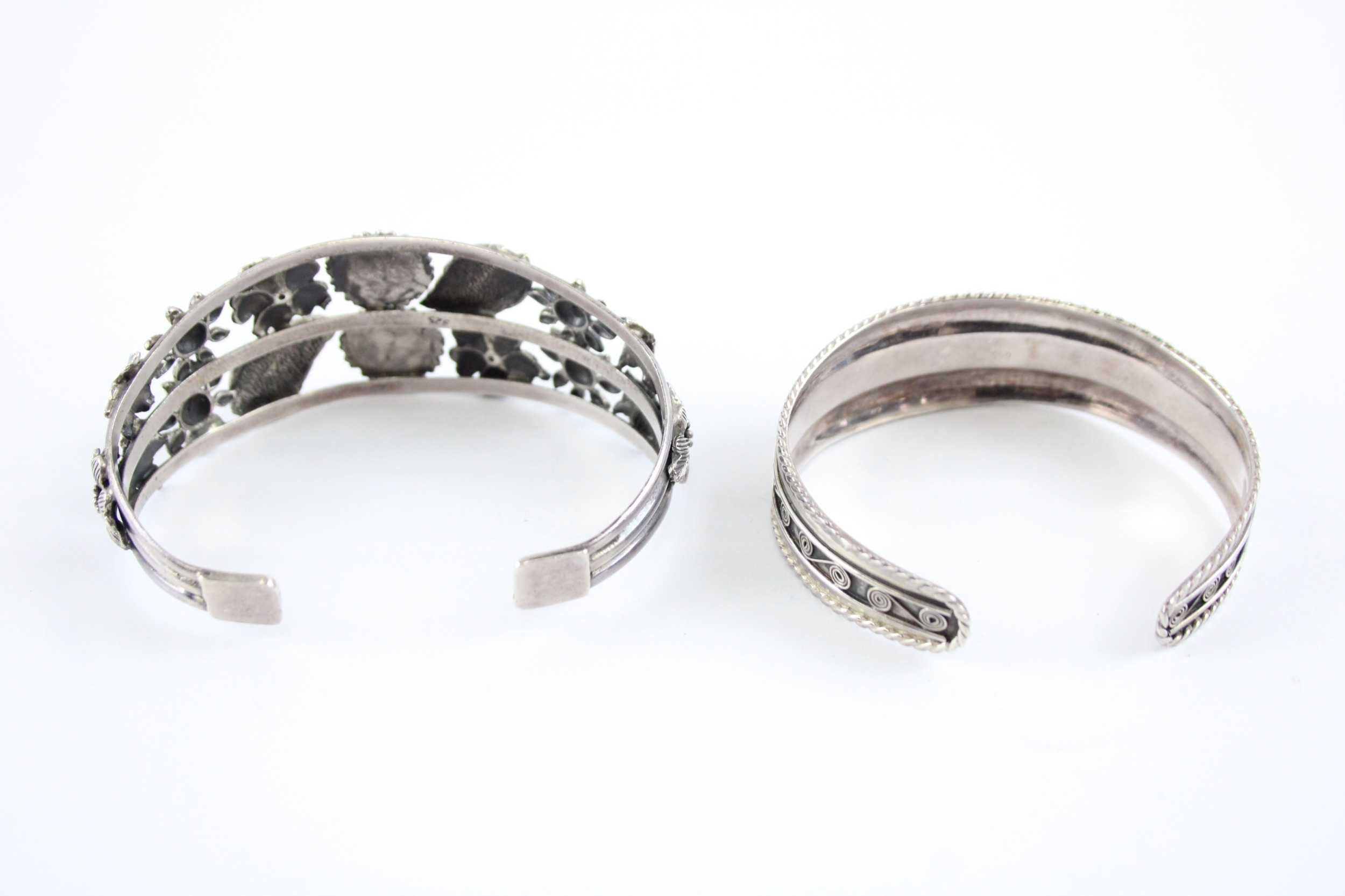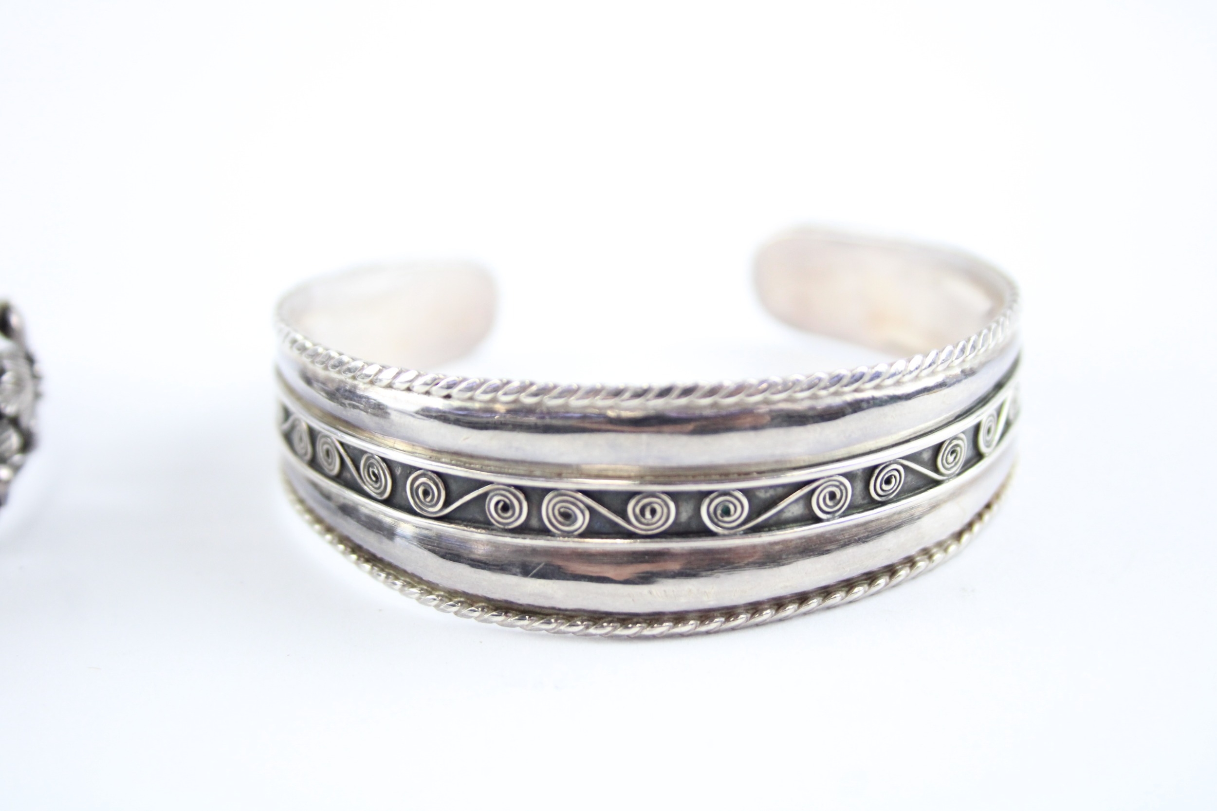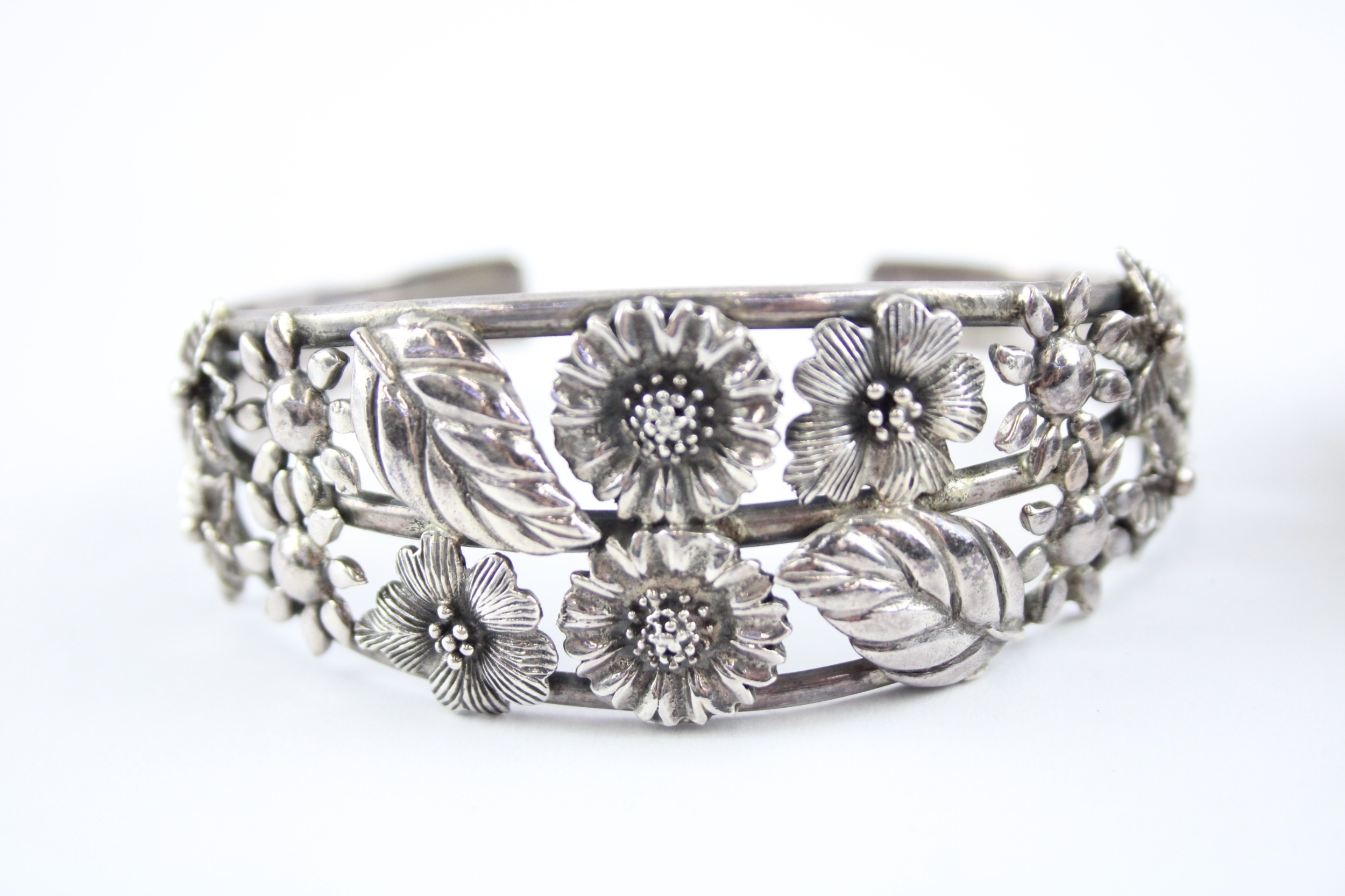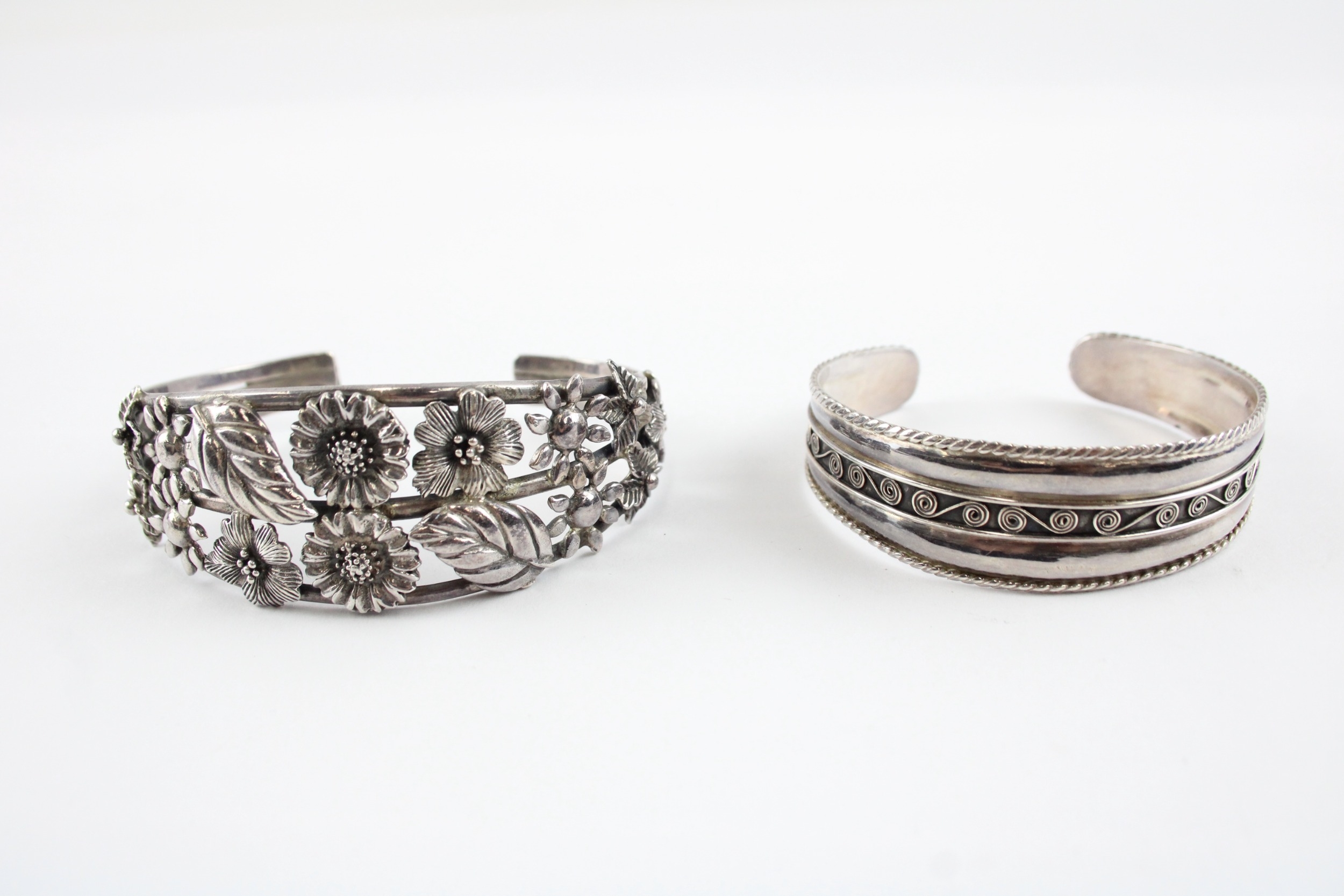 Collection of Sterling Silver Bangles, inc. Floral, Torque x 2 (53g)