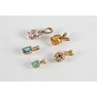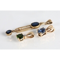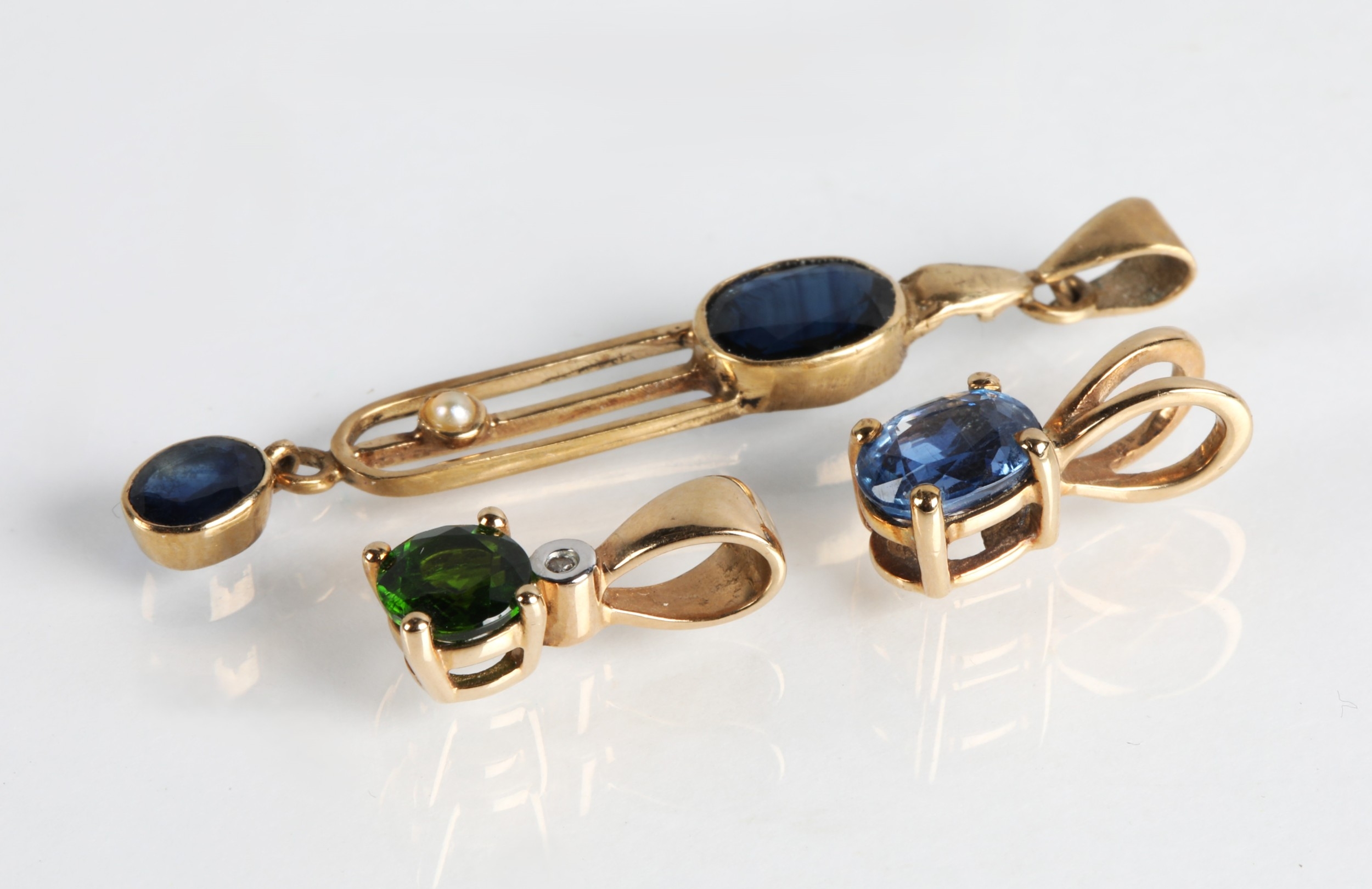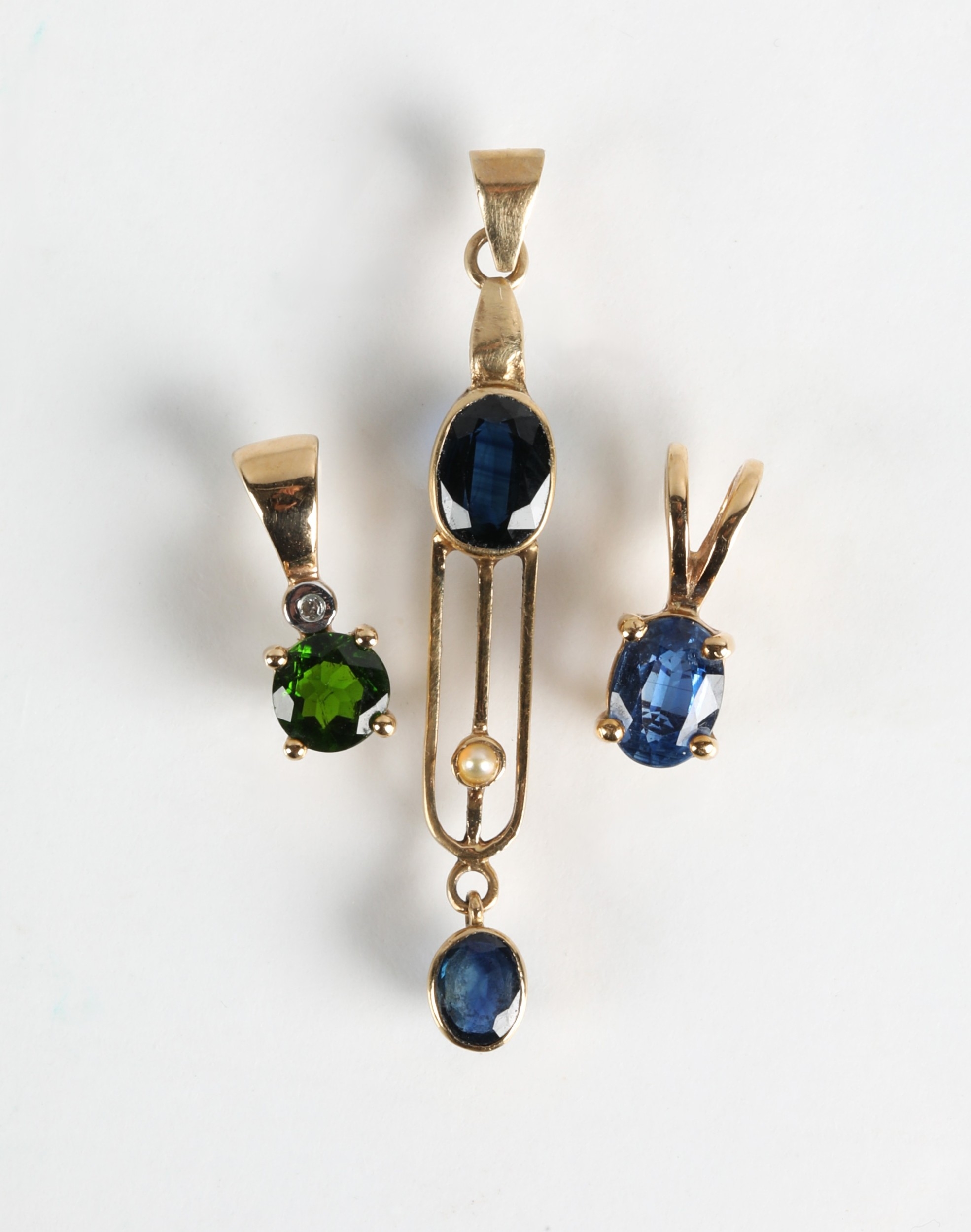 Two 10K gold gem set pendants with another yellow metal (3) gross weight 3.4g