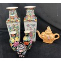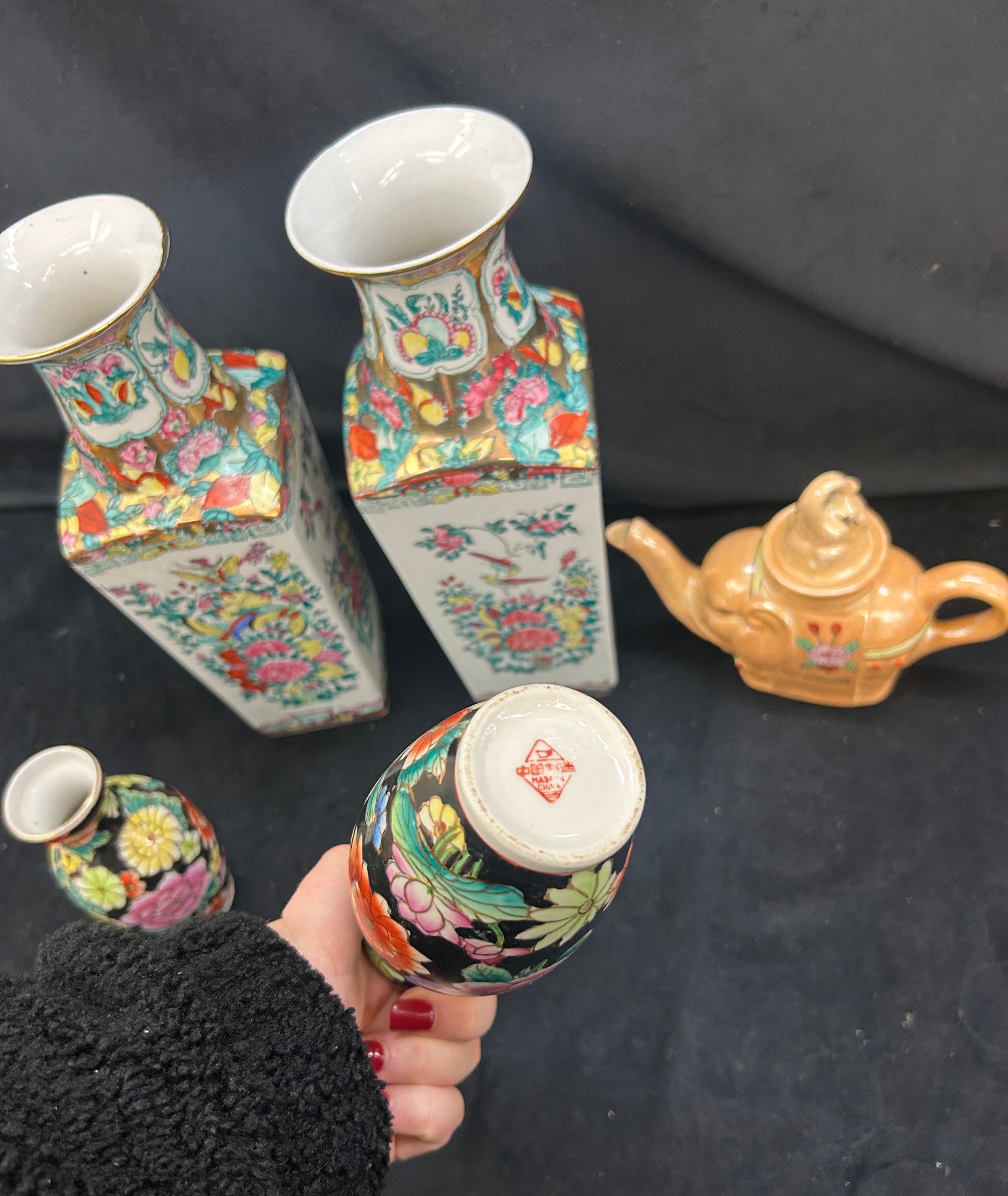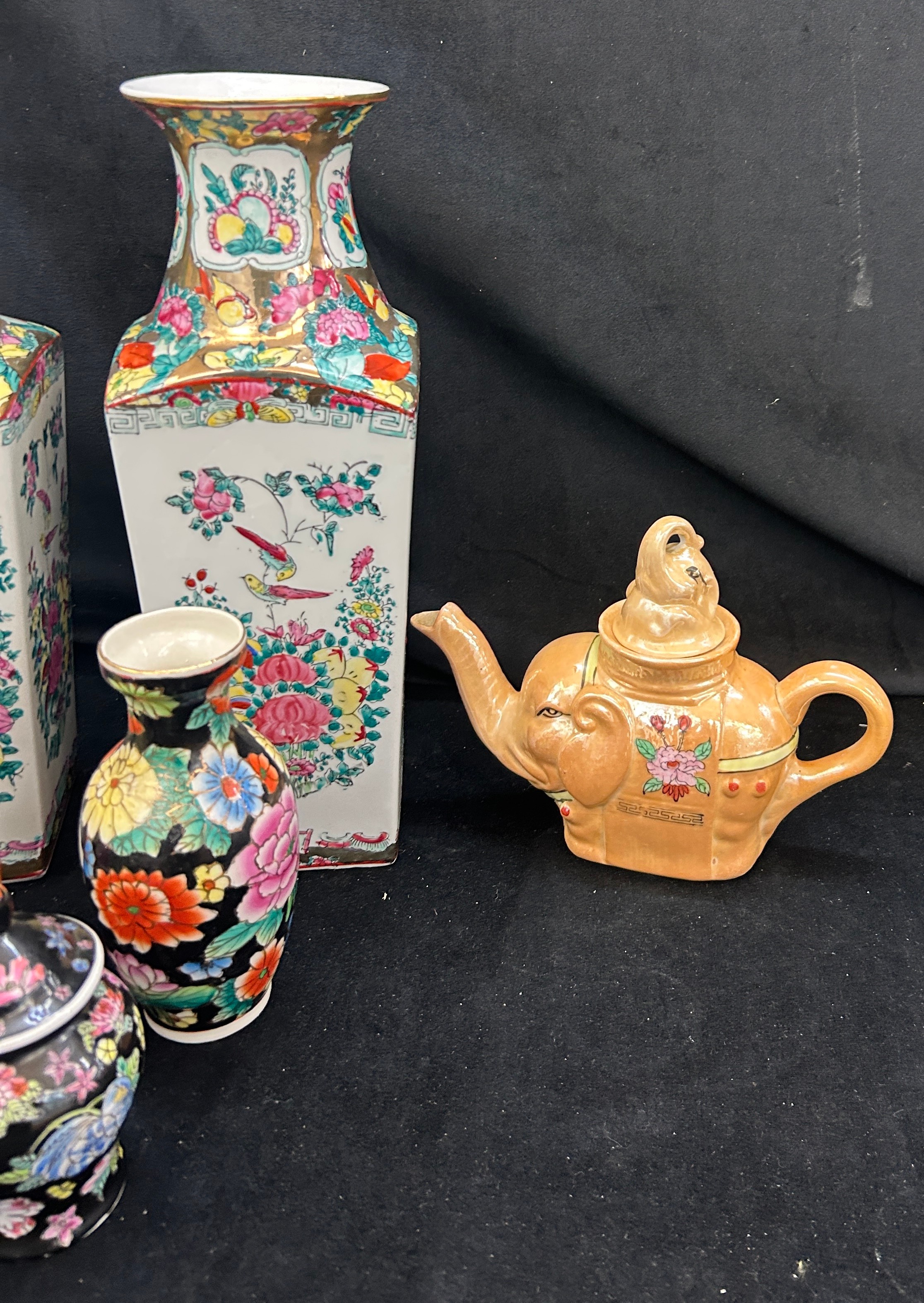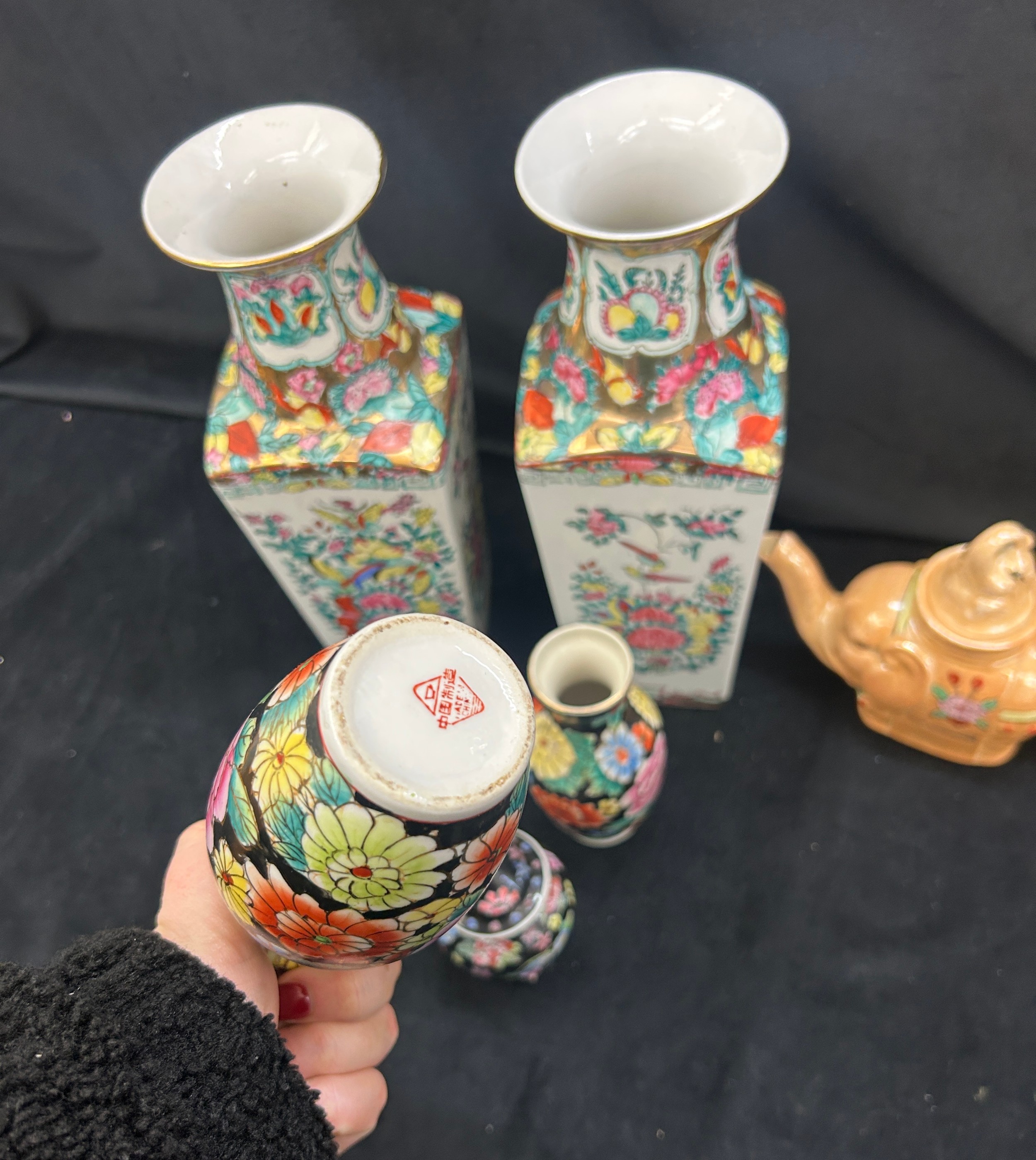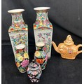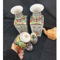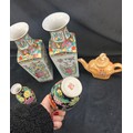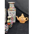 Selection of oriental porcelain items to include vases, tea pot, etc