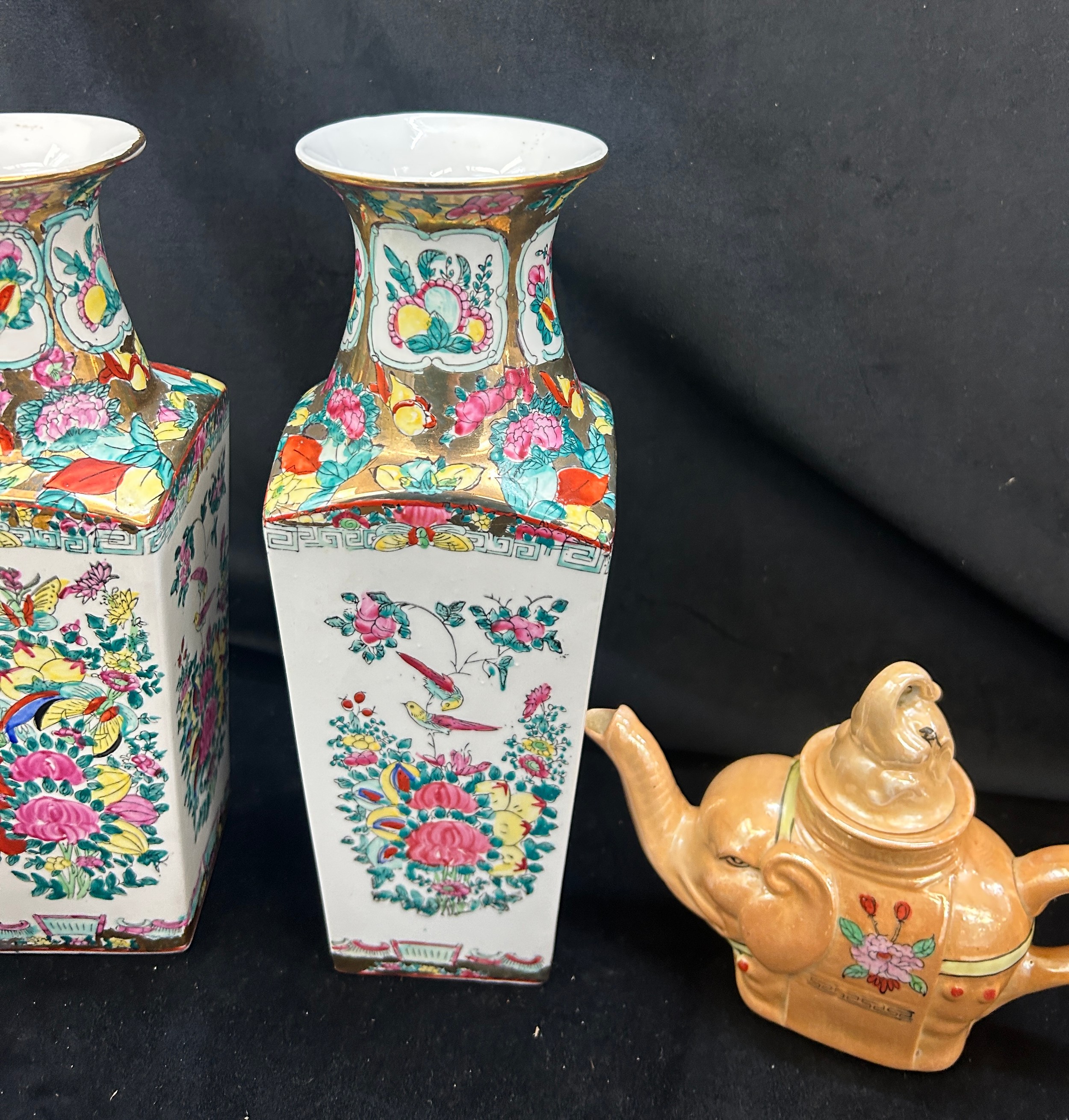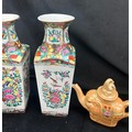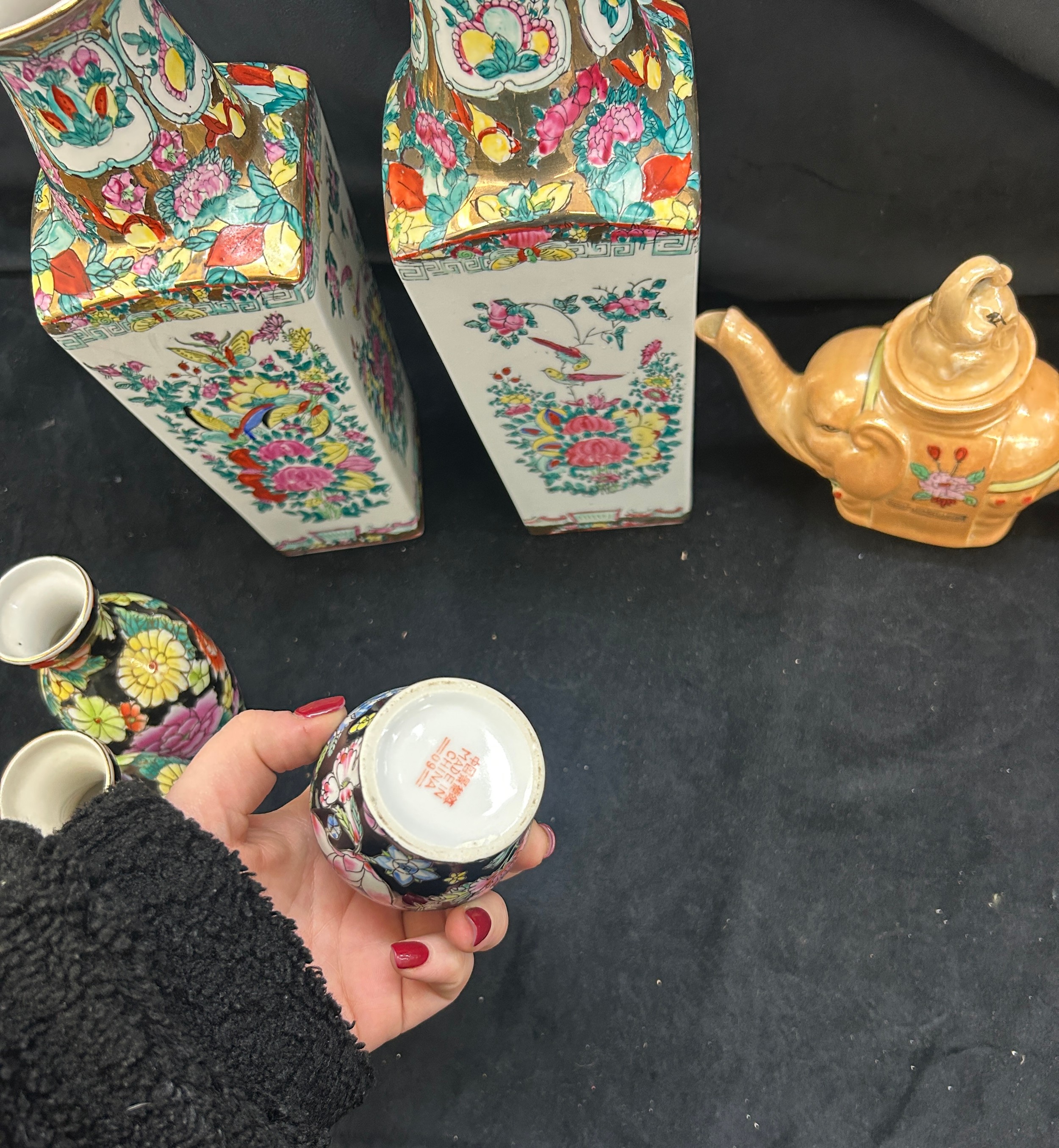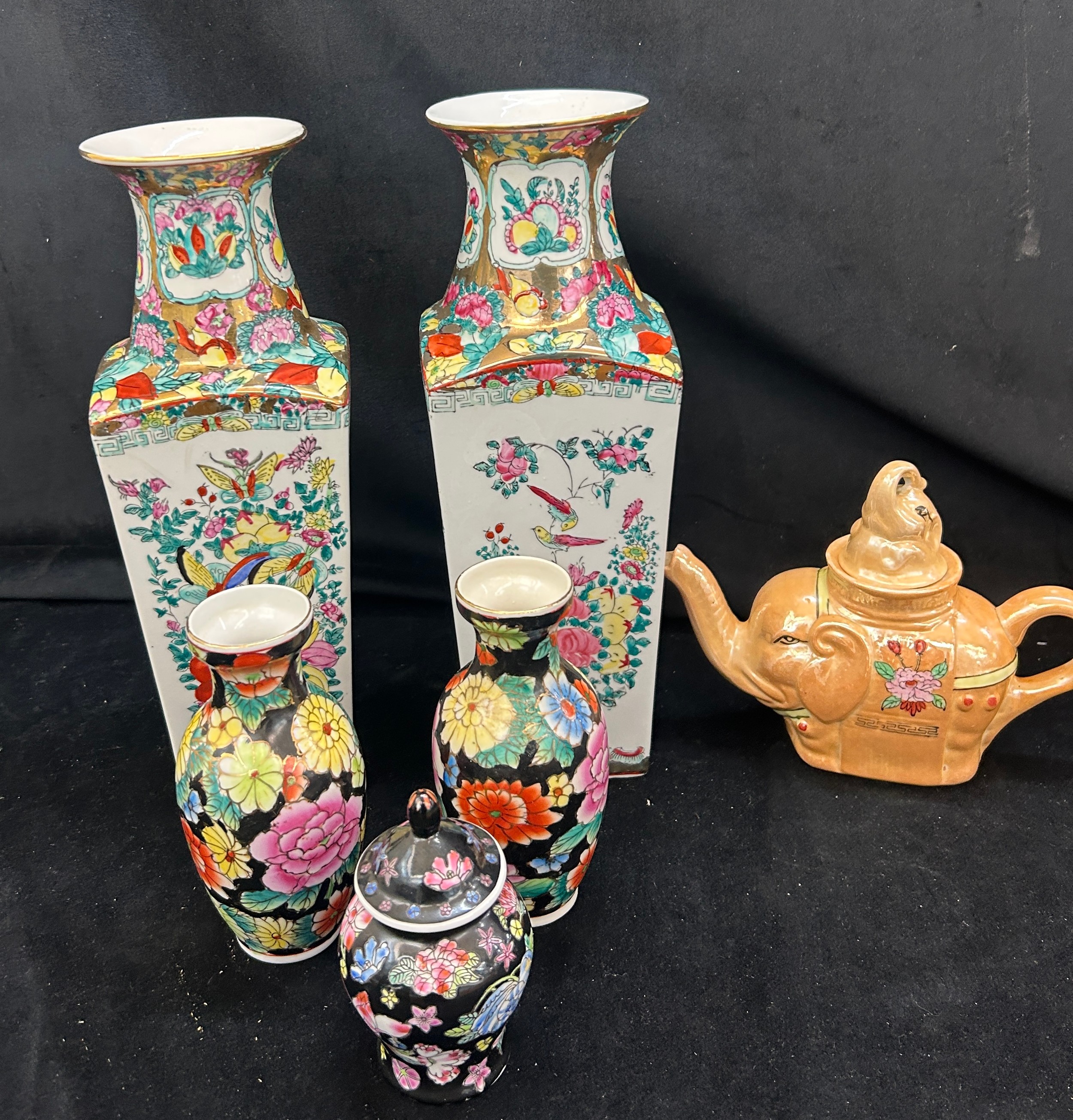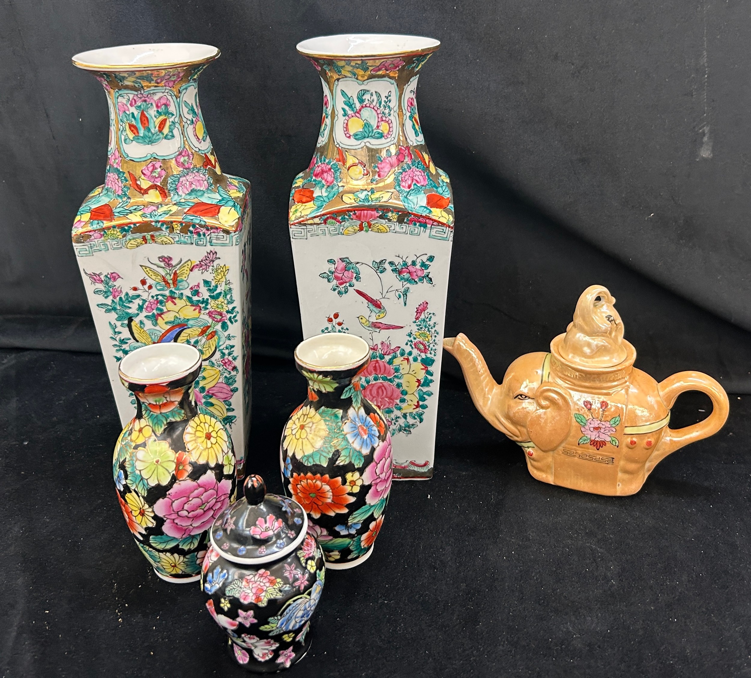 Selection of oriental porcelain items to include vases, tea pot, etc