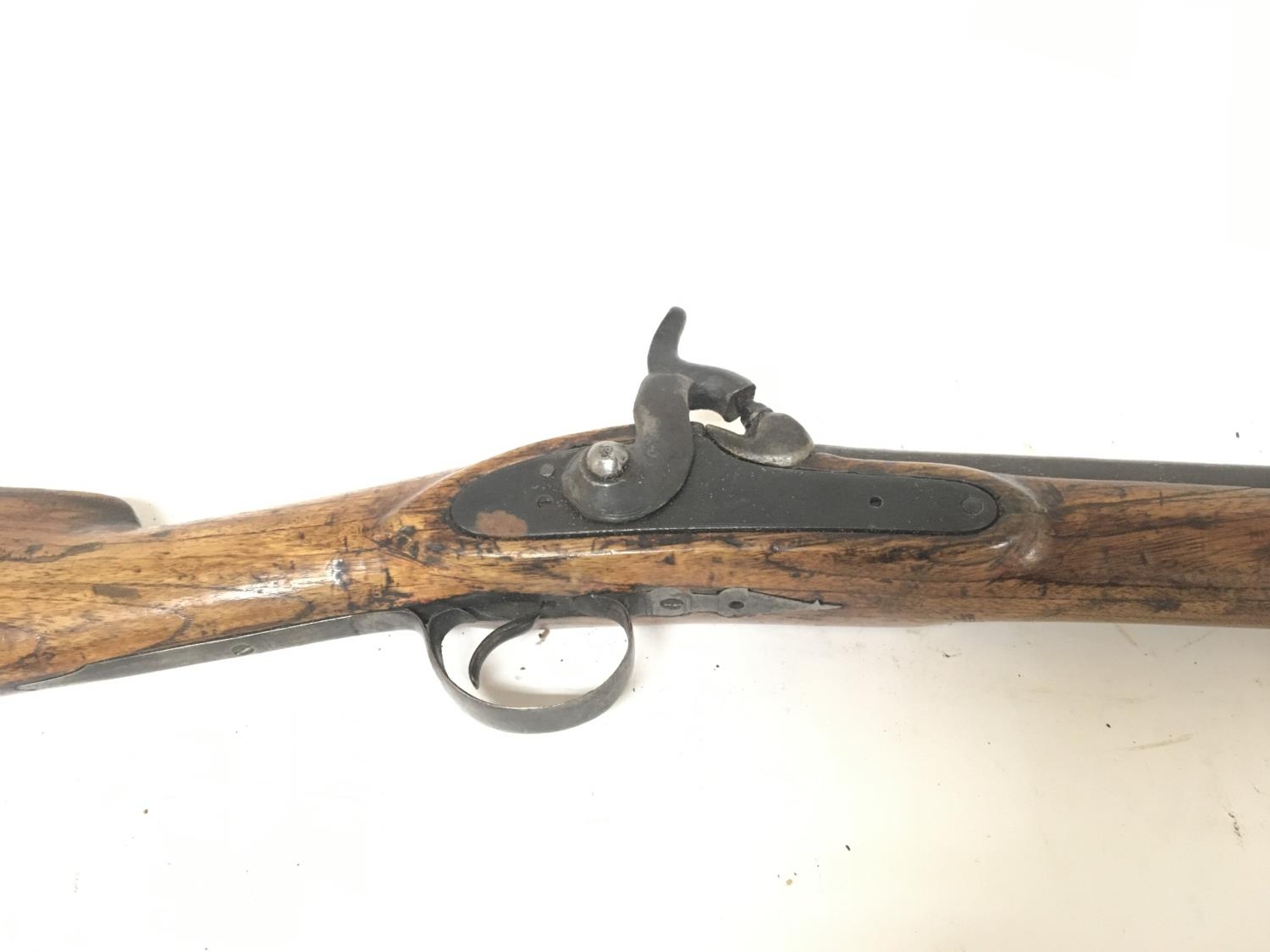 A ten bore percussion musket rifle with steel fittings short barrel stock possible re-polished. Length 110cm.