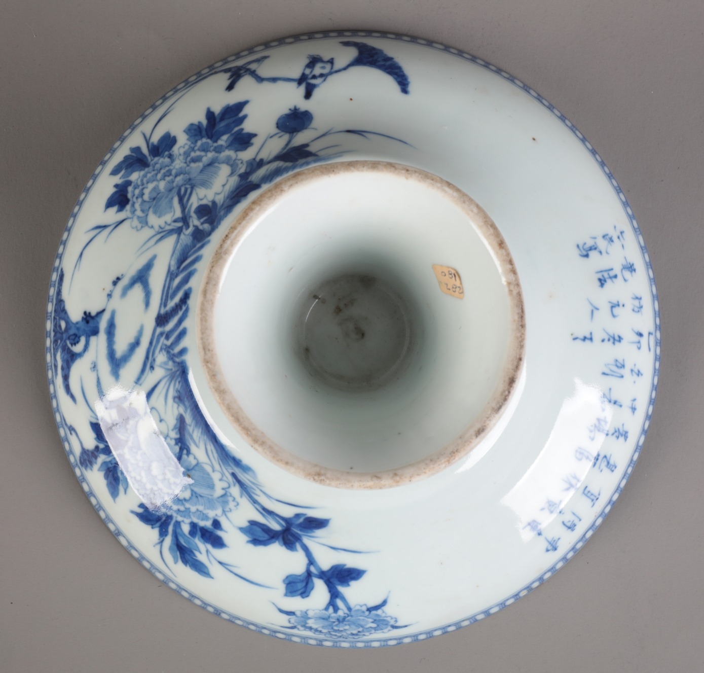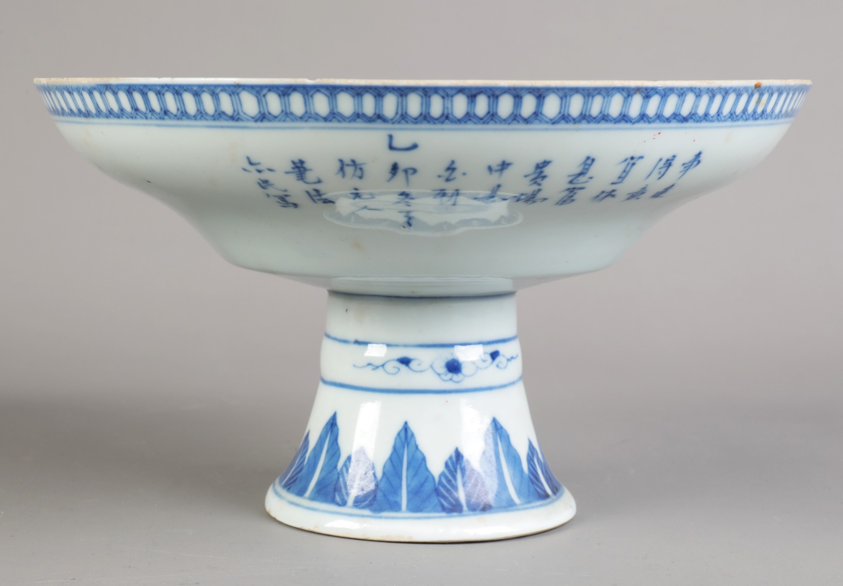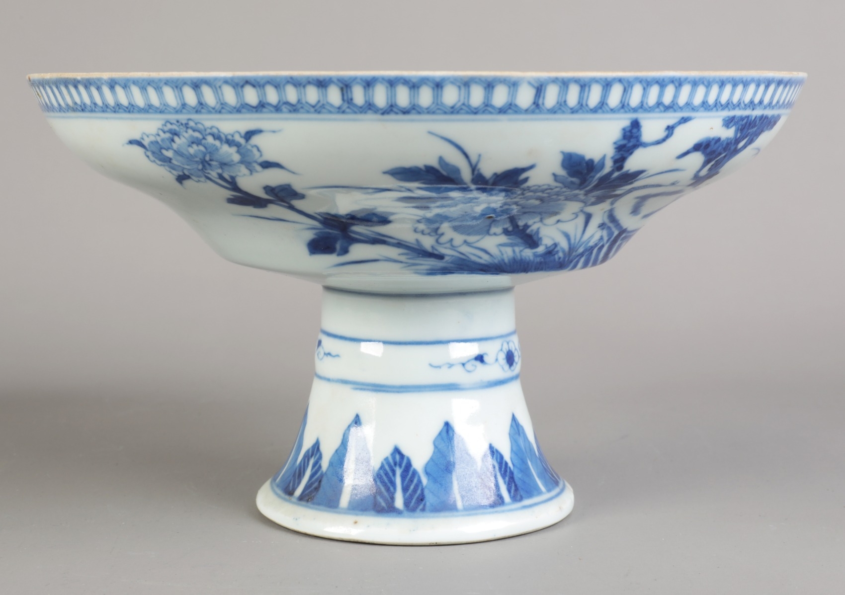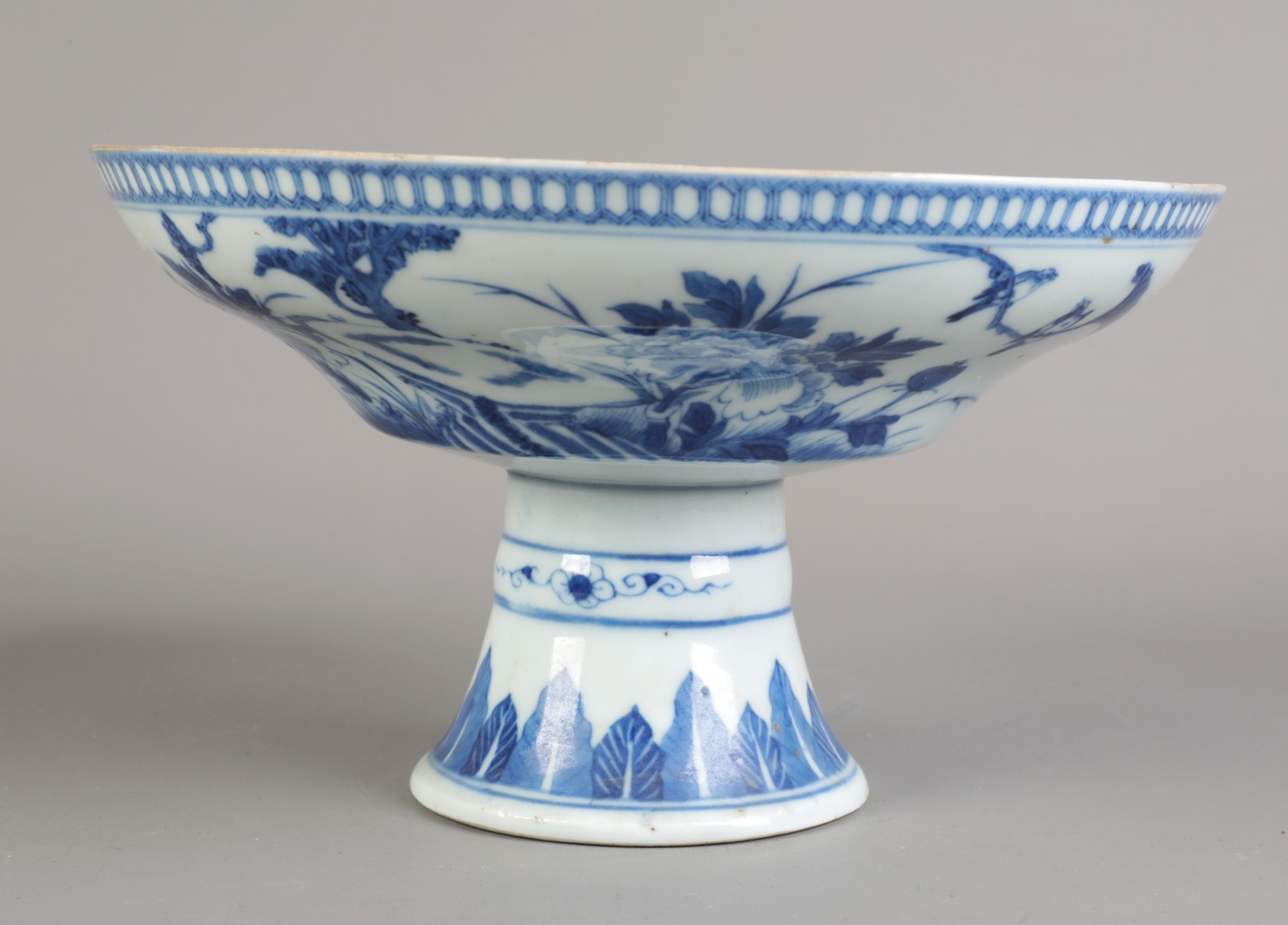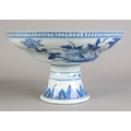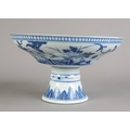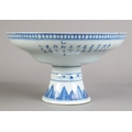 A CHINESE PORCELAIN BLUE AND WHITE STEM BOWL