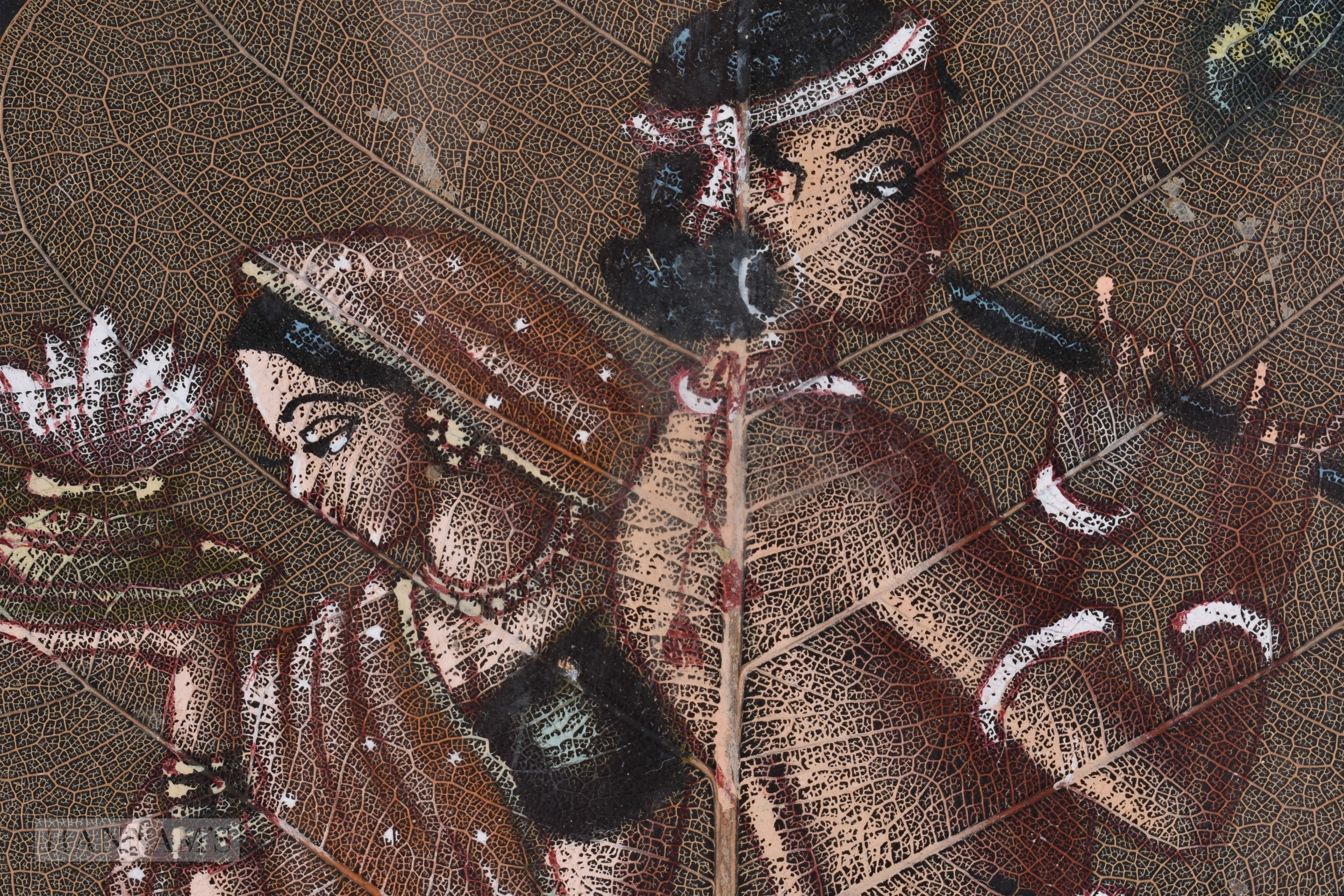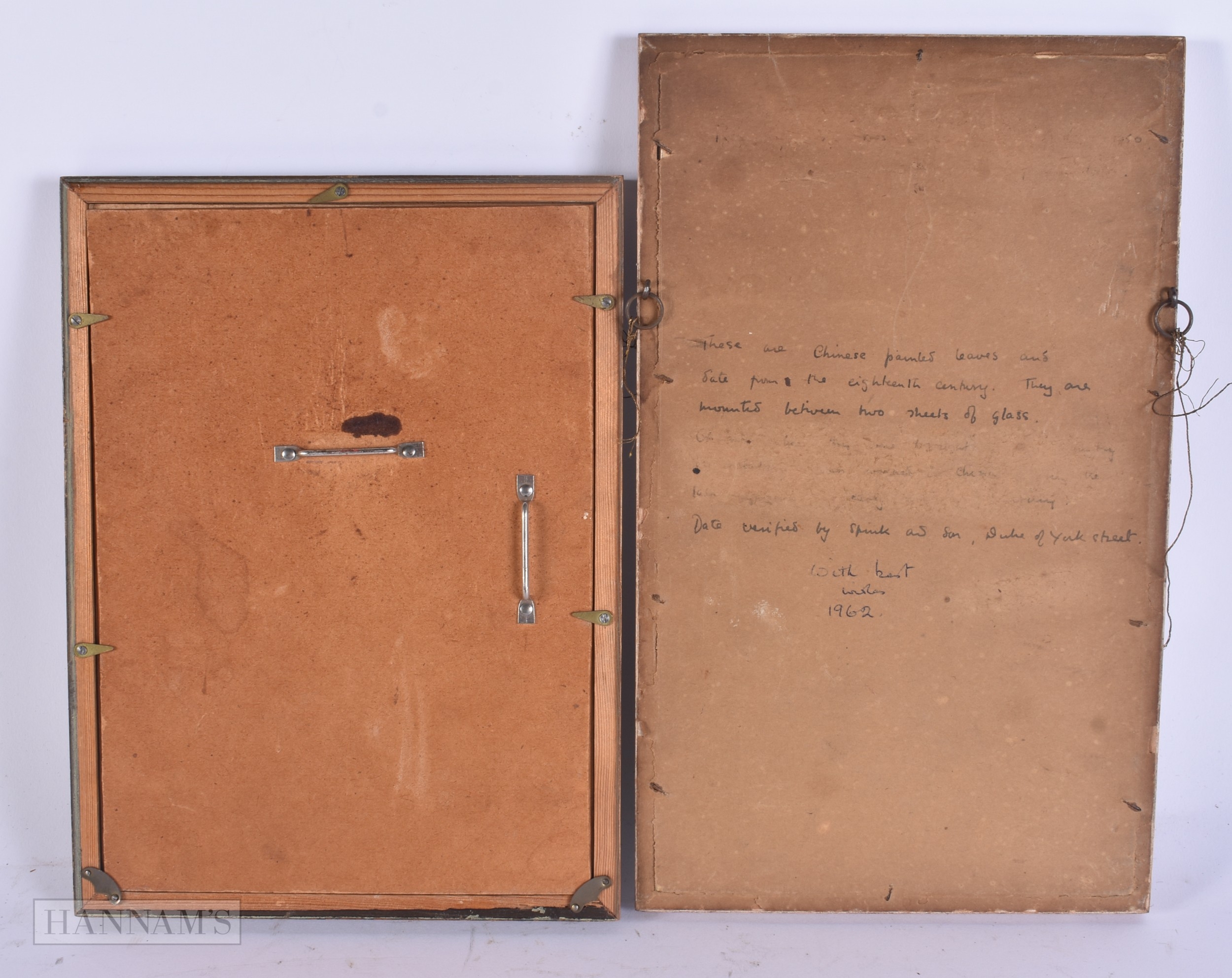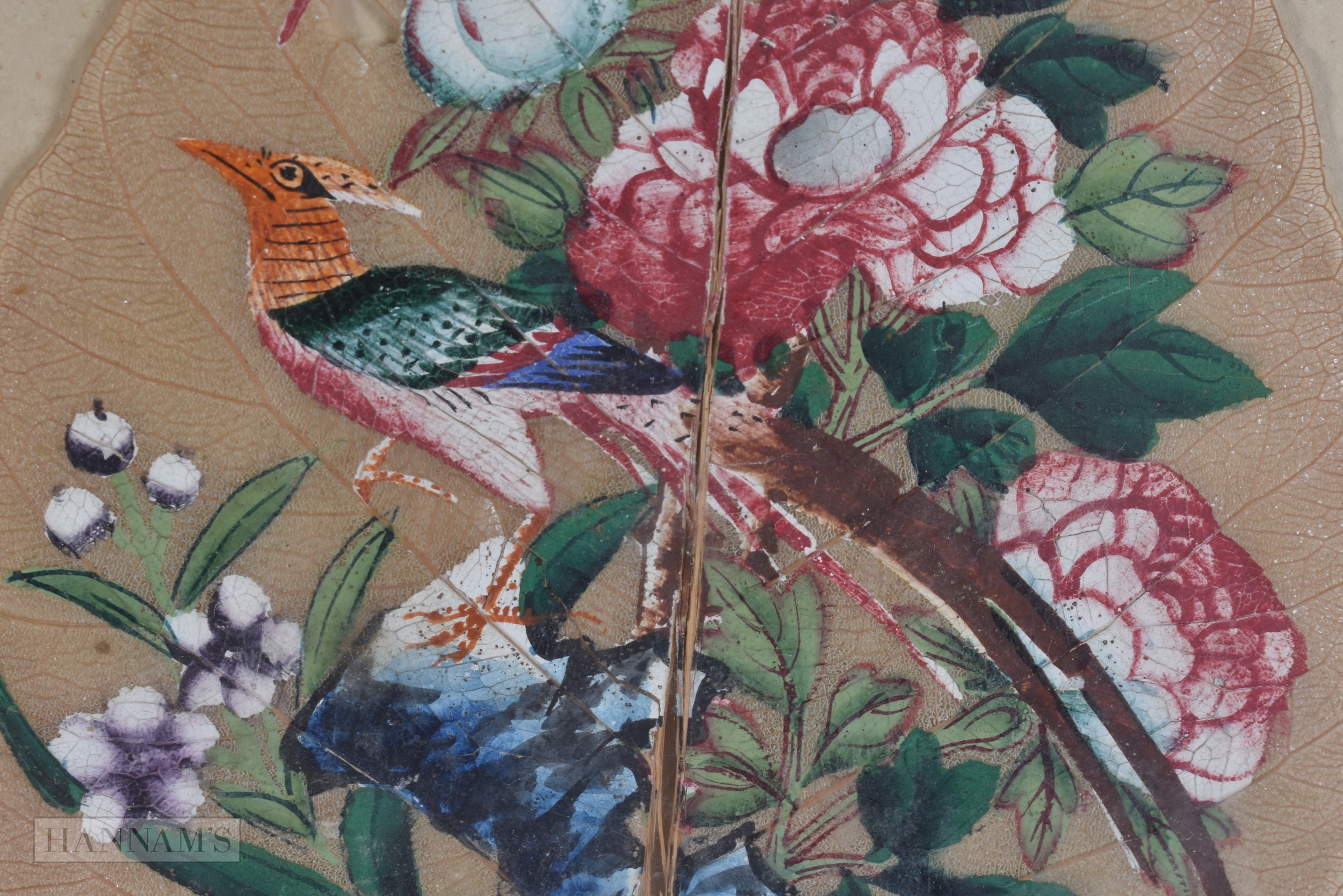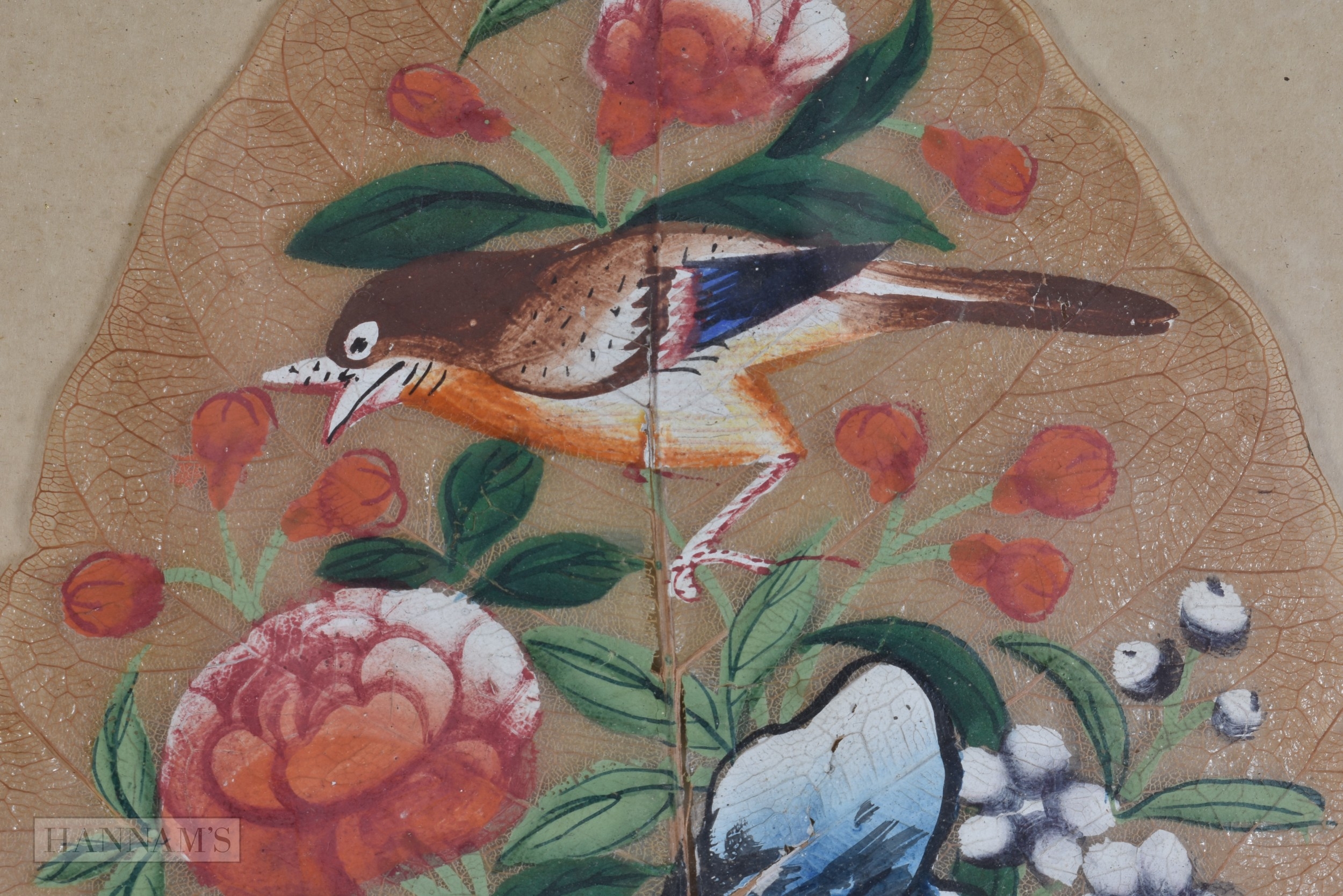 TWO INDIAN PAINTED LEAF PAINTINGS. Largest 28cm x 18cm. (2)