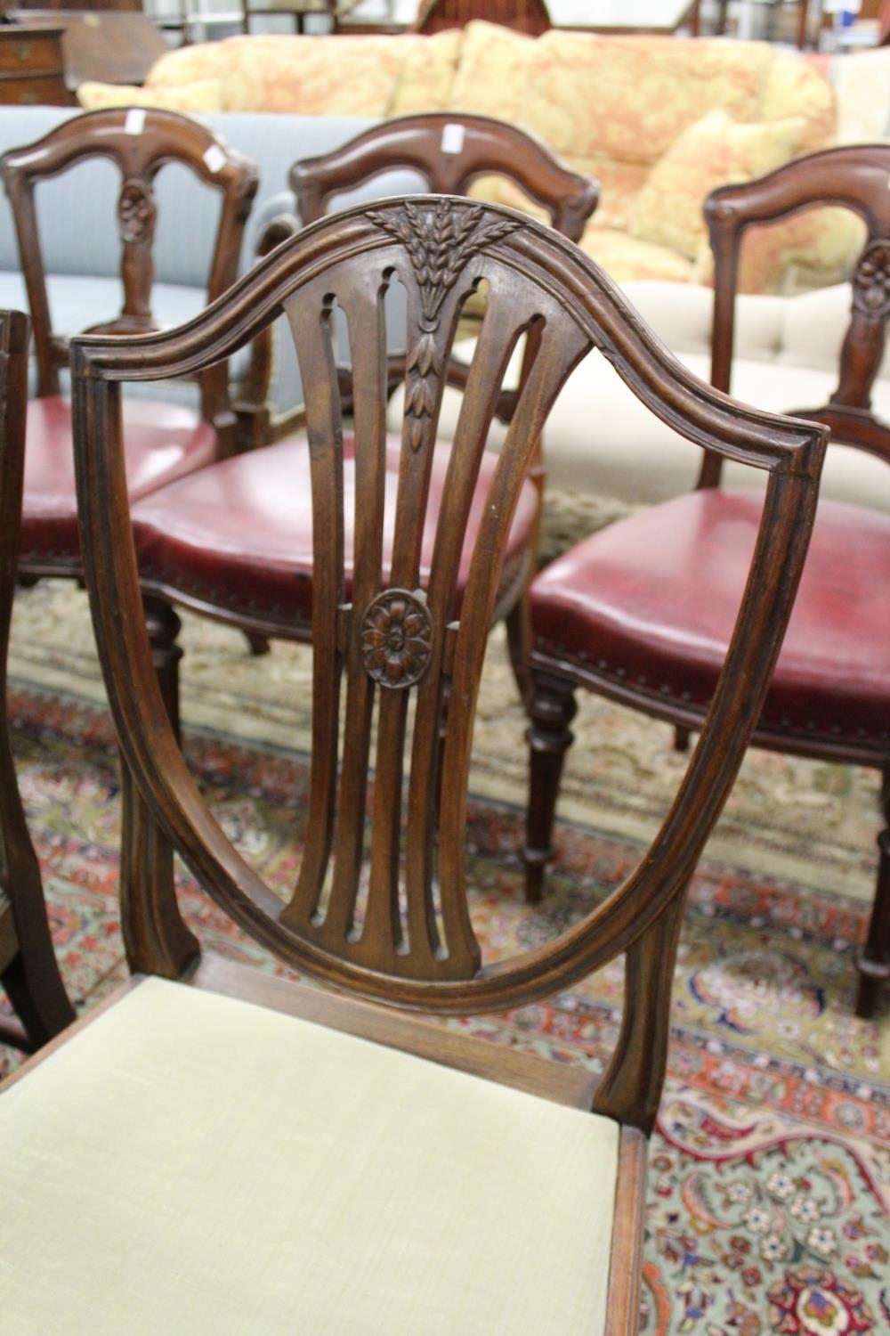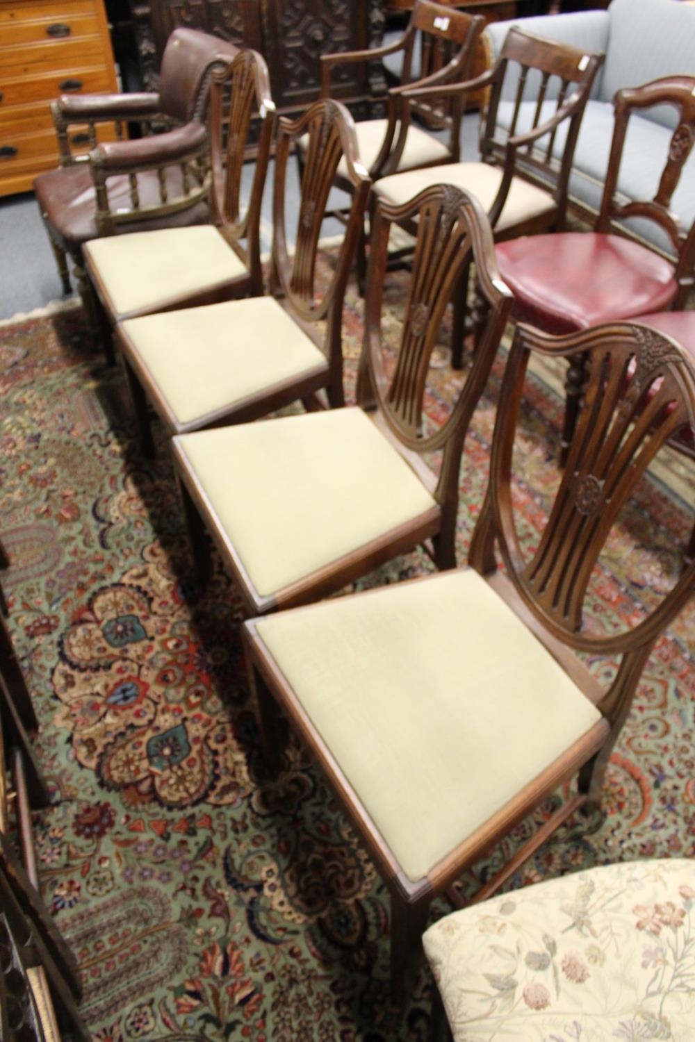 A set of four mahogany shield back dining chairs.
