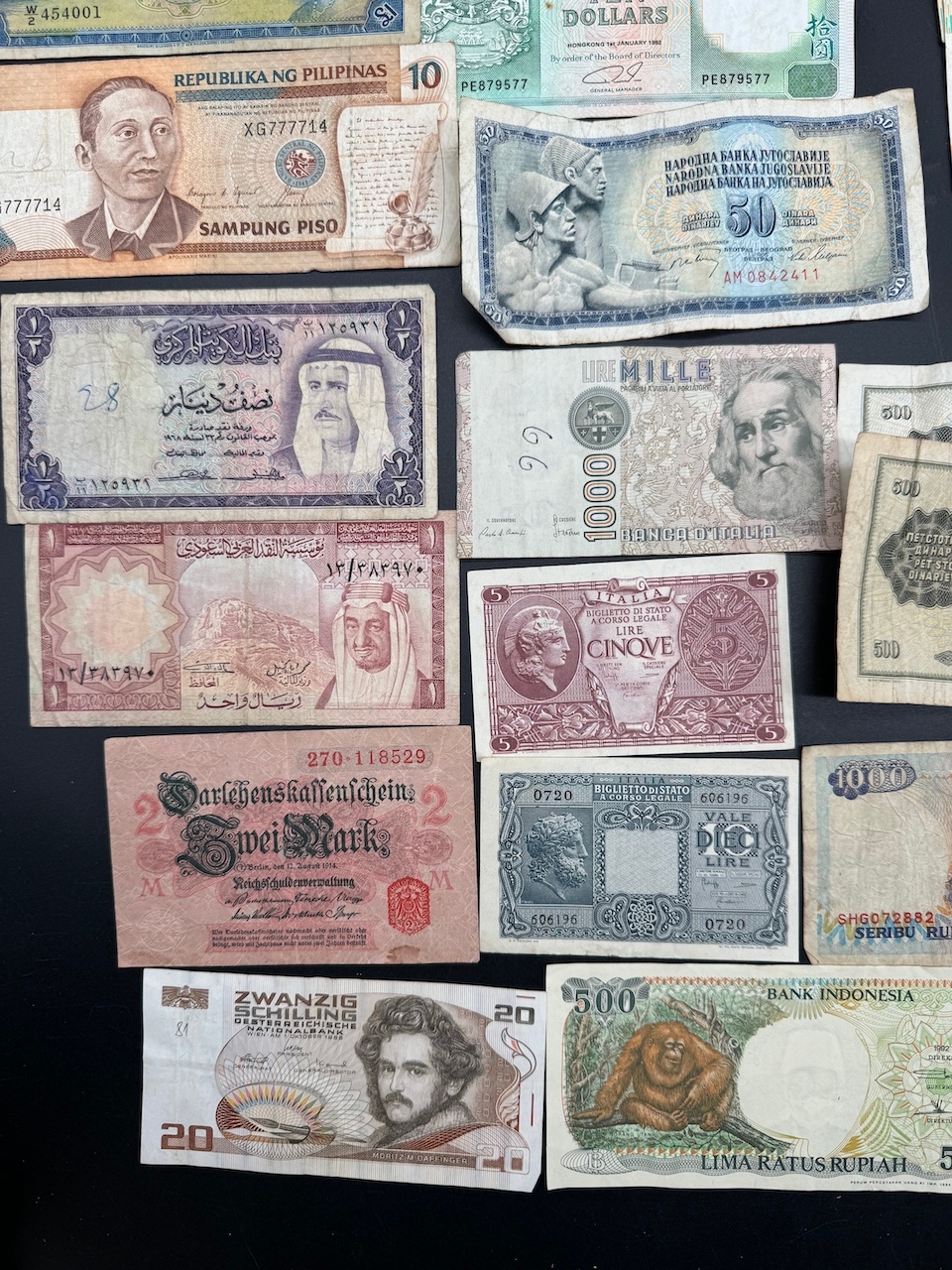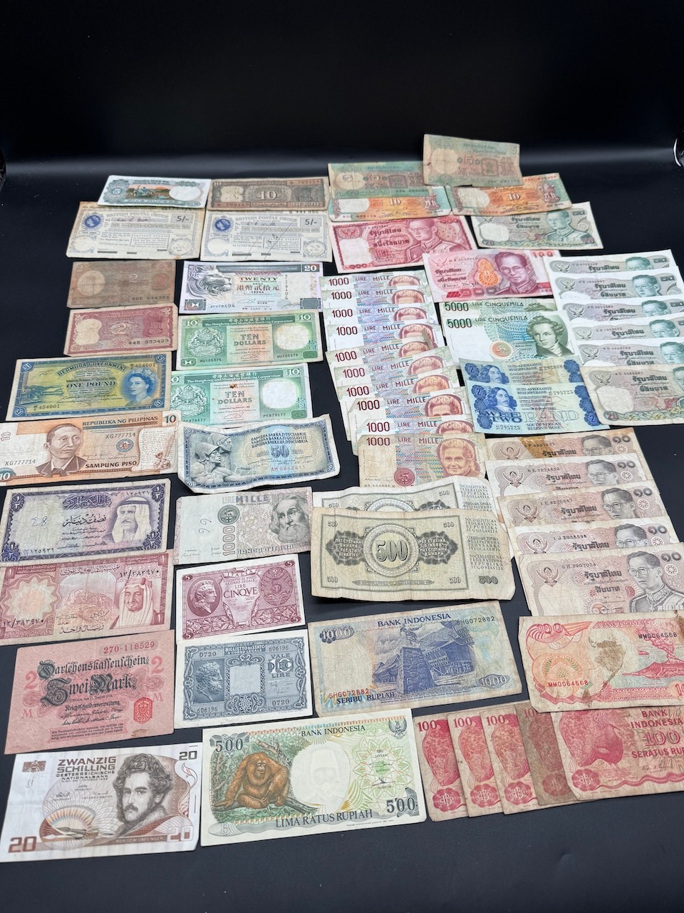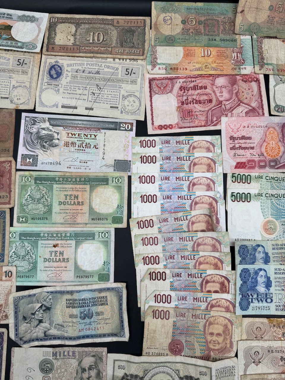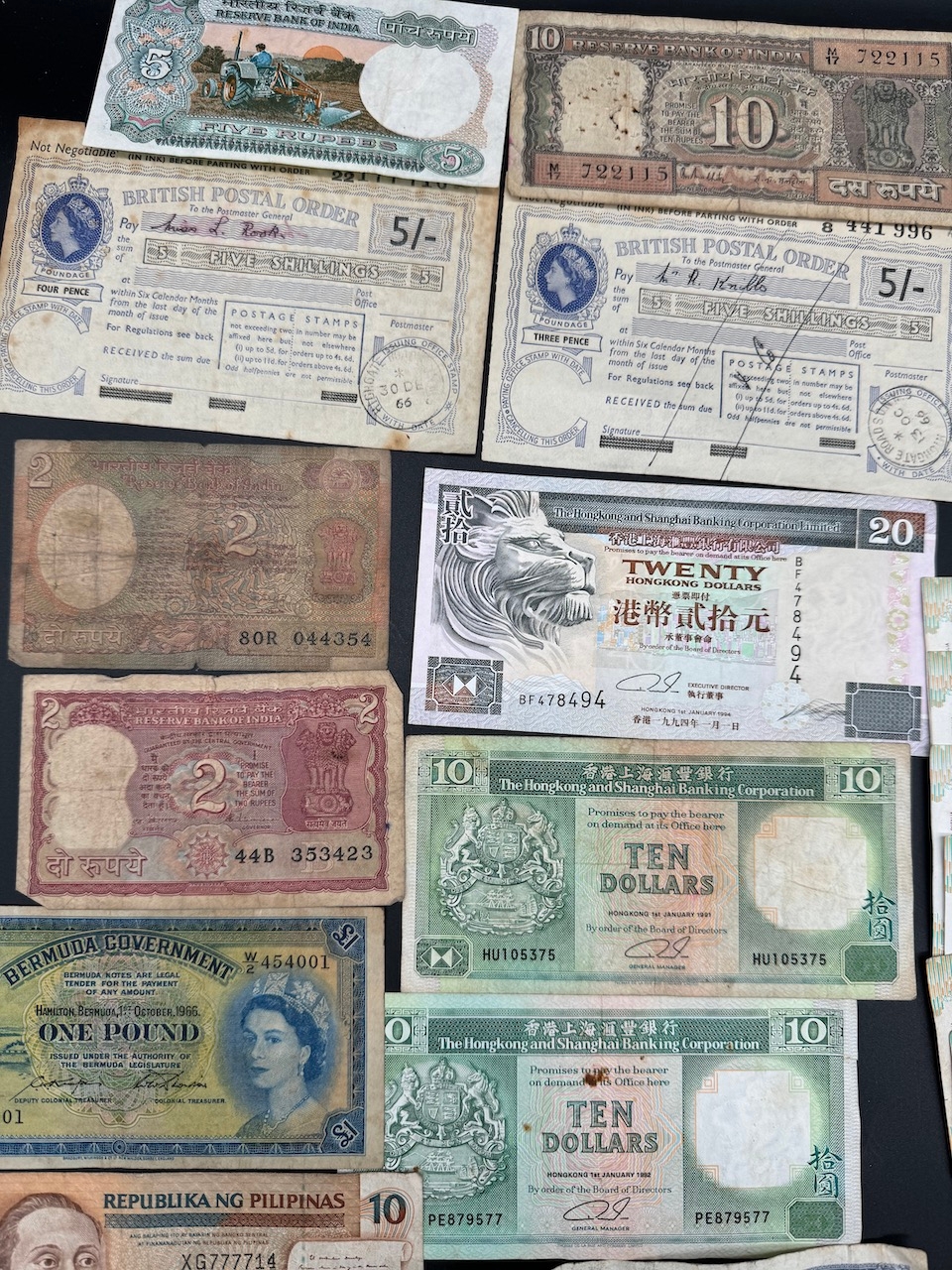 Large quantity of early to mid 20th century World bank notes / currency - including Hong Kong Dollars, British Postal Orders + assorted Asian Currency Notes