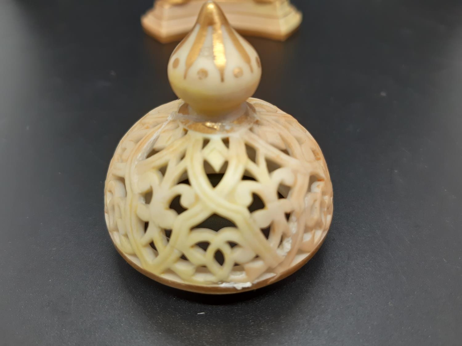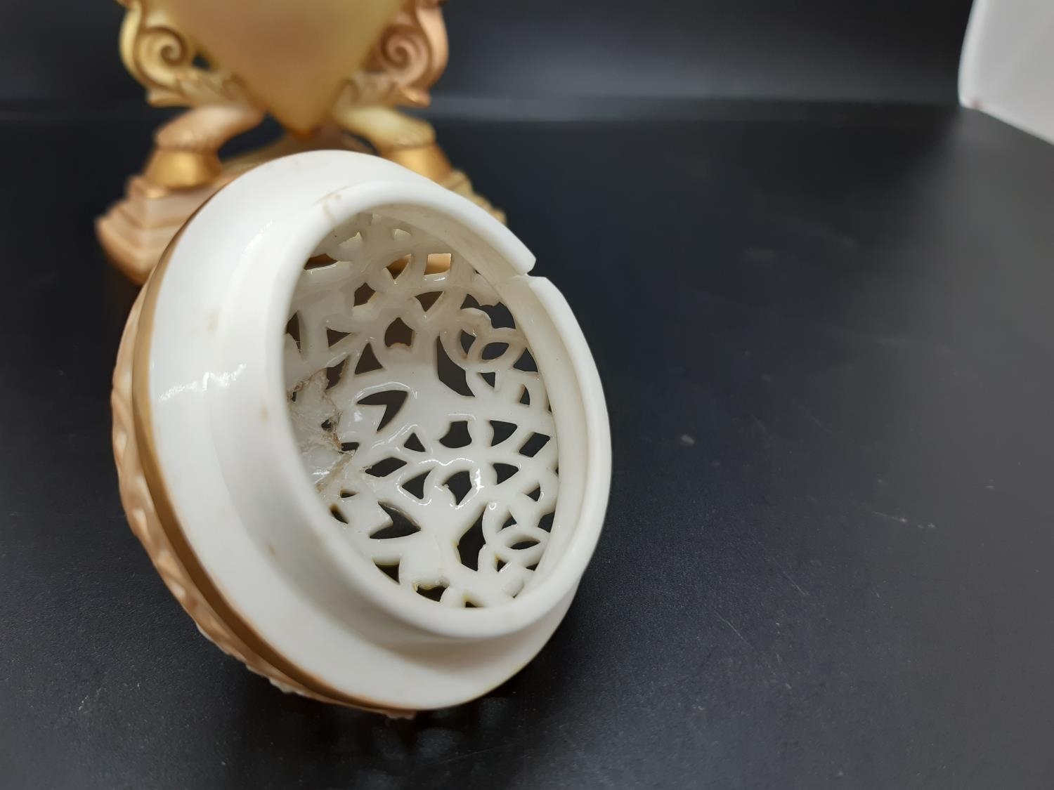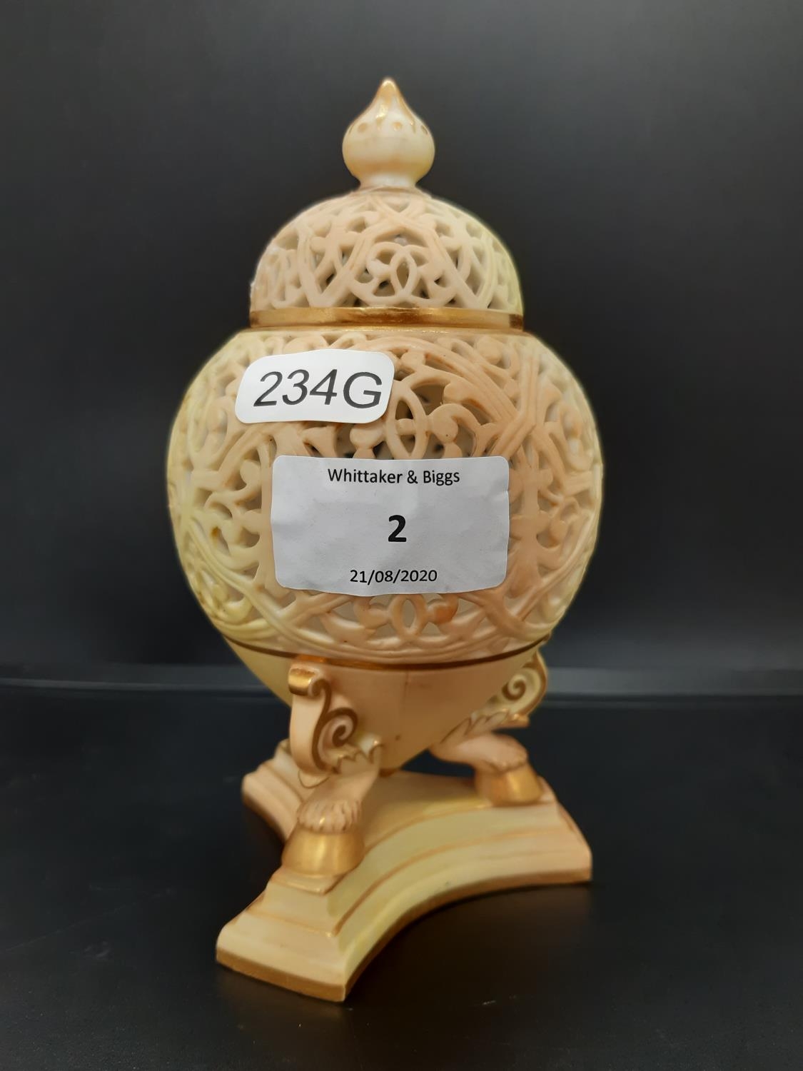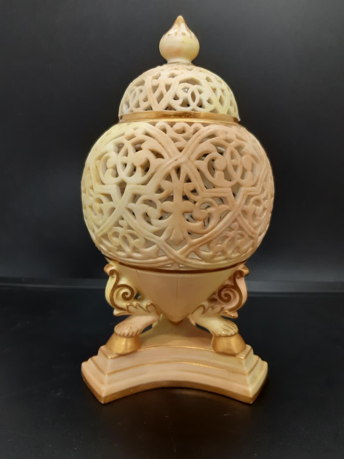 A 19th century Royal China Works Grainger & Co. blush ivory pot pourri on tri footed base