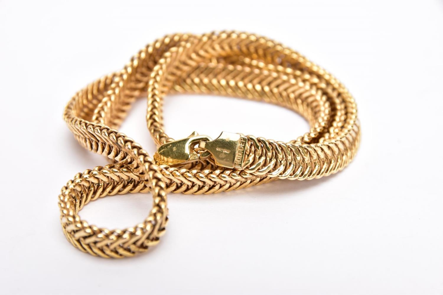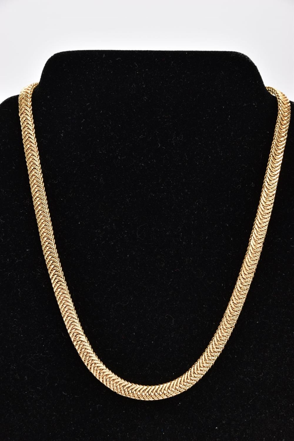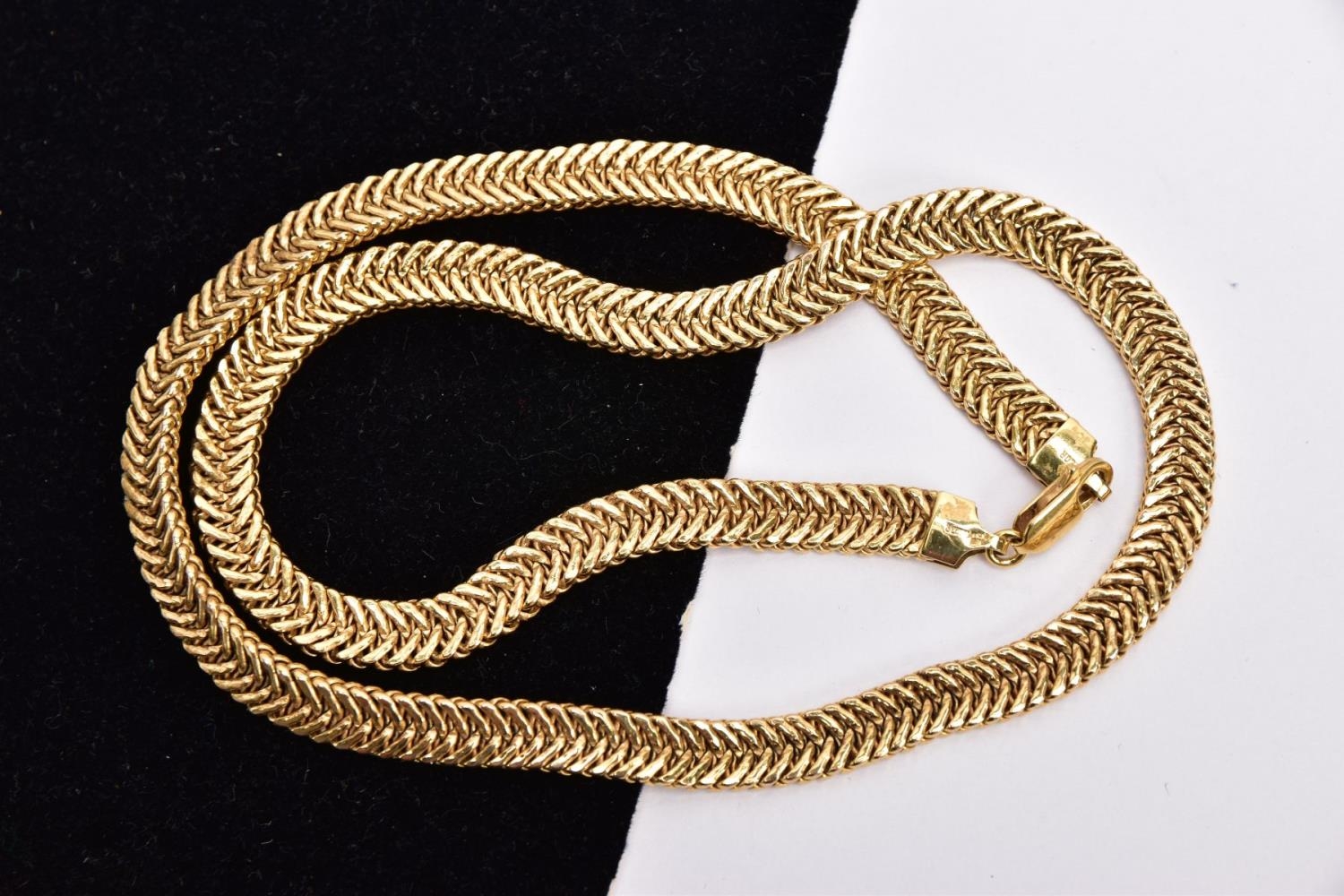A 9CT GOLD FLATLINK CHAIN, articulated flat link chain, fitted with a lobster claw clasp, hallmarked 9ct gold Birmingham, length 450mm, approximate gross weight 13.5 grams