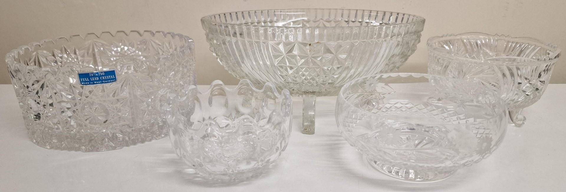 A collection of 11 pieces of vintage cut glass & crystal tableware. To include fruit bowls, serving dishes, etc.