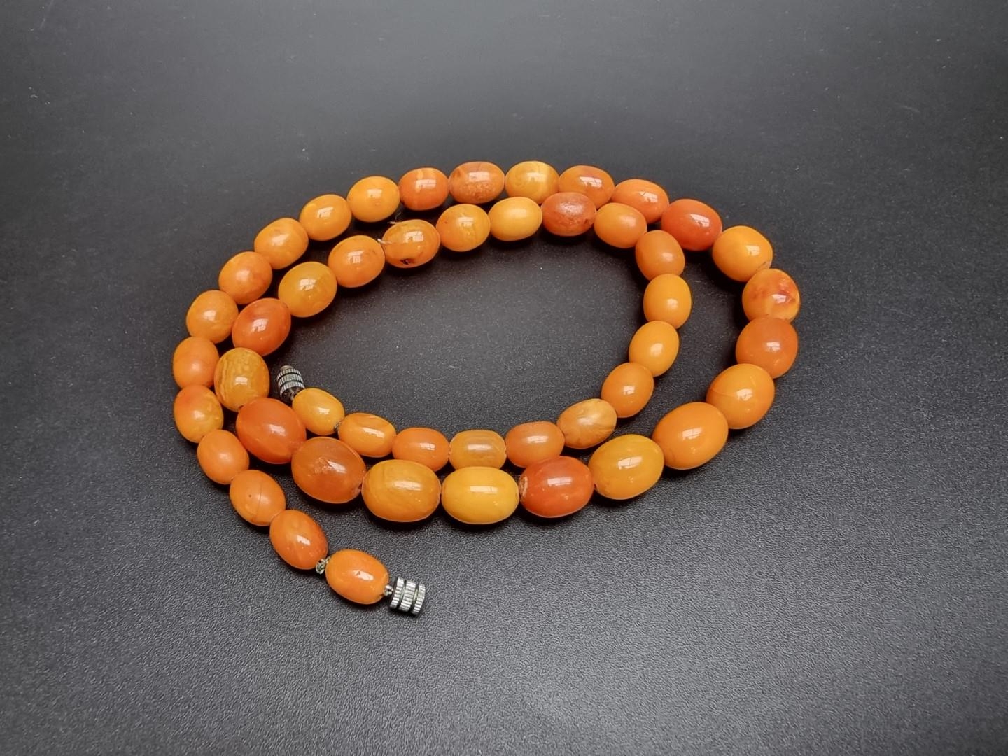 A butterscotch amber graduated bead necklace, gross weight 38g, 62cm.
