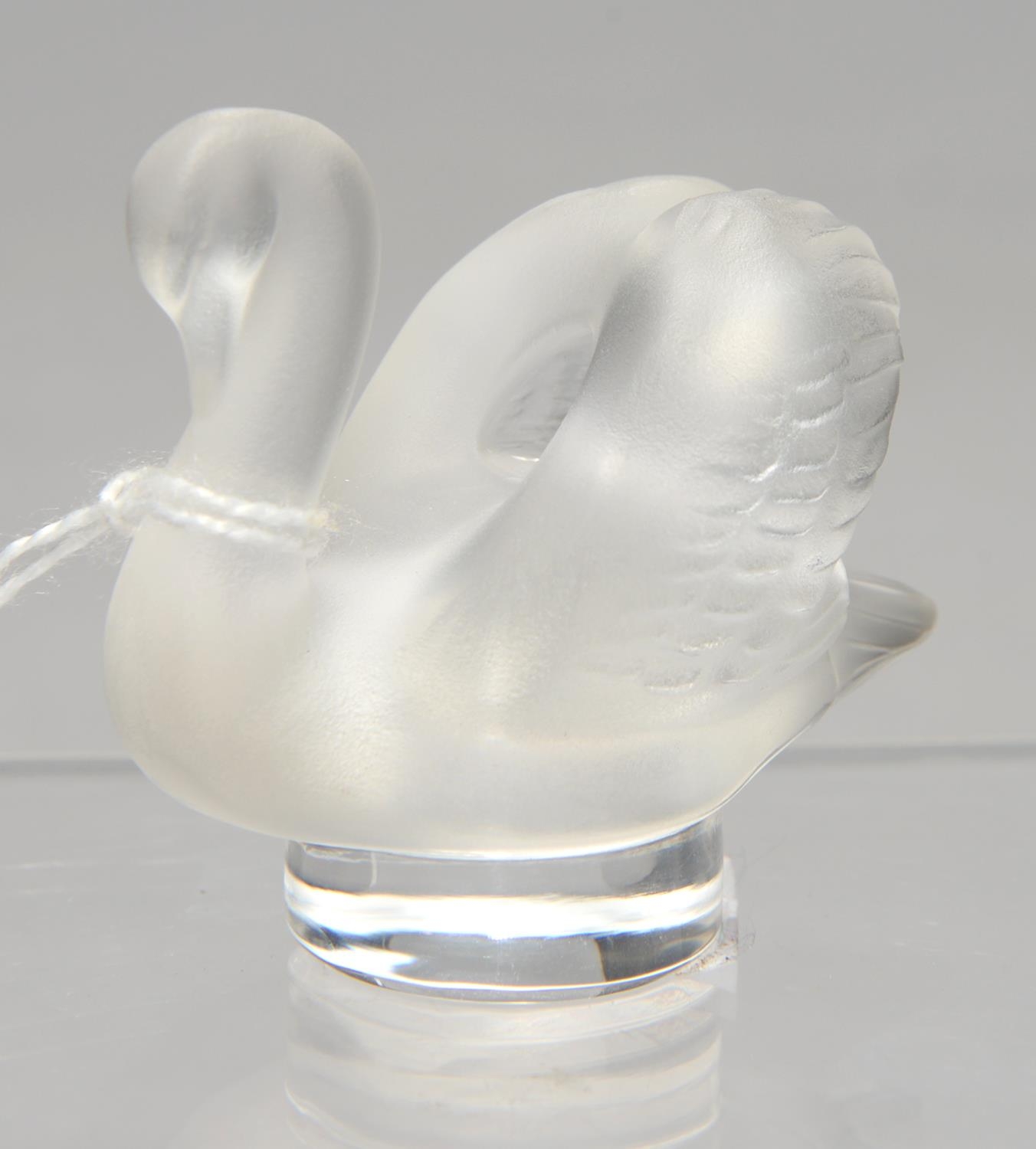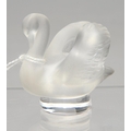 A LALIQUE FROSTED GLASS MODEL OF A SWAN, 4.8CM H, ENGRAVED LALIQUE FRANCE