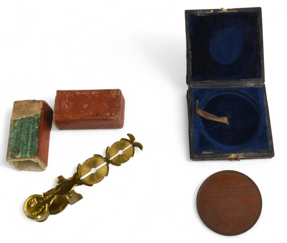 Great Britain: 1833 George Granville Duke of Sutherland Bronze Commemorative Medal. Together with a set of brass sovereign scales