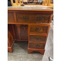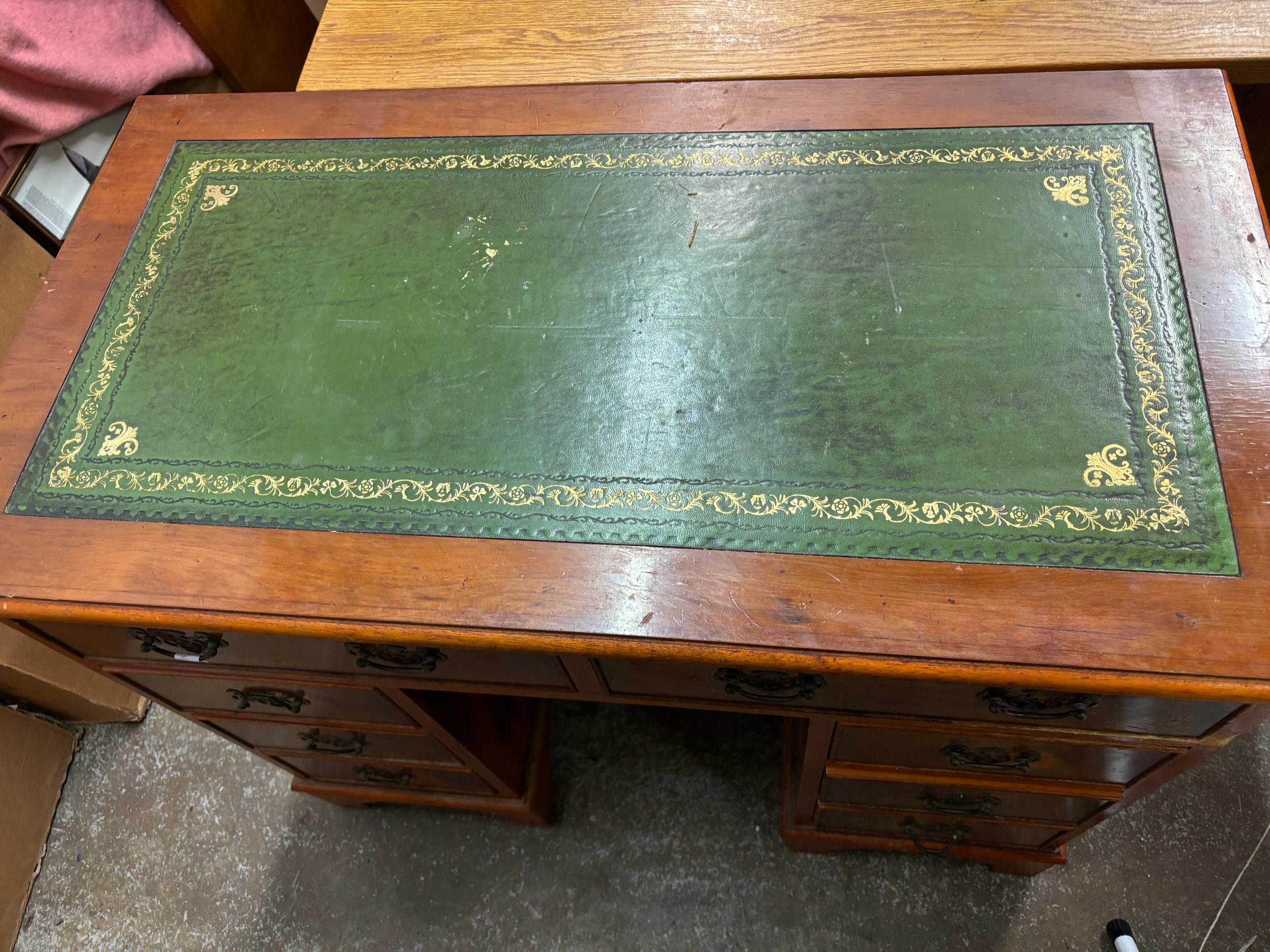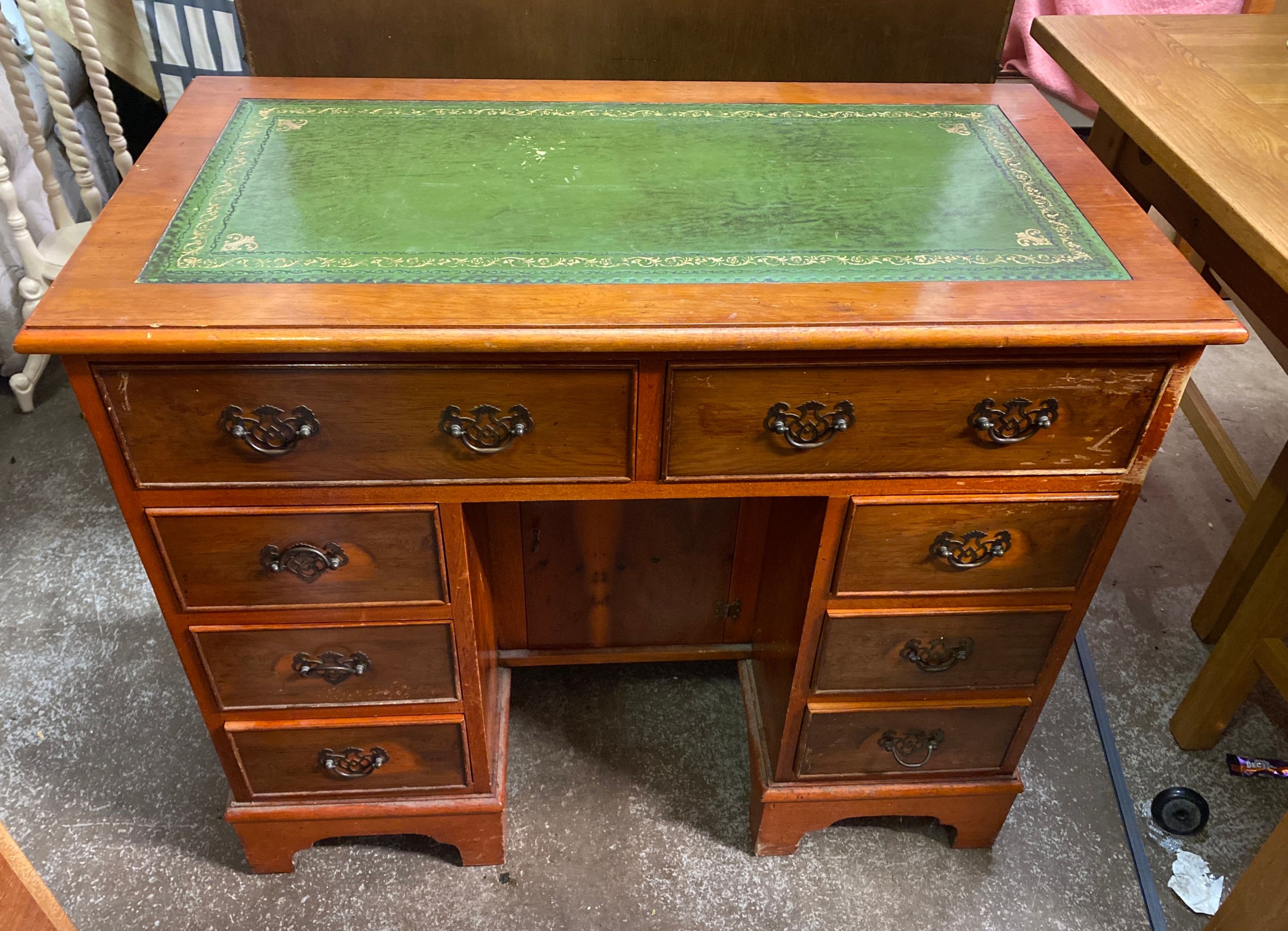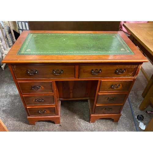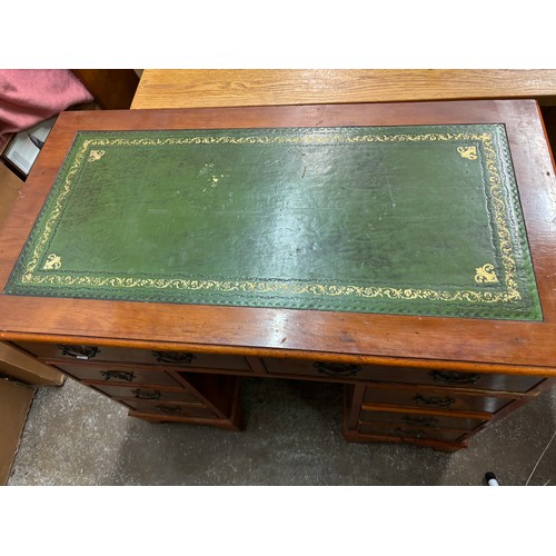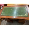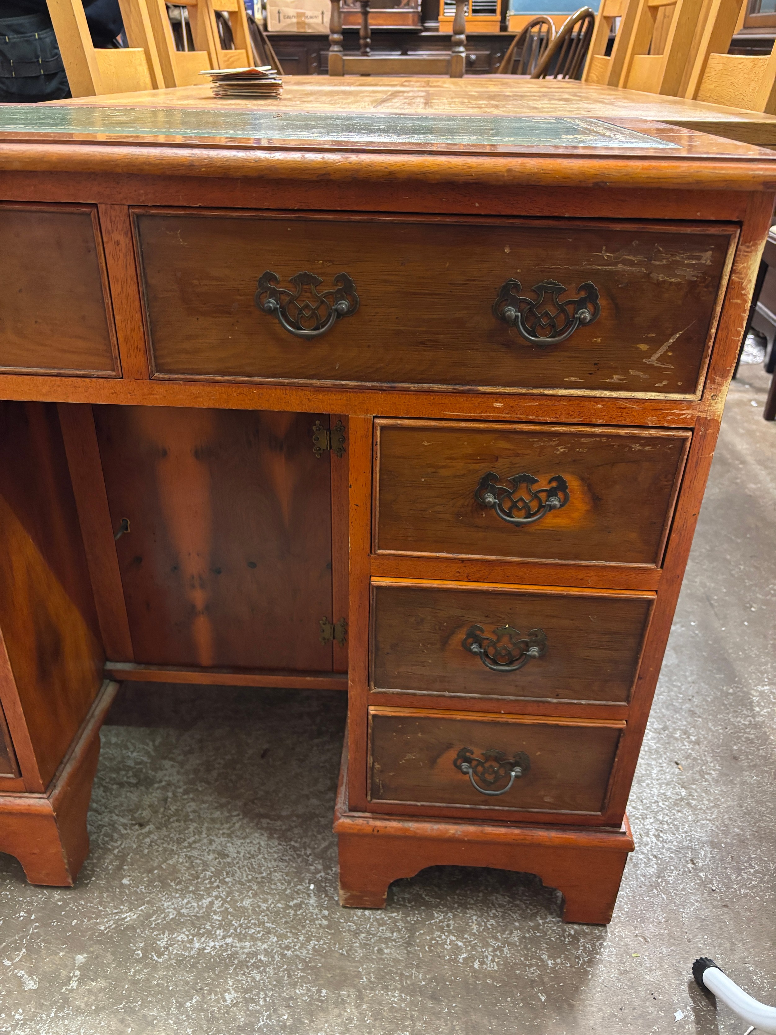 REPRODUCTION GREEN LEATHER TOPPED YEW KNEEHOLE DESK