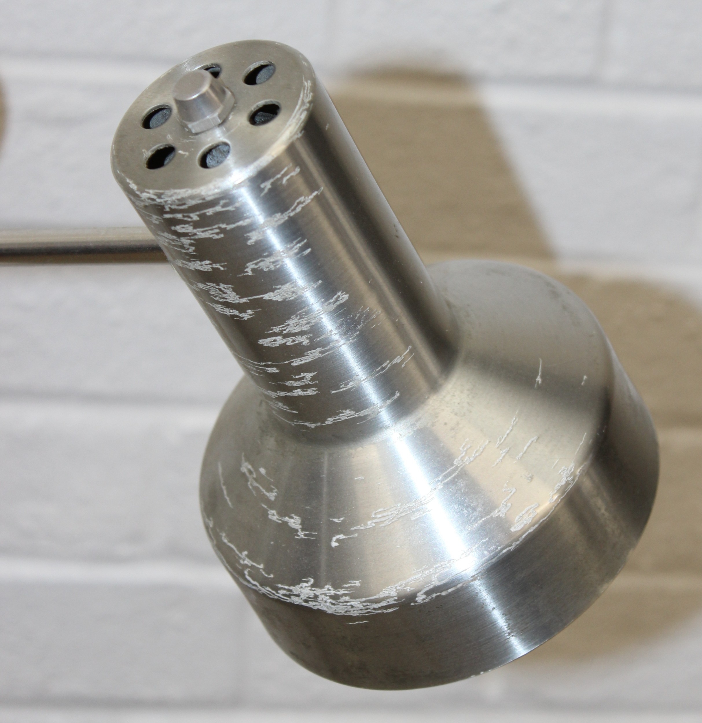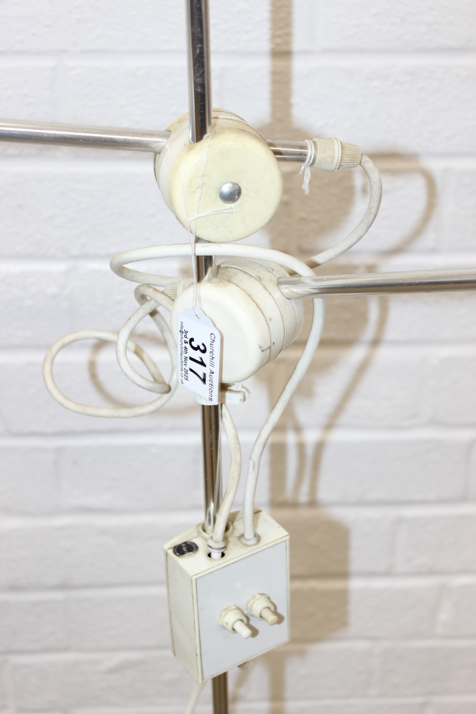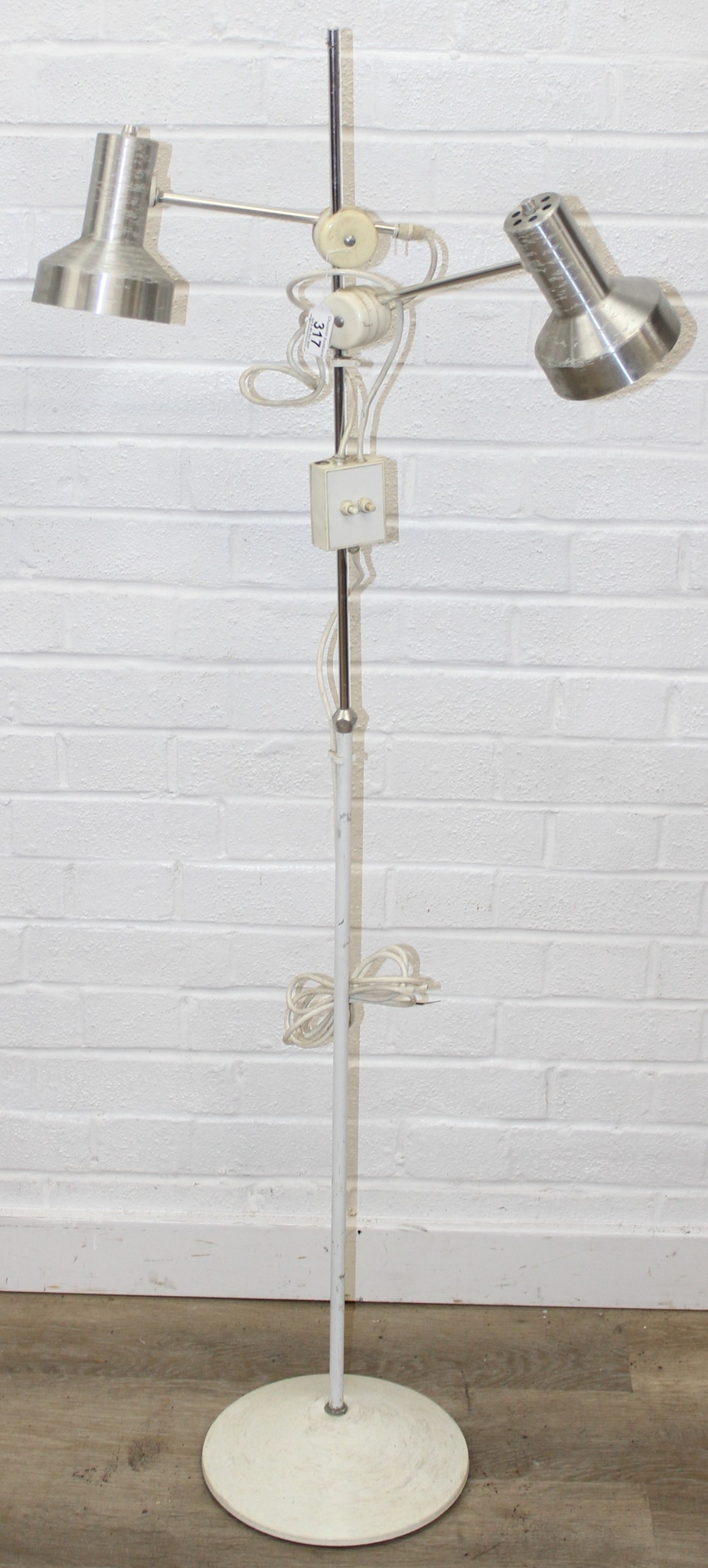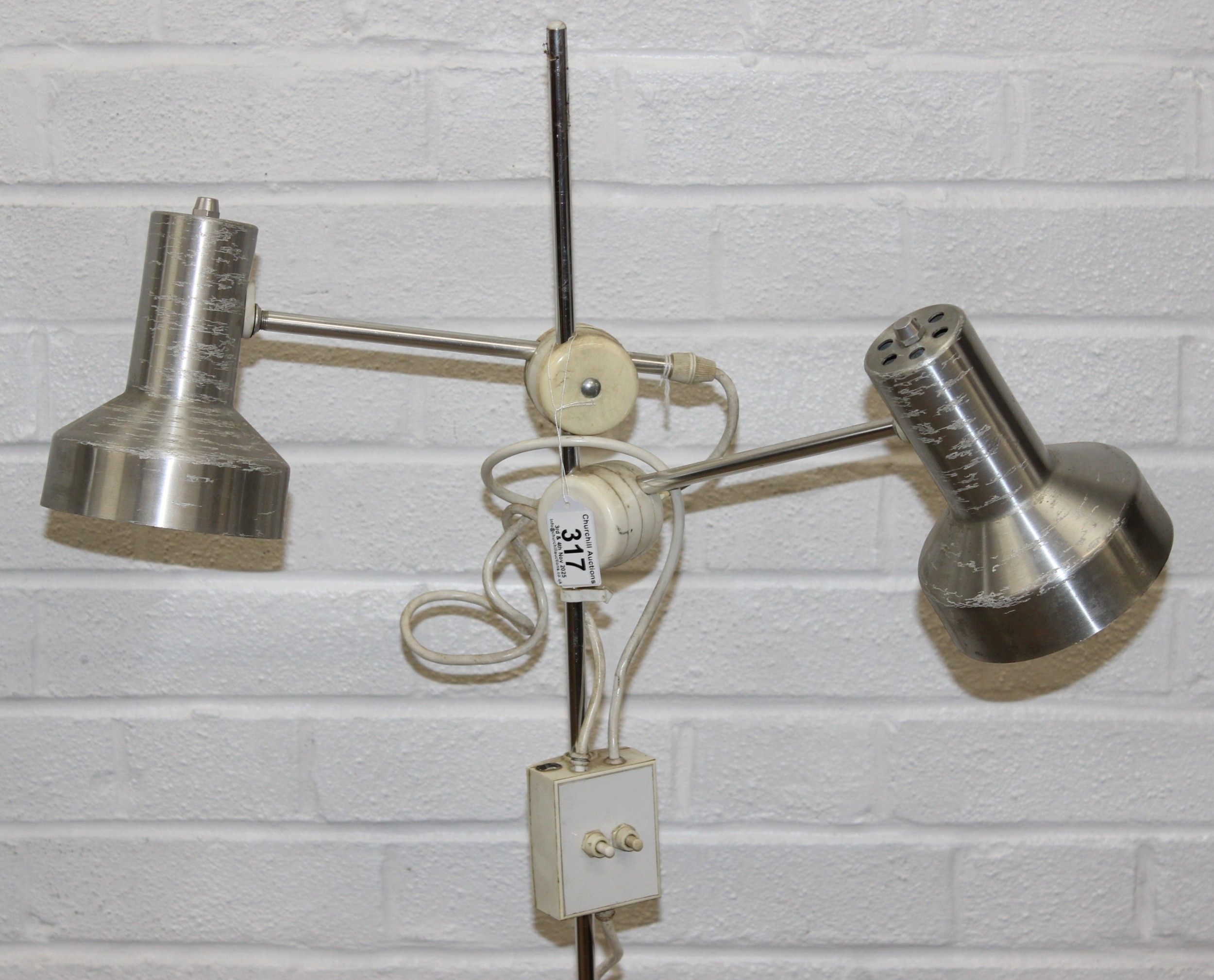 A retro floor standing pole lamp with aluminium shades, 144cm tall