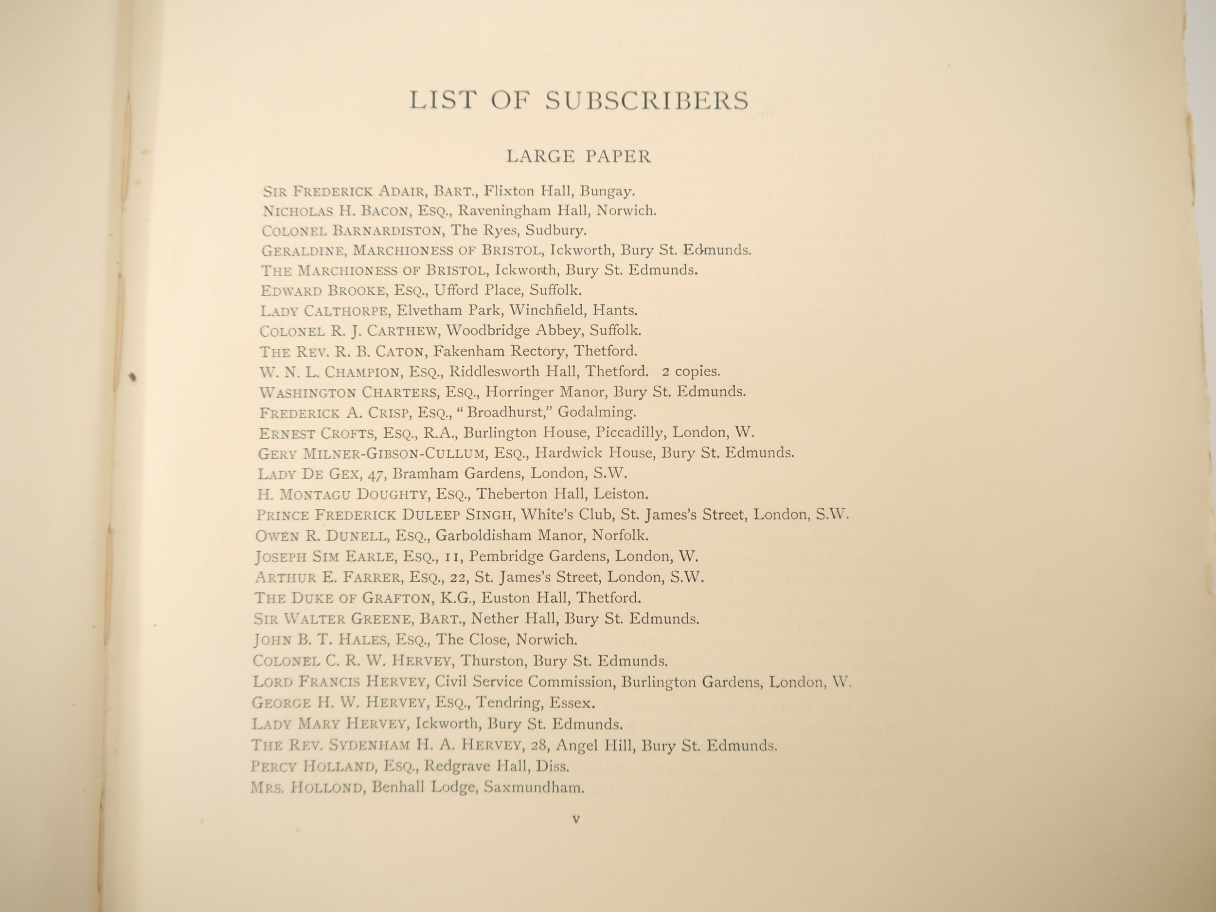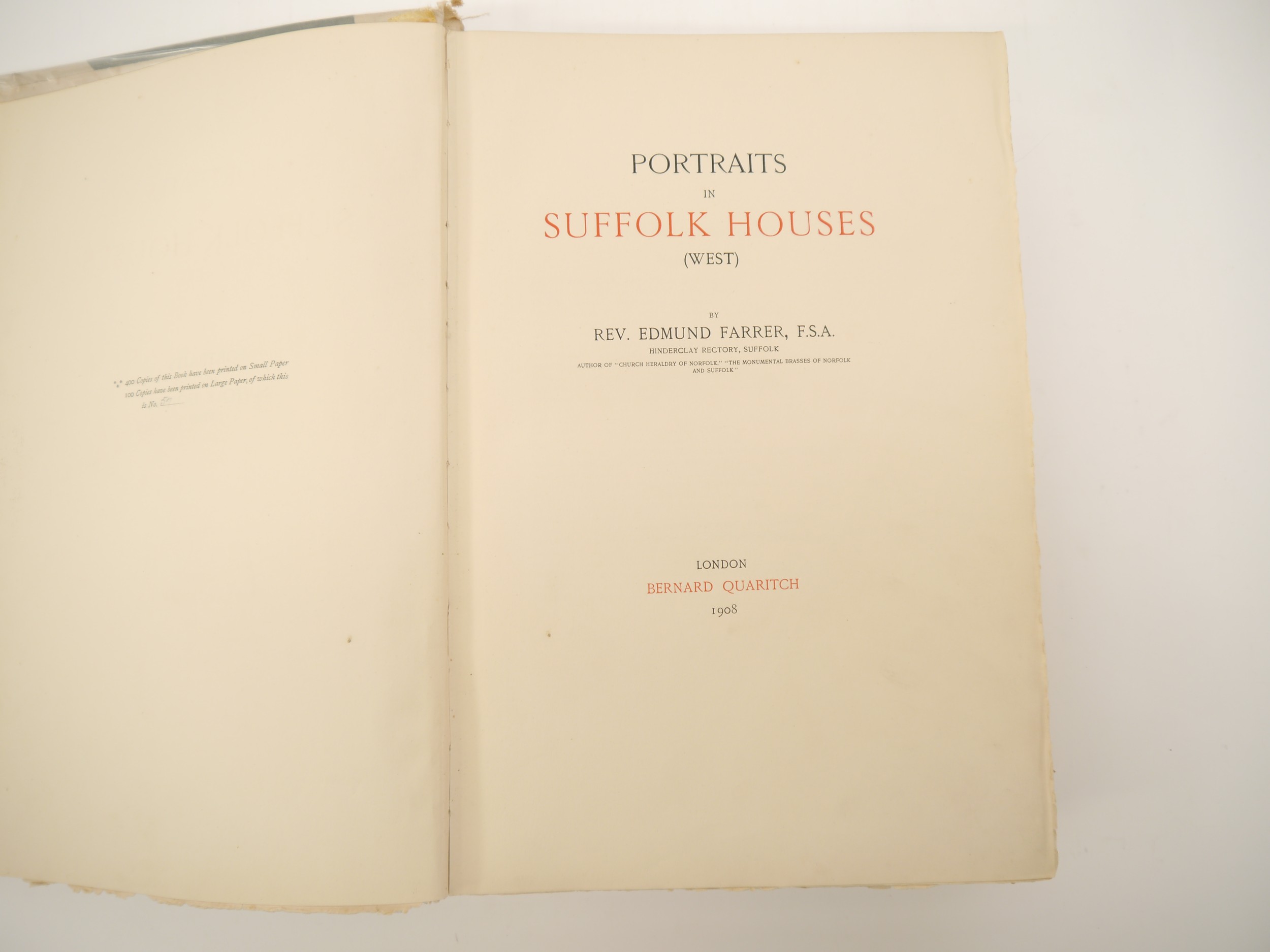 Rev. Edmund Farrer, FSA: 'Portraits in Suffolk Houses (West)', London, Bernard Quaritch, 1908, one of only 100 large paper copies, this copy numbered 57, list of subscribers (Prince Frederick Duleep Singh a subscriber to a large paper copy), numerous portrait plates of portraits in Suffolk houses, including the Maharajah Duleep Singh c.1855 by Franz Xaver Winterhalter, 418pp, folio, original half buckram gilt (worn), top edge gilt