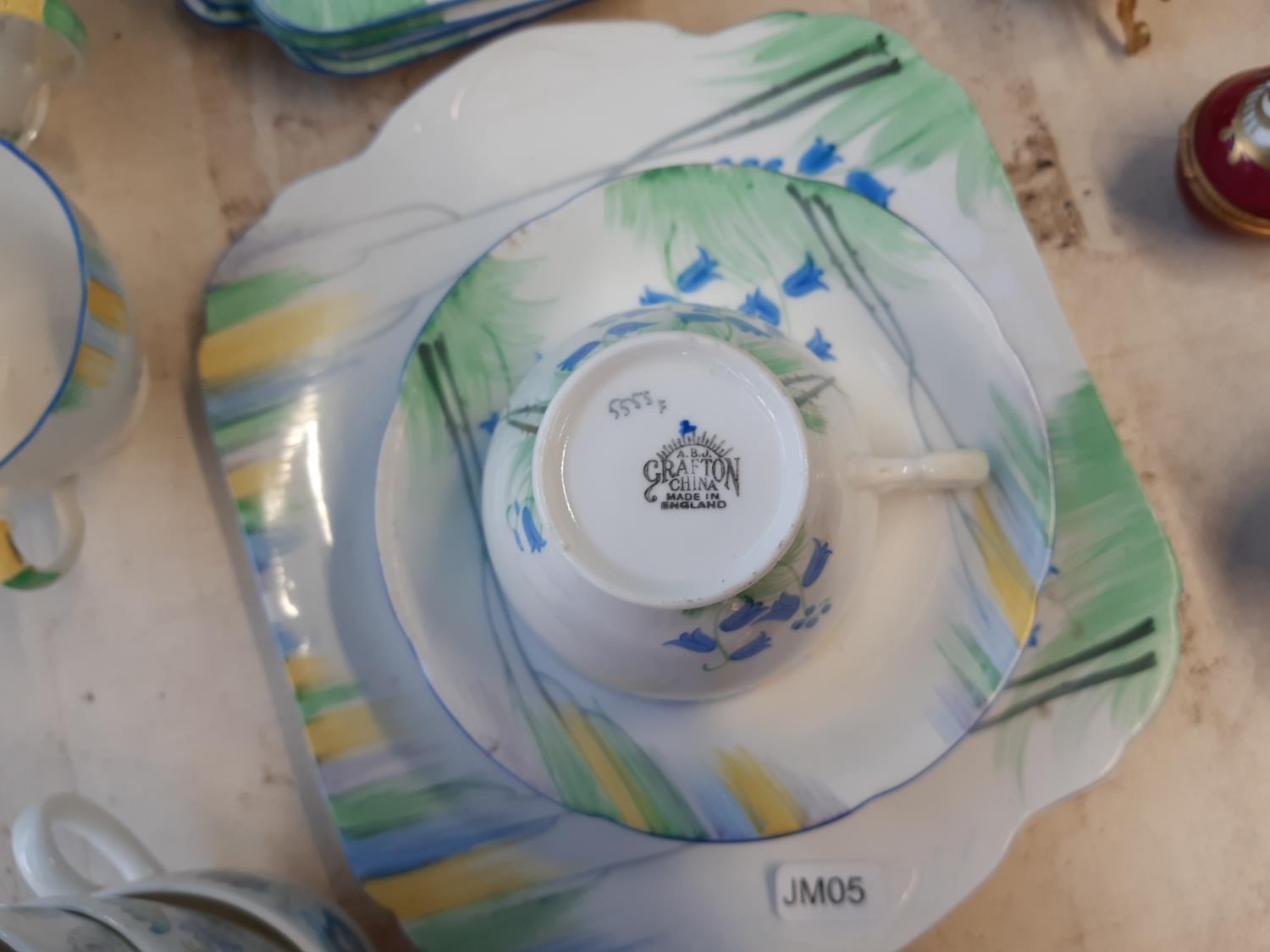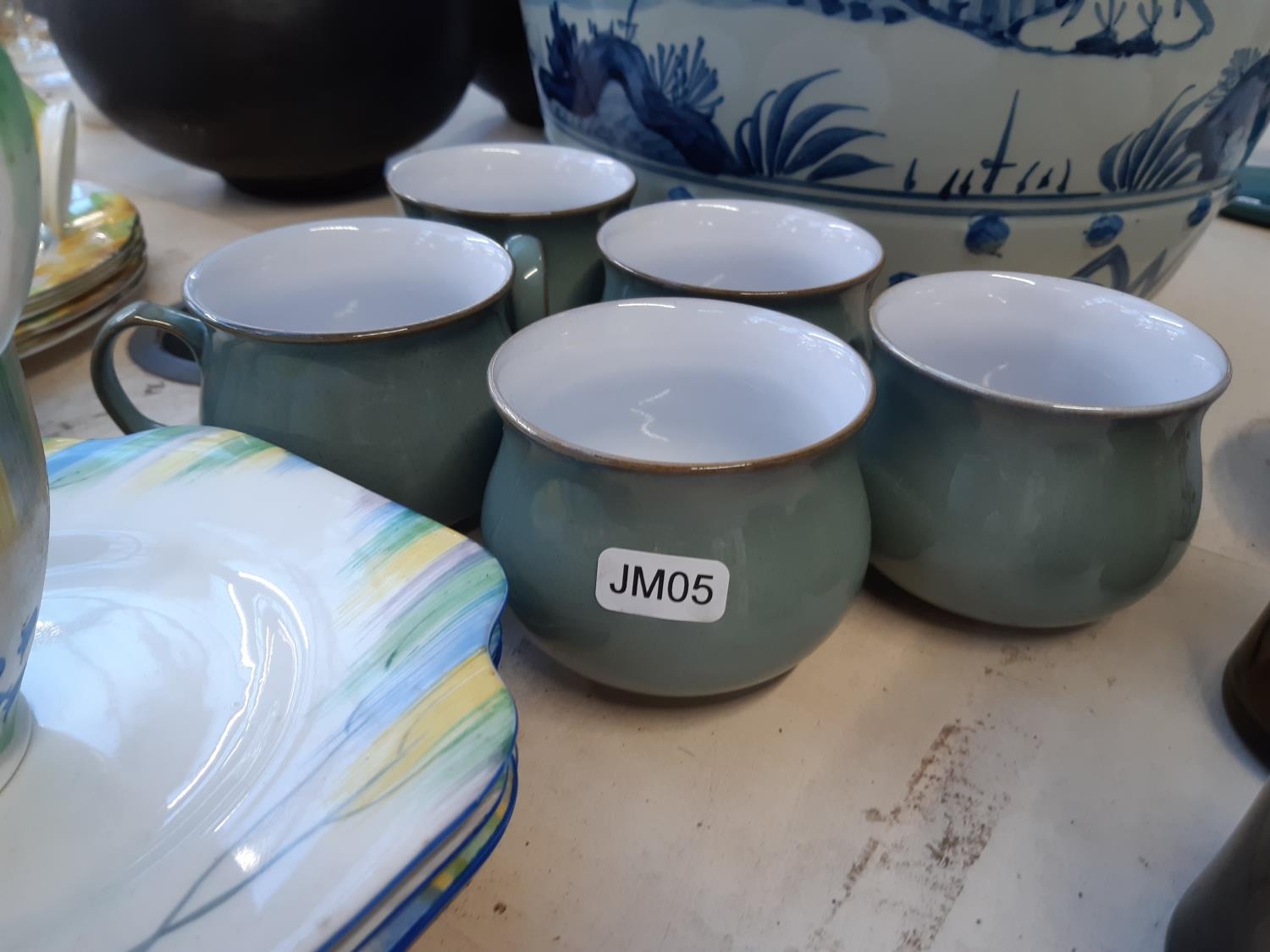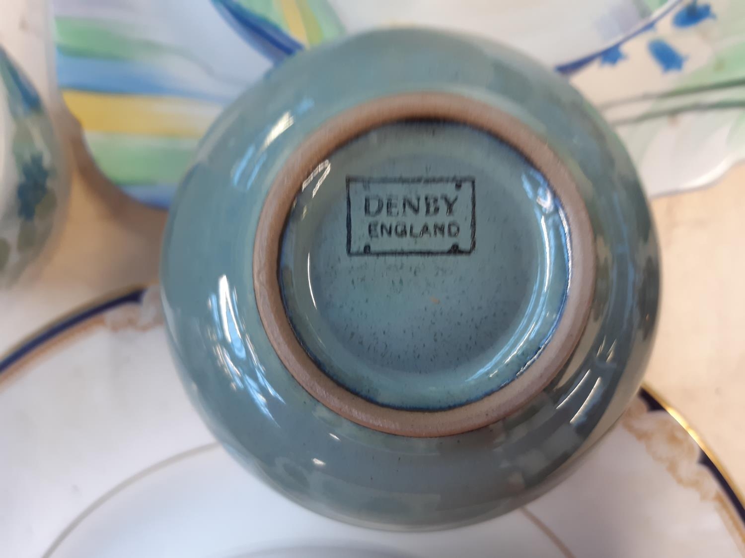 A collection of assorted ceramics to include 19 pieces of Art Deco Grafton china, 5 Denby tea cups, 3 Wedgwood Cavendish dinner plates and 9 pieces of Wedgwood Clementine china